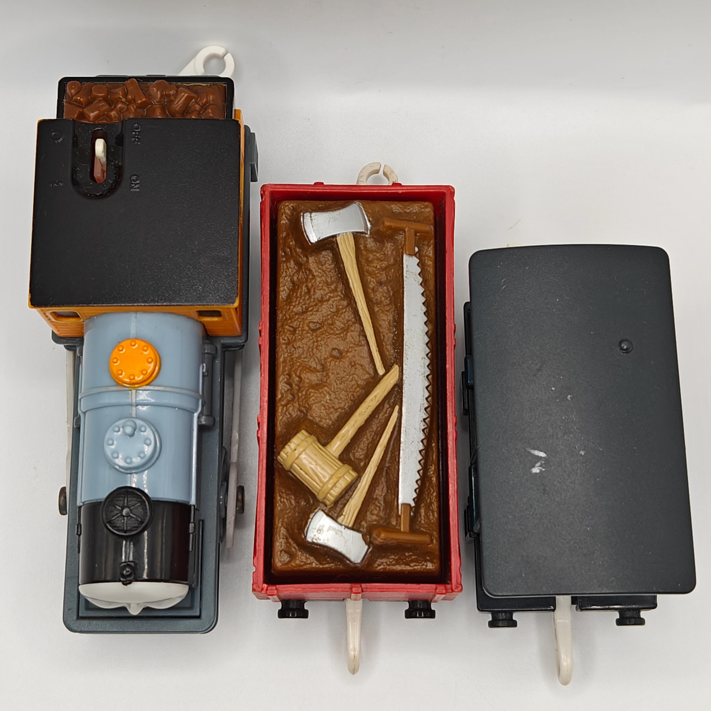 This is a complete Bash the Logging Loco! He come's with a truck with tools, as well as a caboose. This item has been disassembled, cleaned, repaired and tested for full functionality, it is ready for a new owner.