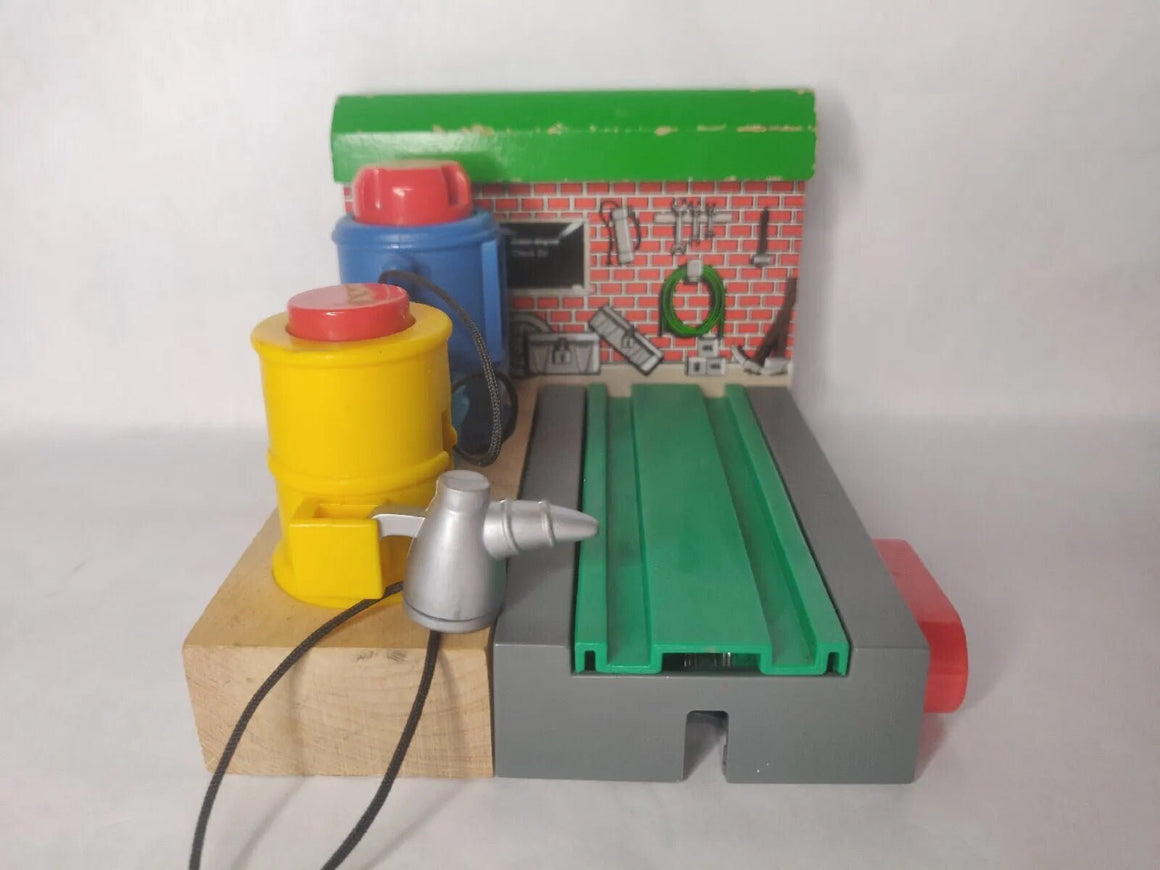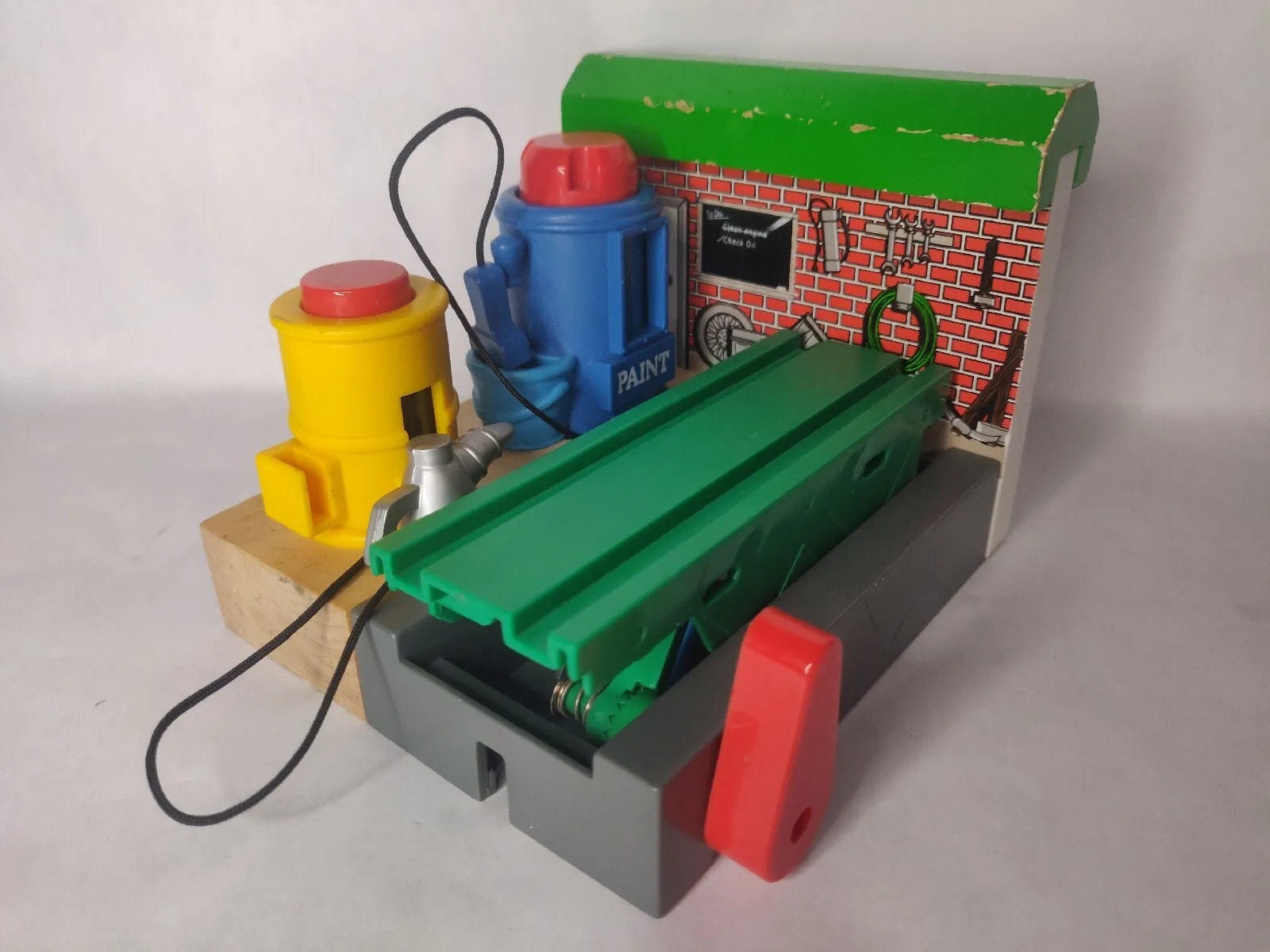 This is a complete Thomas destination! The Abbey Repair Shop originally came with a track ramp and the depot itself, this listing comes with these as well. The riser mechanism still works too. The item is in good used condition, there are some paint chipping and scuffs on the item. Please closely review the photographs to ensure you are happy with their condition before purchasing.