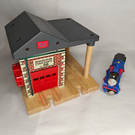 COMPLETE Lights and Sounds Fire Station w/ Belle - Wooden Railway Thomas & Friends LC98216 2012