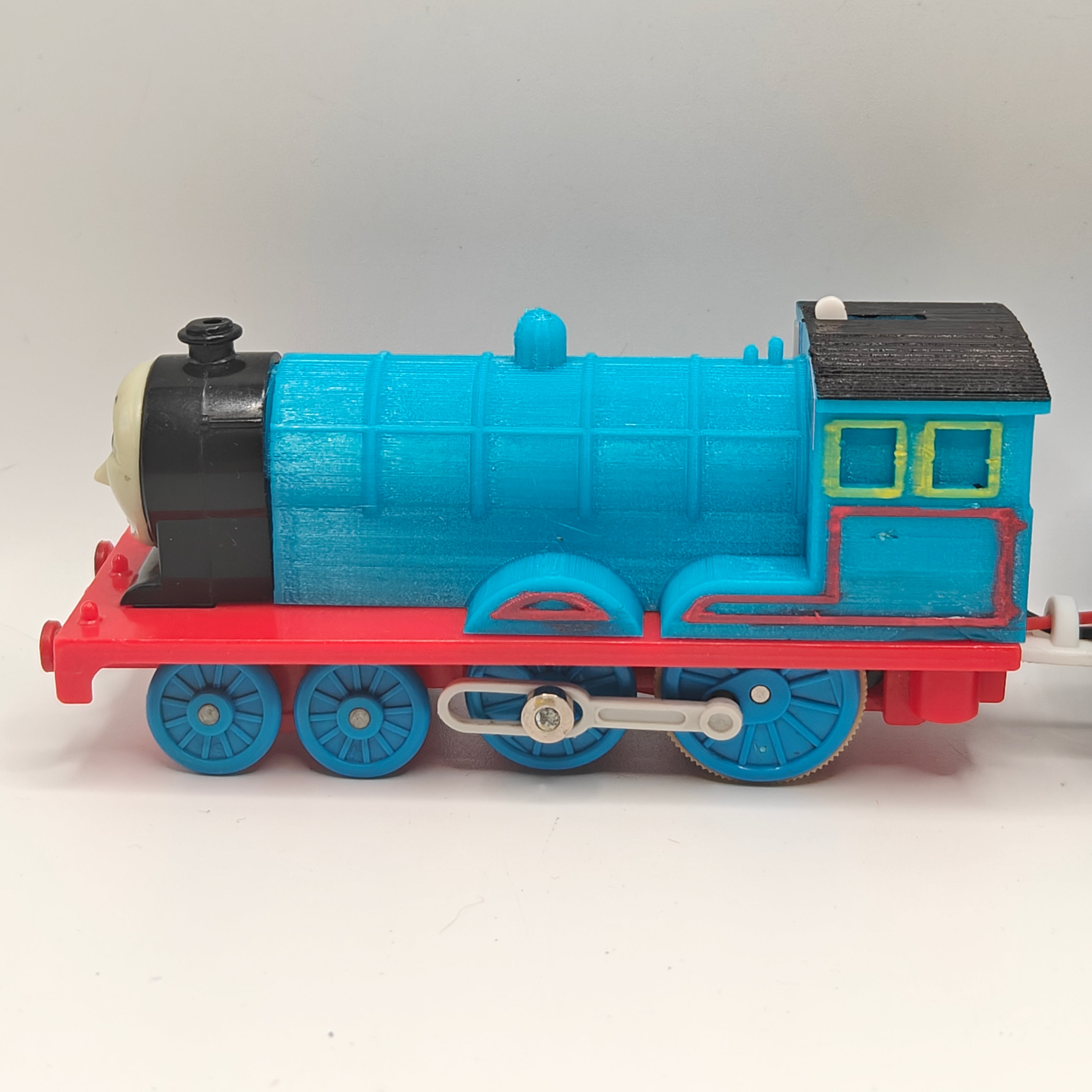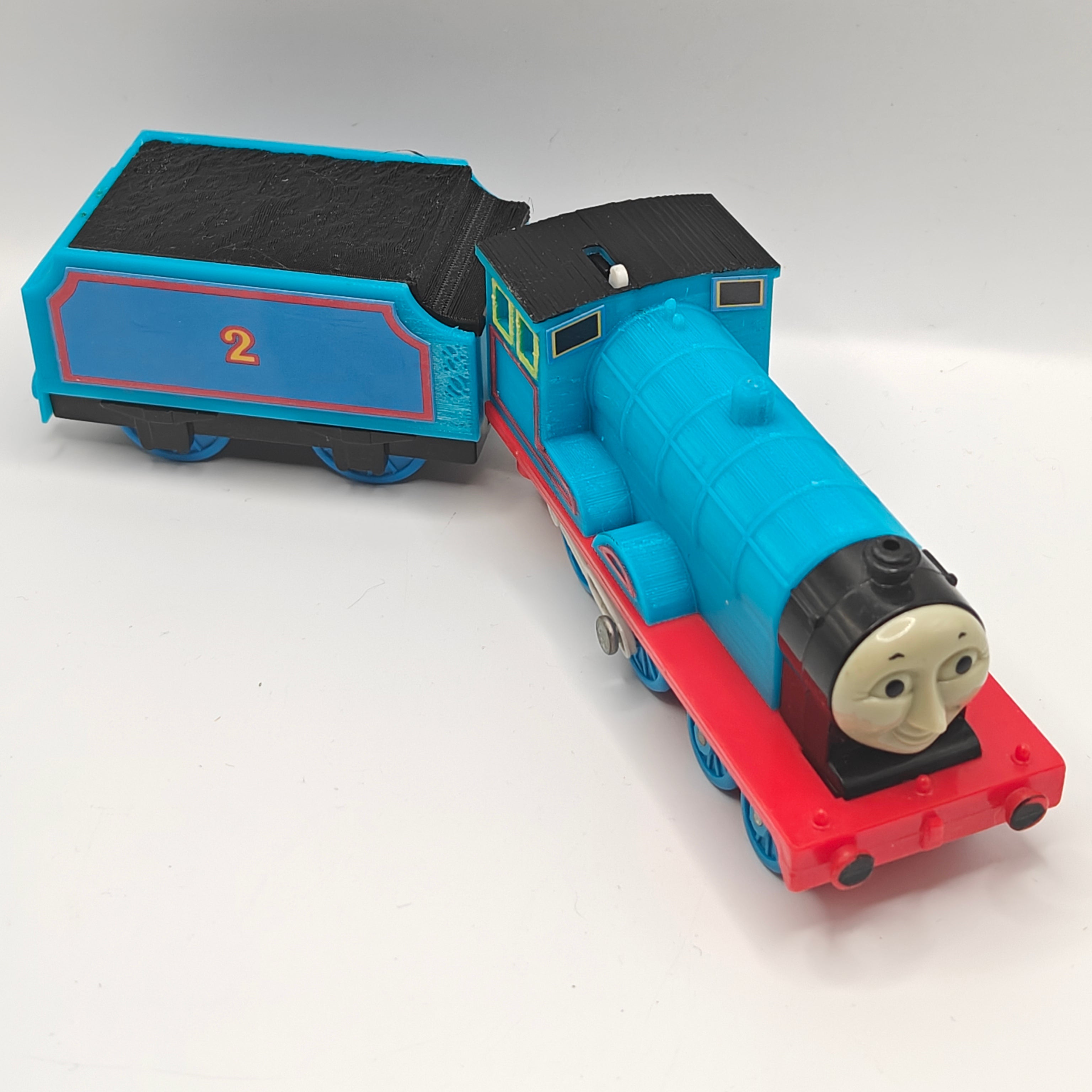 This is an individual Edward, he comes with no accessories. This particular Edward uses 3D printed replacement parts for his body and tender shells, while also using replacement stickers. This item has been disassembled, cleaned, repaired and tested for full functionality, it is ready for a new owner. please feel free to request Edward in different colors as this is customizable, with the exception of wheels.