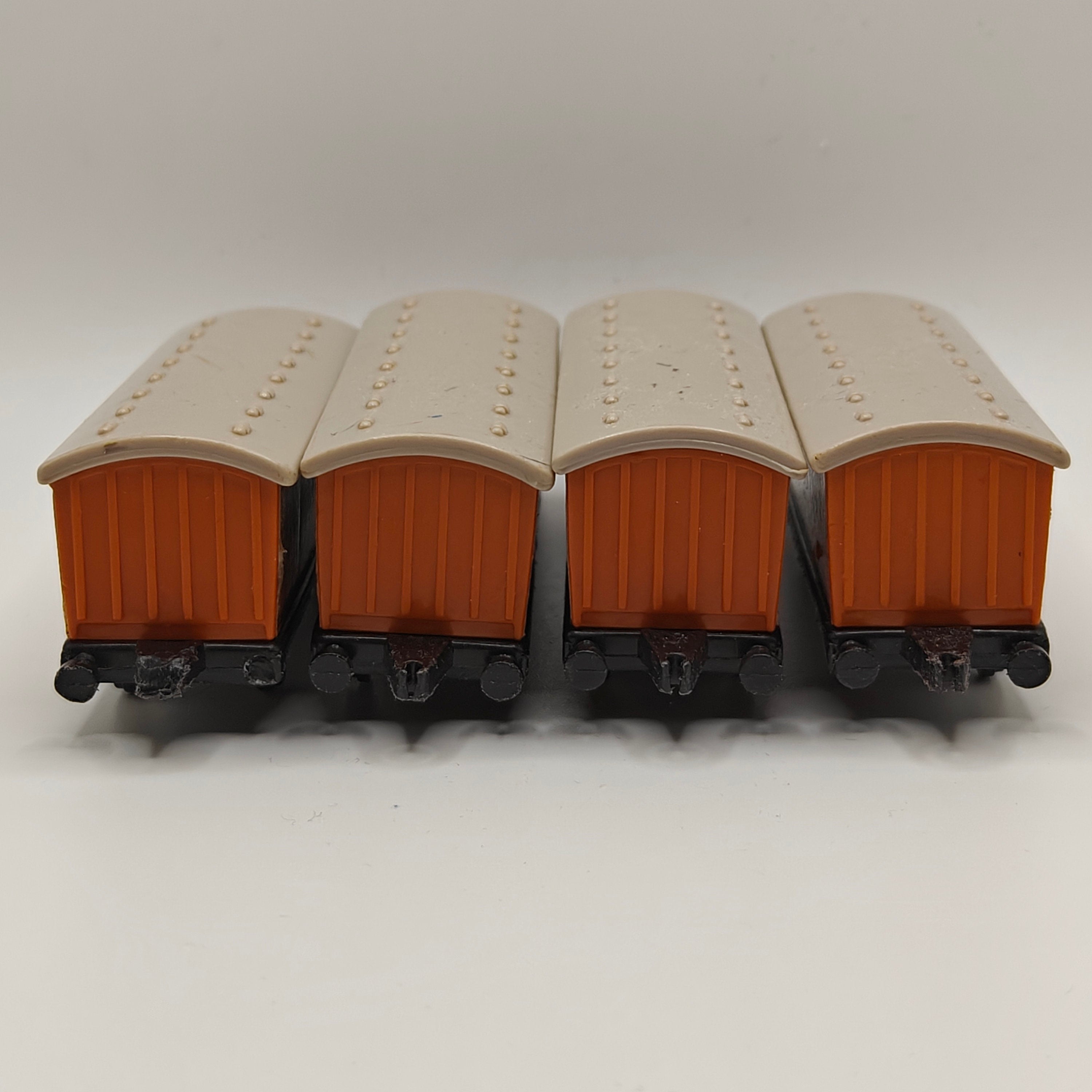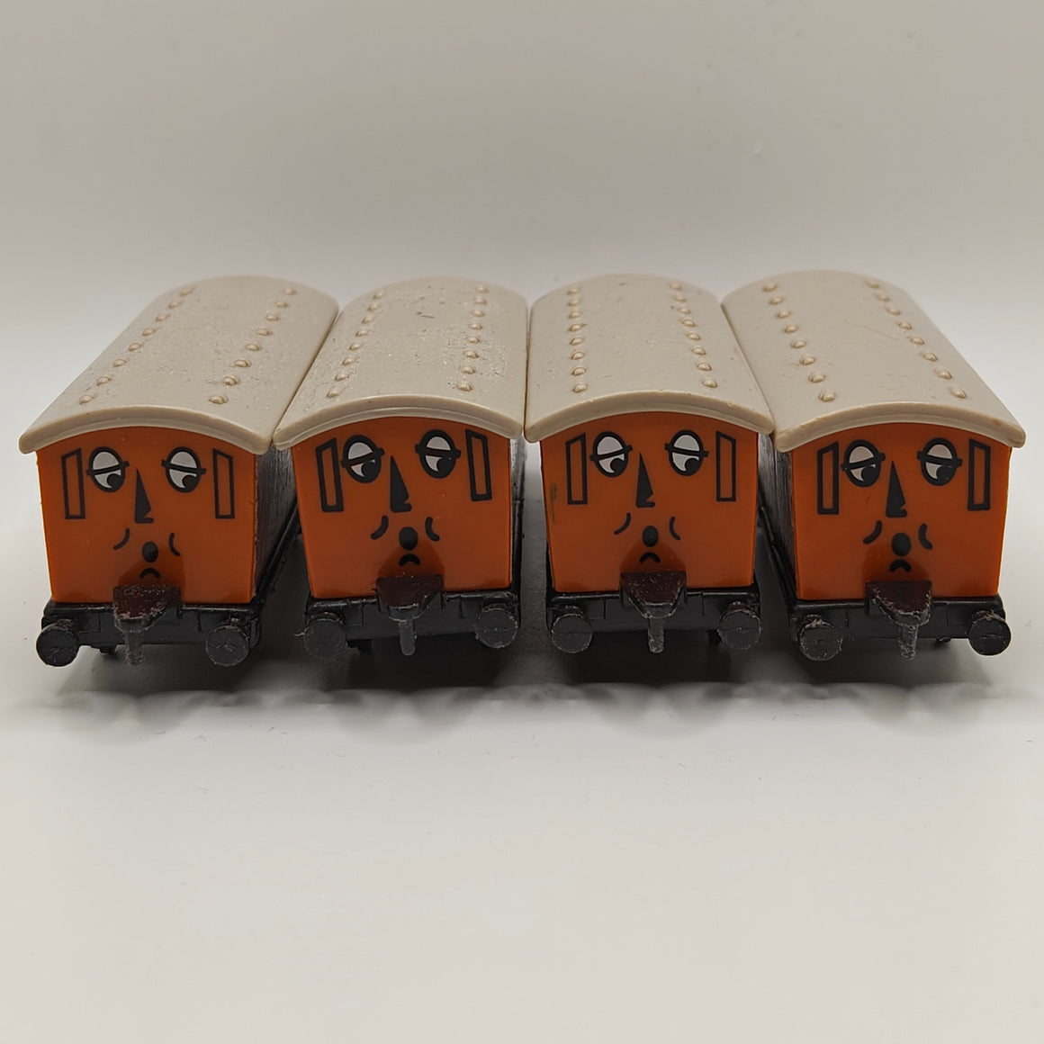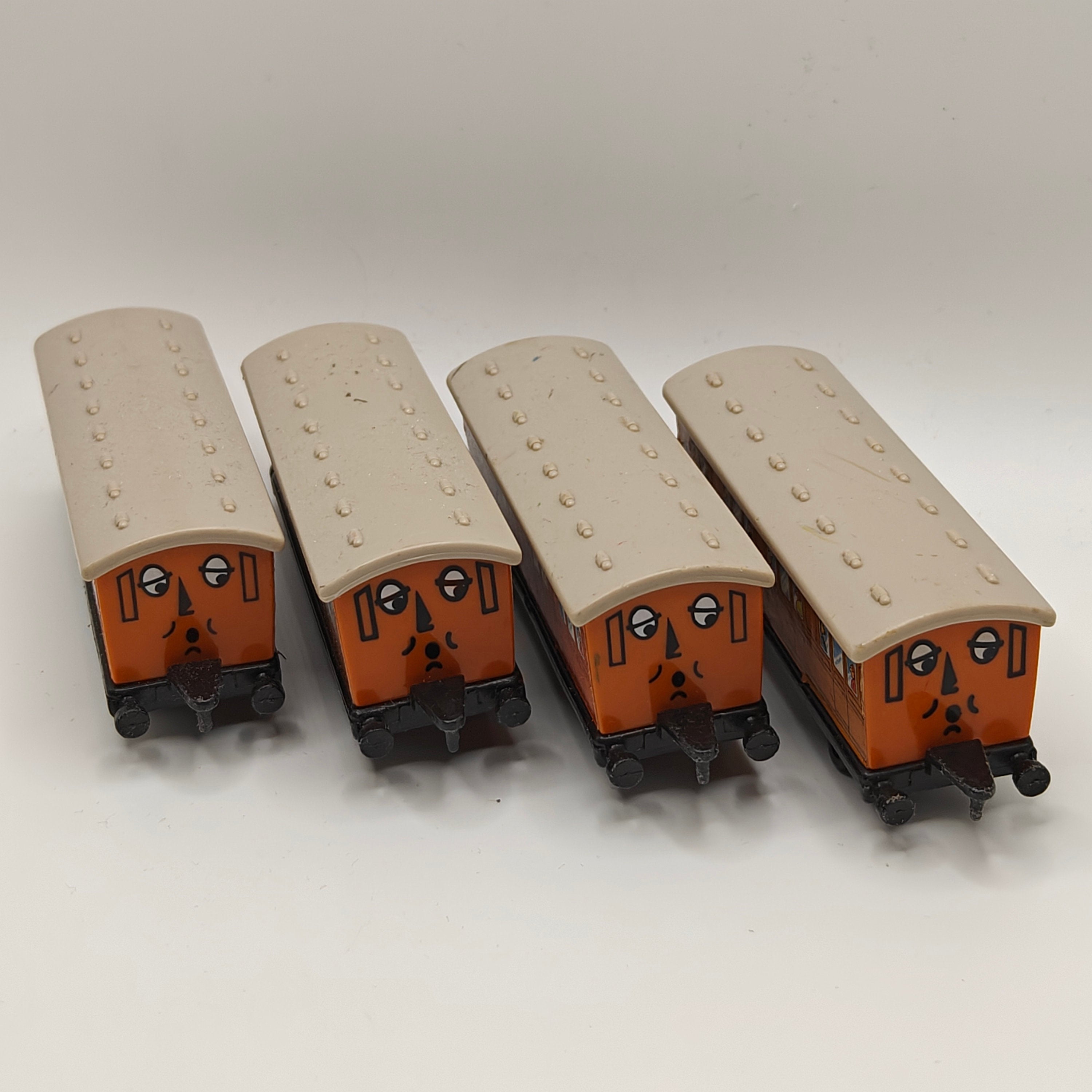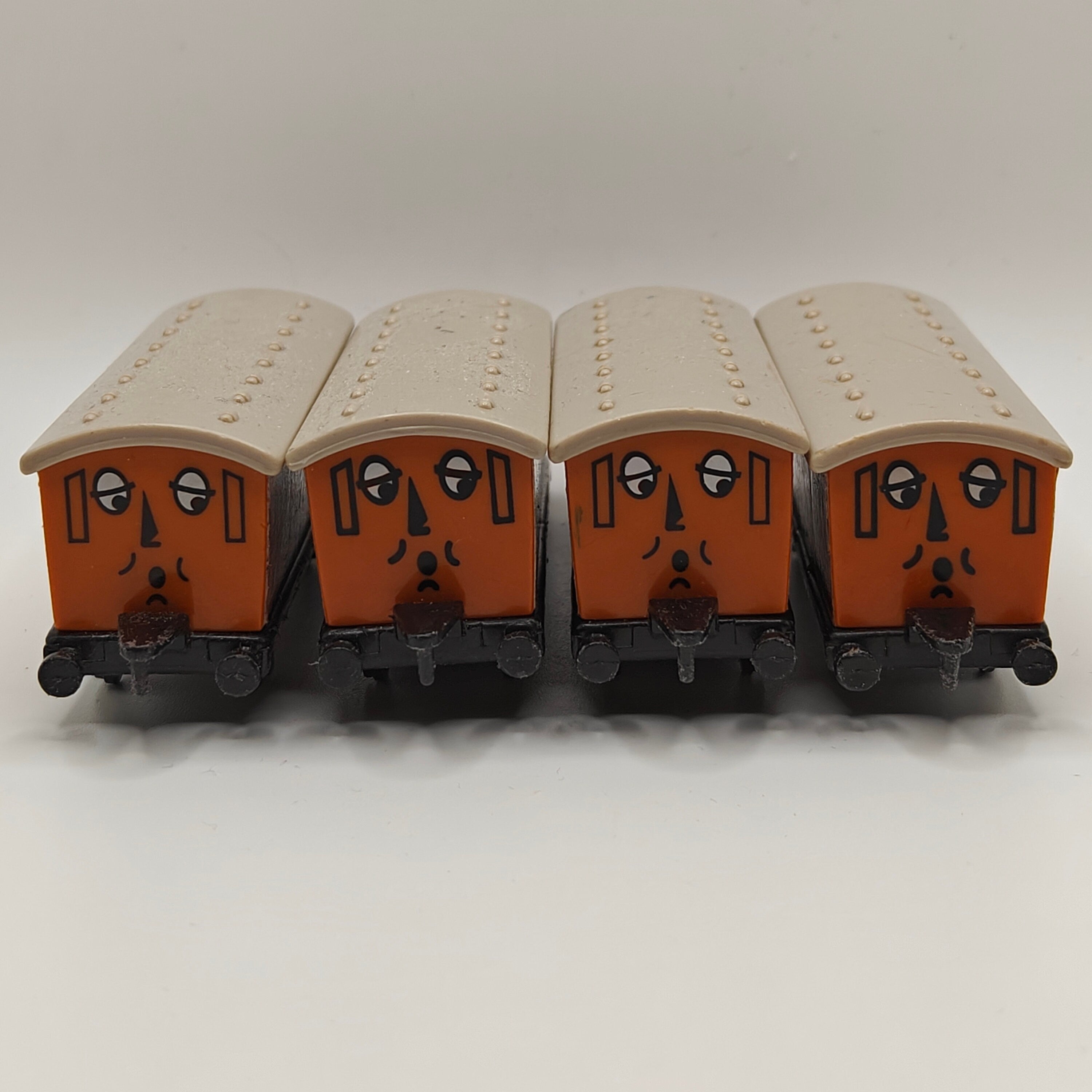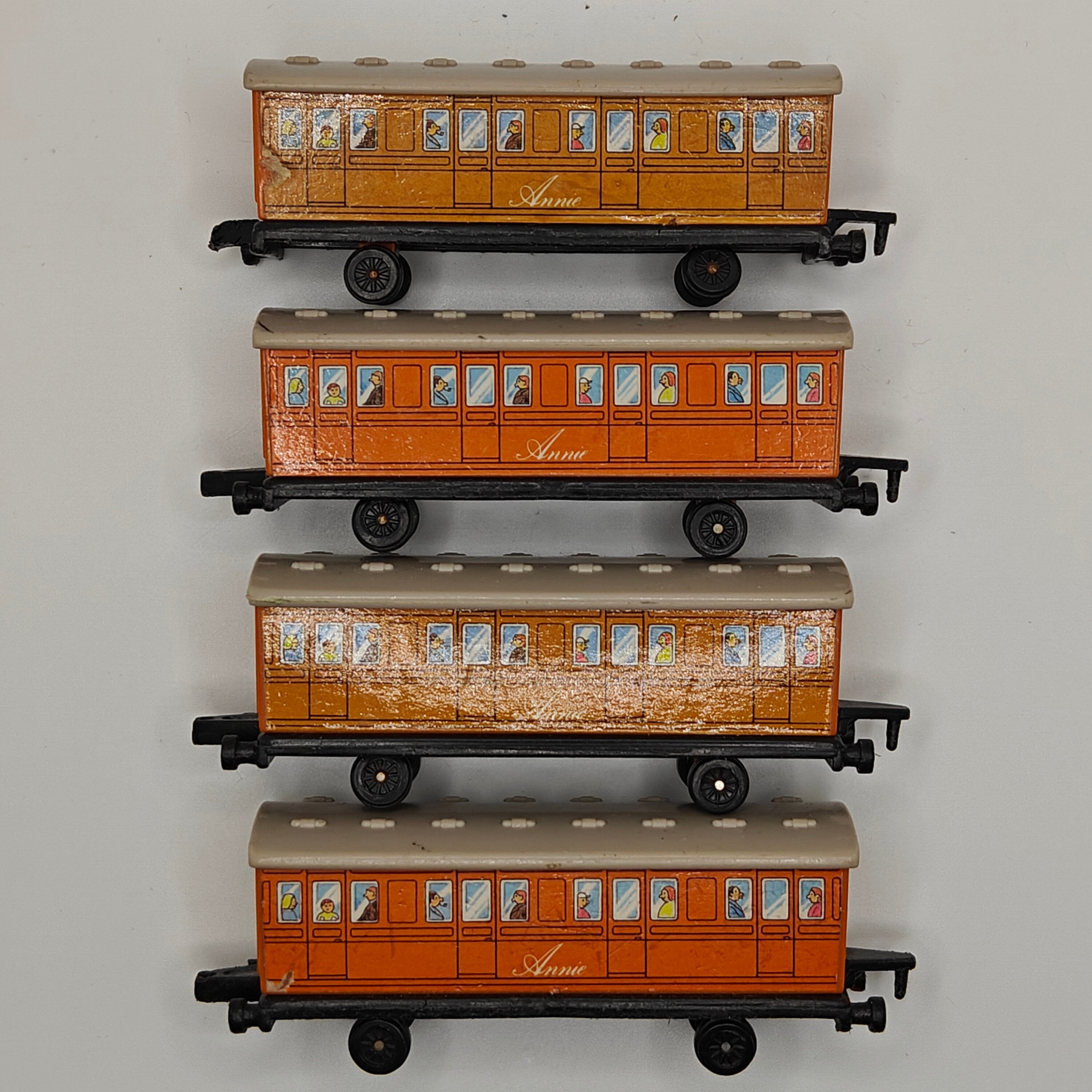 This listing is for the Thomas & Friends ERTL Diecast range's Annie. Released in the UK initially in 1985, this line featured 1/64 scale die-cast models and playsets based off of the characters from The Railway Series and its television counterpart. Many characters that were trains, cars, tenders, helicopters and even people were miniaturized and became collectible items as well as toys. Since being discontinued in 2004, the interest in these has only increased, with some characters becoming increasingly hard to find, albeit in good condition.