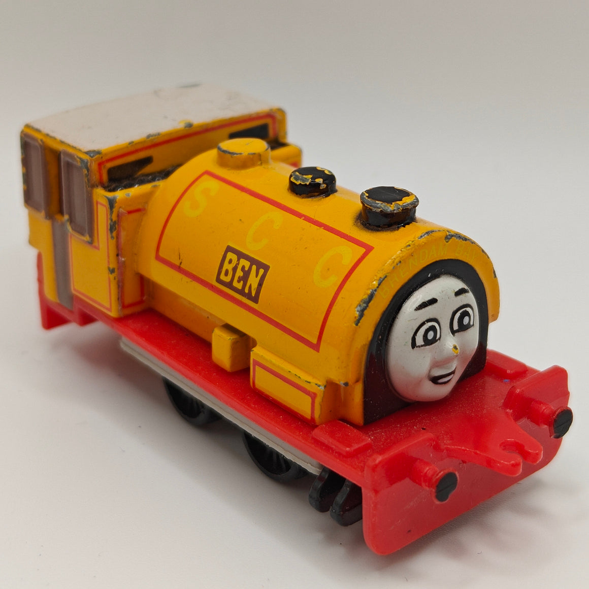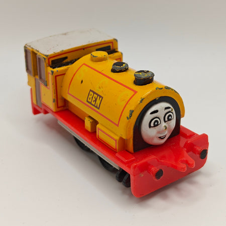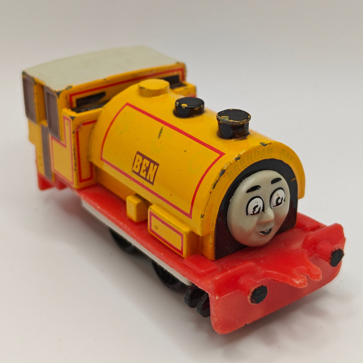 This listing is for the Thomas & Friends ERTL Diecast range's Ben. Released in the UK initially in 1985, this line featured 1/64 scale die-cast models and playsets based off of the characters from The Railway Series and its television counterpart. Many characters that were trains, cars, tenders, helicopters and even people were miniaturized and became collectible items as well as toys. Since being discontinued in 2004, the interest in these has only increased, with some characters becoming increasingly hard to find, albeit in good condition.