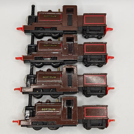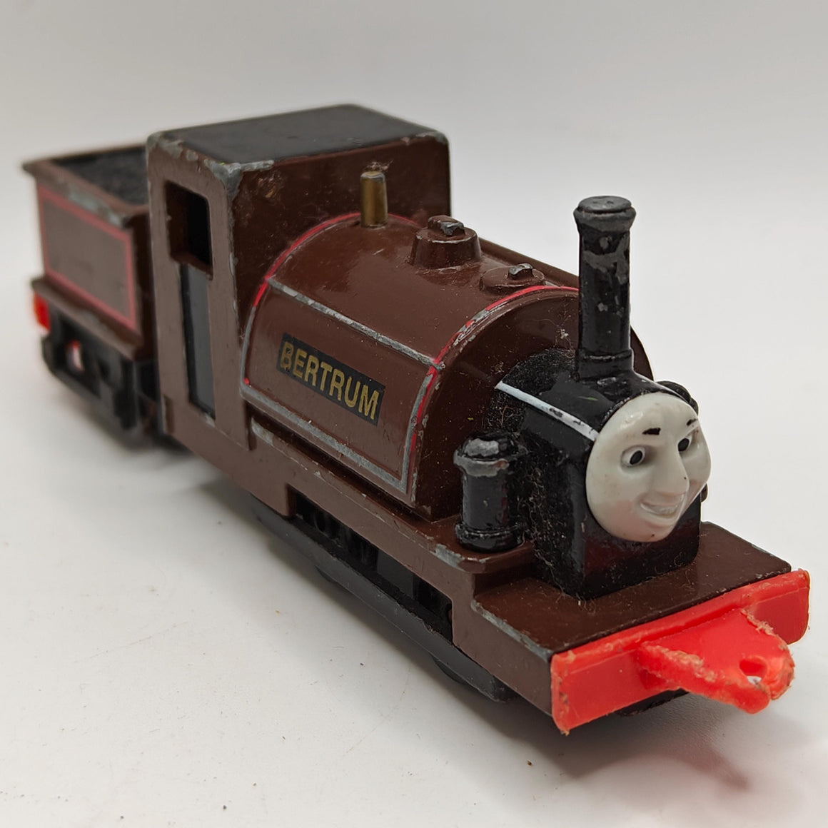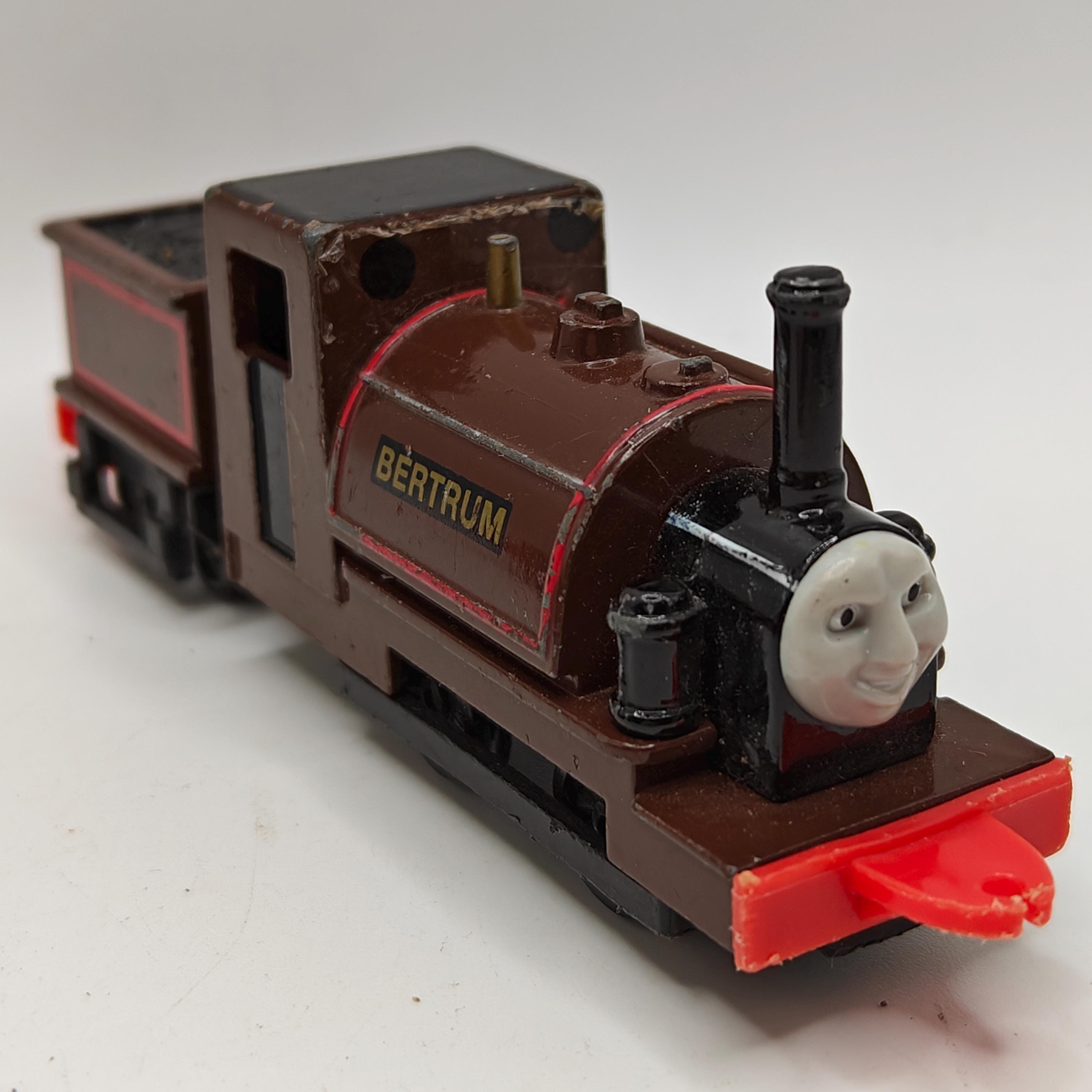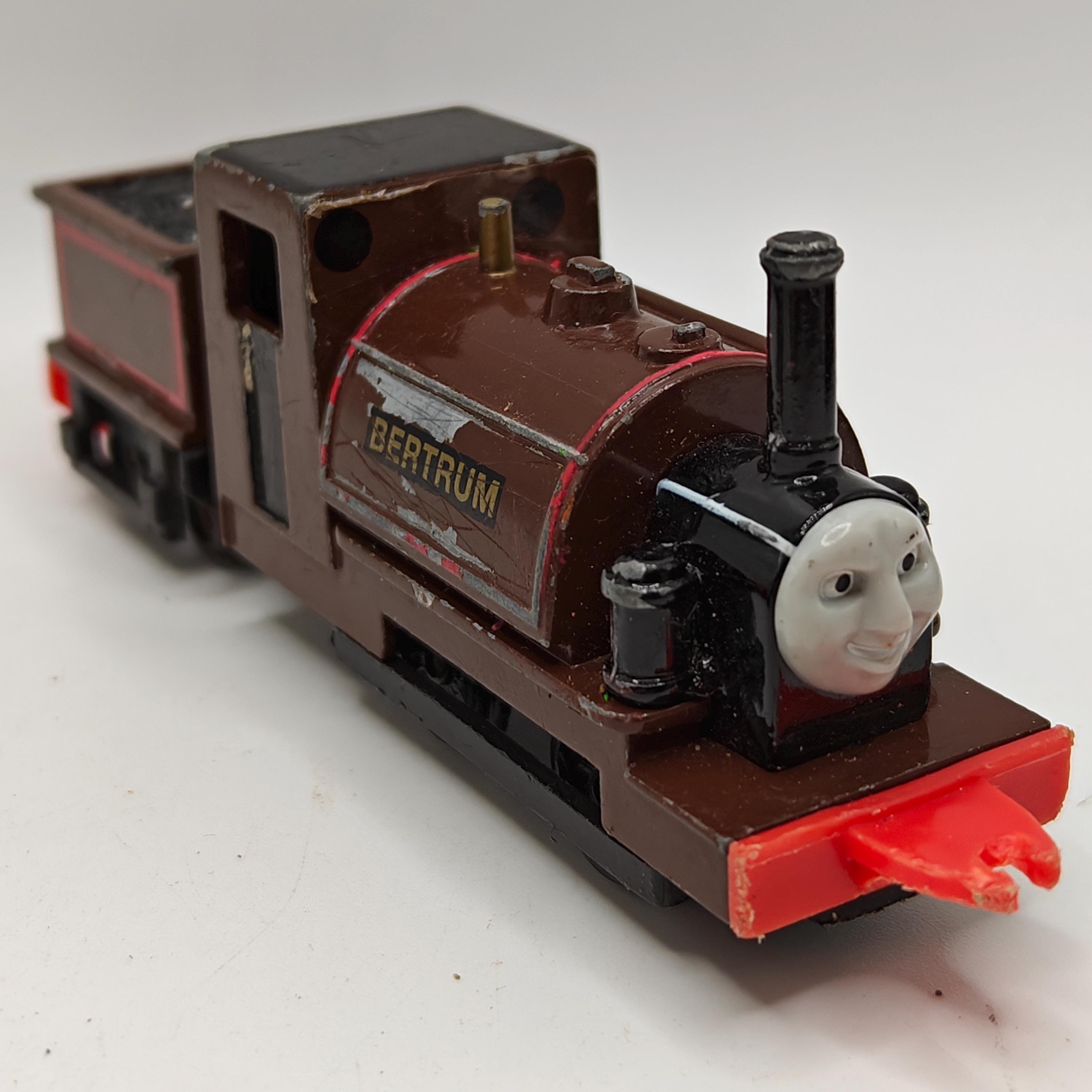 This listing is for the Thomas & Friends ERTL Diecast range's Bertrum. Released in the UK initially in 1985, this line featured 1/64 scale die-cast models and playsets based off of the characters from The Railway Series and its television counterpart. Many characters that were trains, cars, tenders, helicopters and even people were miniaturized and became collectible items as well as toys. Since being discontinued in 2004, the interest in these has only increased, with some characters becoming increasingly hard to find, albeit in good condition.