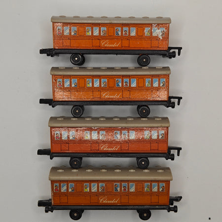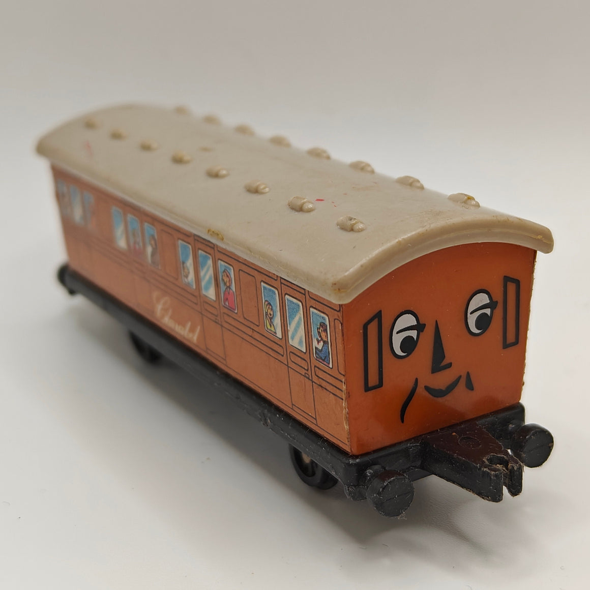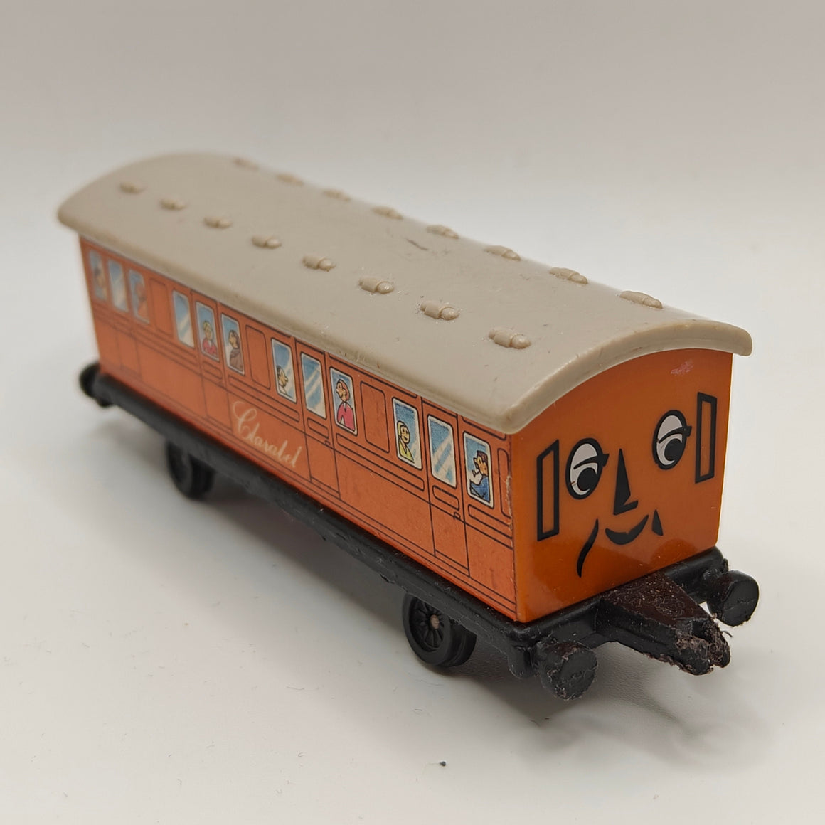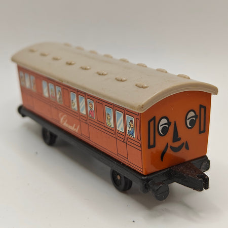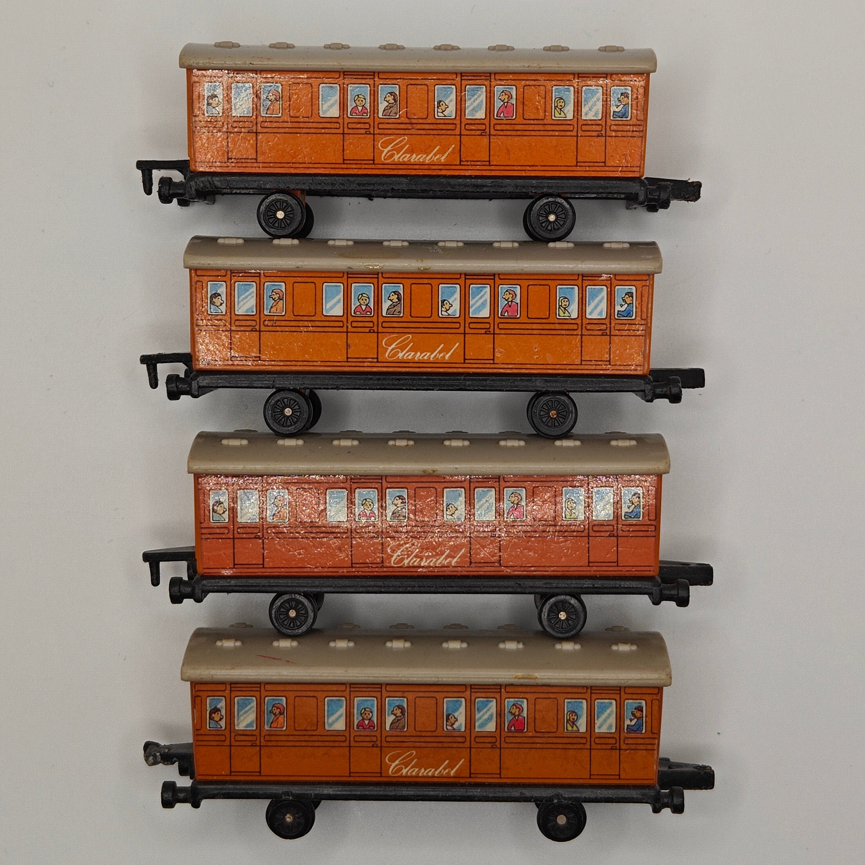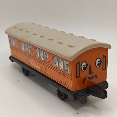 This listing is for the Thomas & Friends ERTL Diecast range's Clarabel. Released in the UK initially in 1985, this line featured 1/64 scale die-cast models and playsets based off of the characters from The Railway Series and its television counterpart. Many characters that were trains, cars, tenders, helicopters and even people were miniaturized and became collectible items as well as toys. Since being discontinued in 2004, the interest in these has only increased, with some characters becoming increasingly hard to find, albeit in good condition.