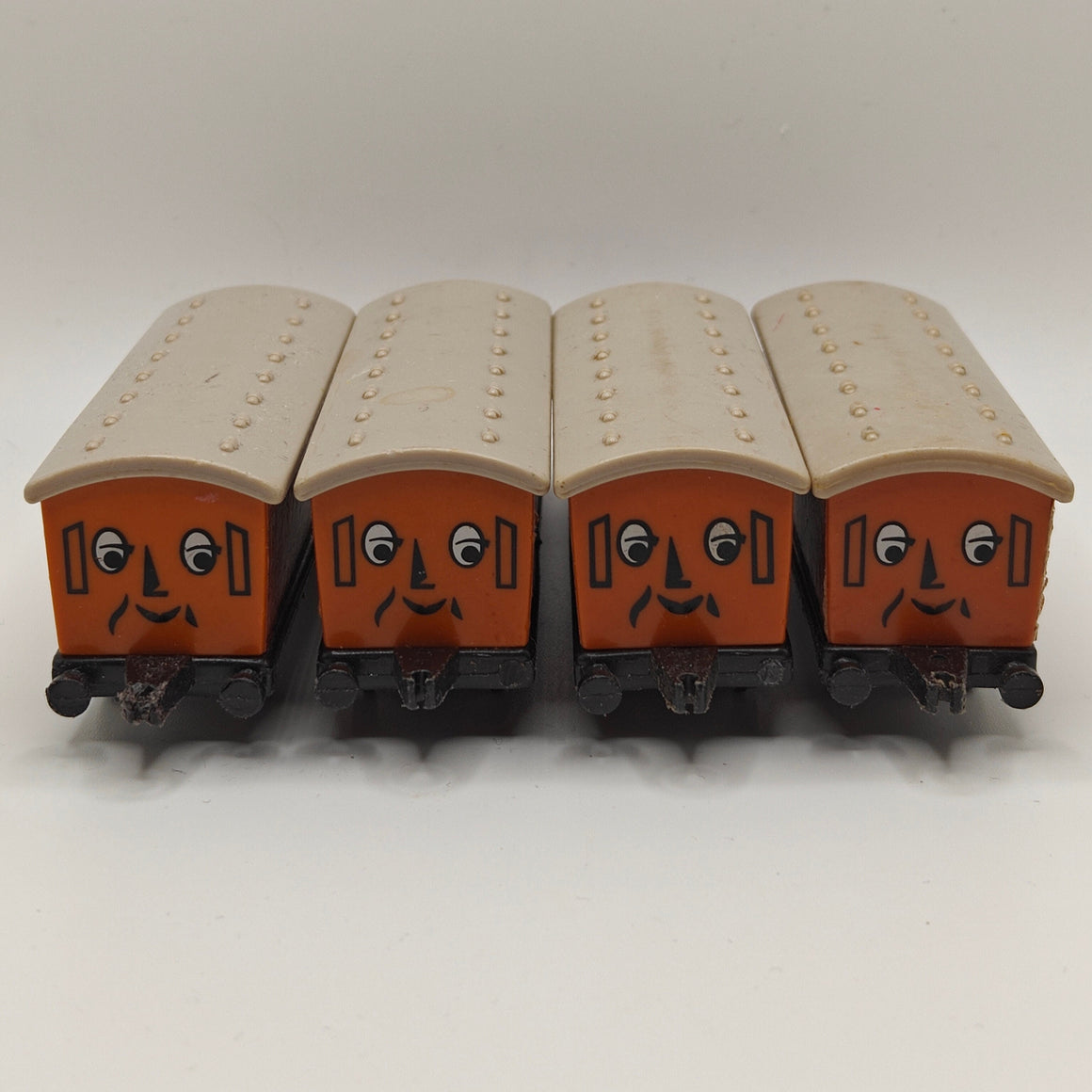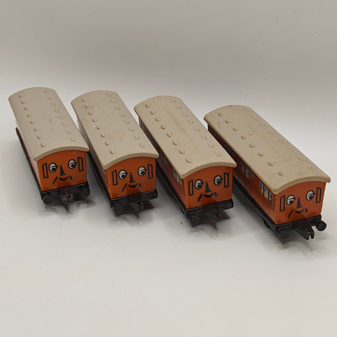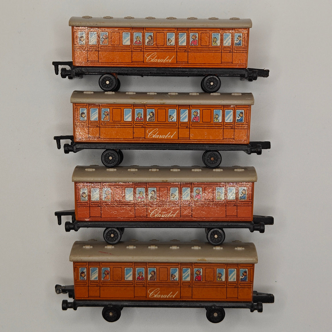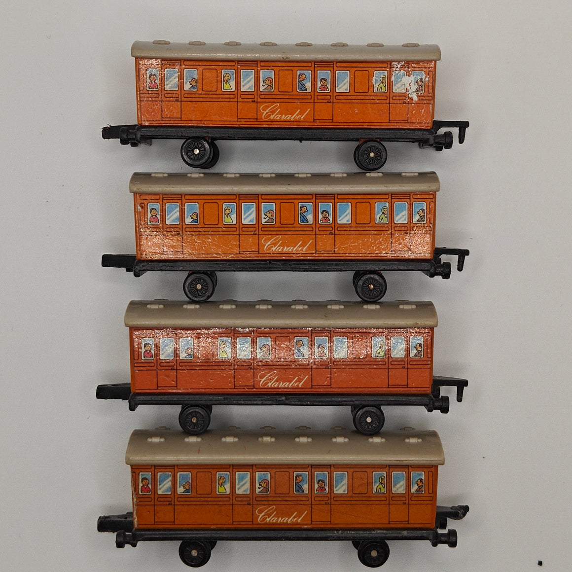 This listing is for the Thomas & Friends ERTL Diecast range's Clarabel. Released in the UK initially in 1985, this line featured 1/64 scale die-cast models and playsets based off of the characters from The Railway Series and its television counterpart. Many characters that were trains, cars, tenders, helicopters and even people were miniaturized and became collectible items as well as toys. Since being discontinued in 2004, the interest in these has only increased, with some characters becoming increasingly hard to find, albeit in good condition.