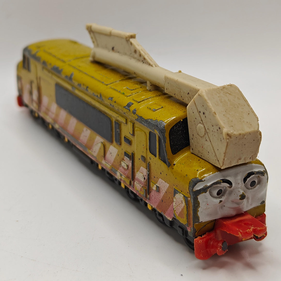 This listing is for the Thomas & Friends ERTL Diecast range's Diesel 10. Released in the UK initially in 1985, this line featured 1/64 scale die-cast models and playsets based off of the characters from The Railway Series and its television counterpart. Many characters that were trains, cars, tenders, helicopters and even people were miniaturized and became collectible items as well as toys. Since being discontinued in 2004, the interest in these has only increased, with some characters becoming increasingly hard to find, albeit in good condition.