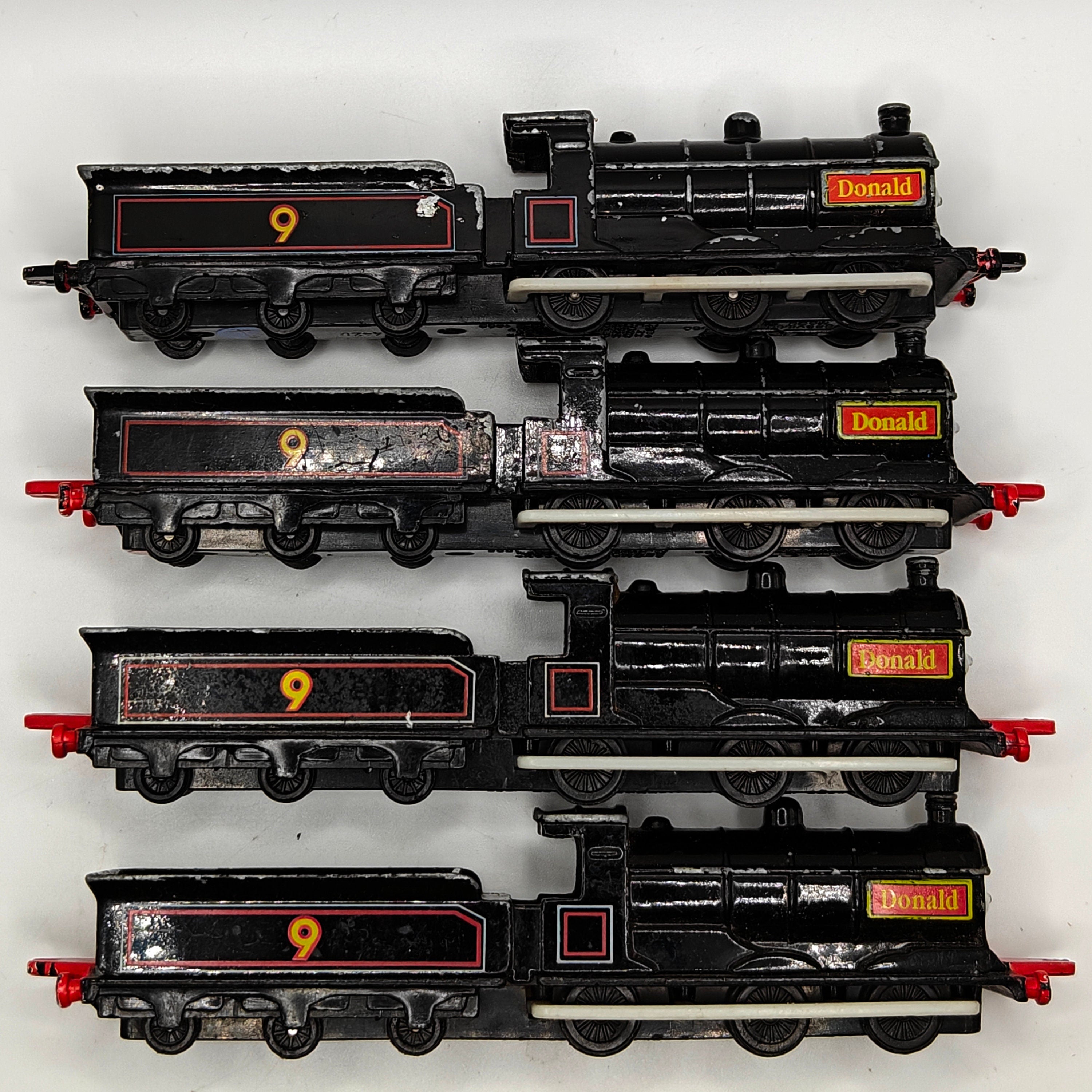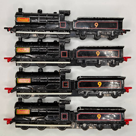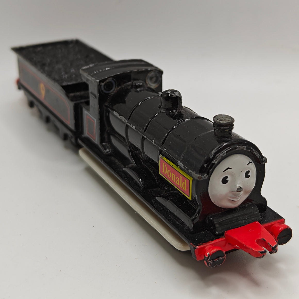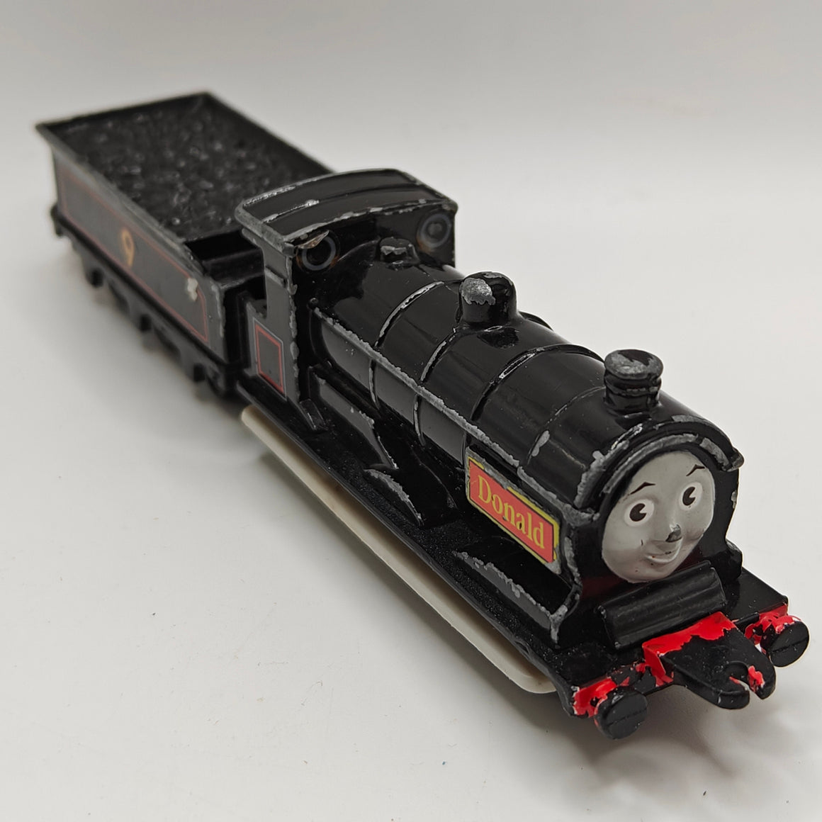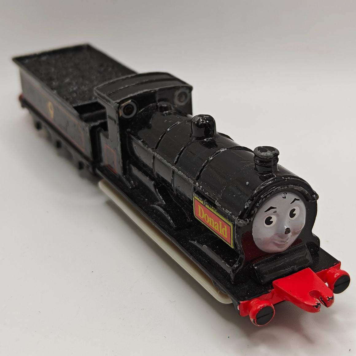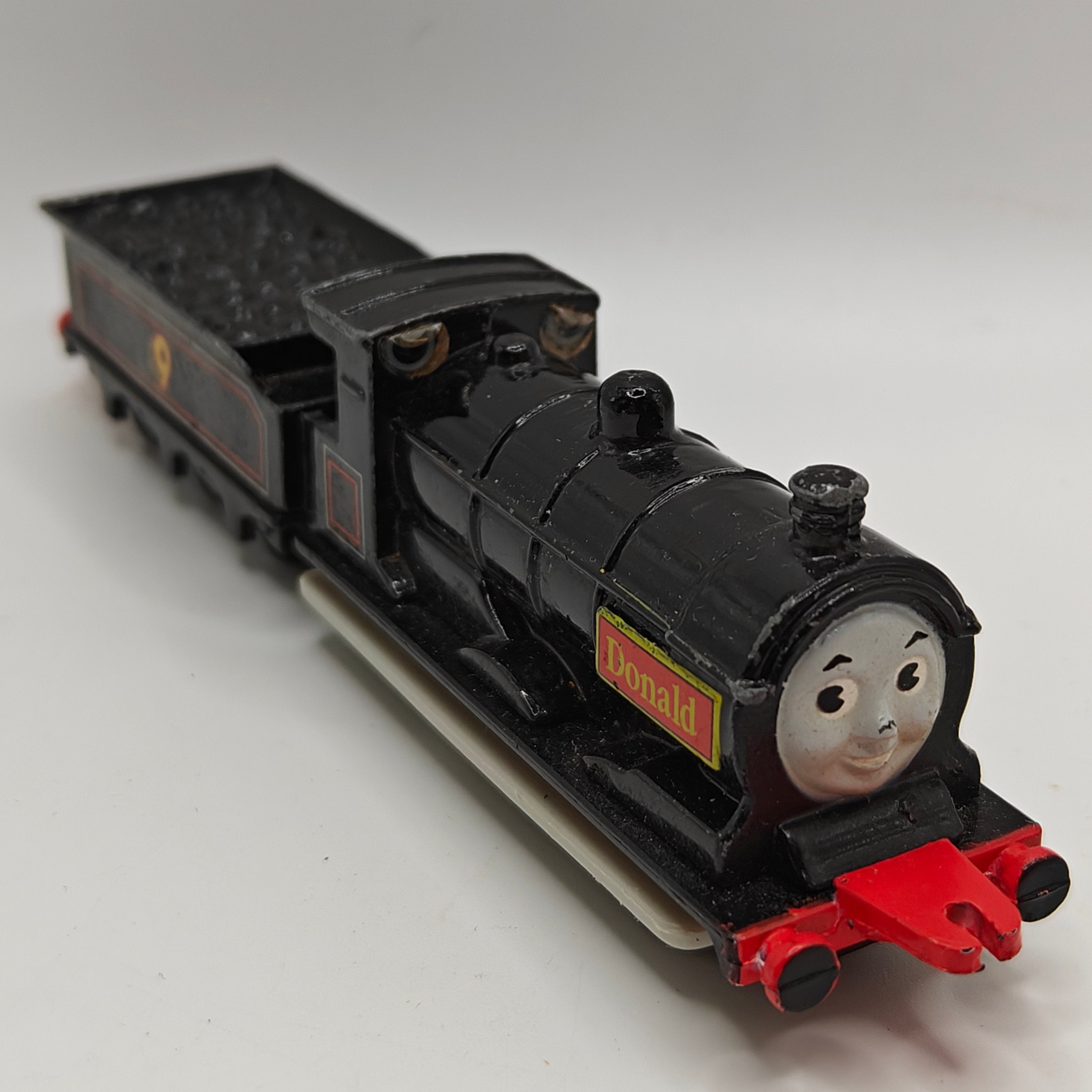 This listing is for the Thomas & Friends ERTL Diecast range's Donald. Released in the UK initially in 1985, this line featured 1/64 scale die-cast models and playsets based off of the characters from The Railway Series and its television counterpart. Many characters that were trains, cars, tenders, helicopters and even people were miniaturized and became collectible items as well as toys. Since being discontinued in 2004, the interest in these has only increased, with some characters becoming increasingly hard to find, albeit in good condition.