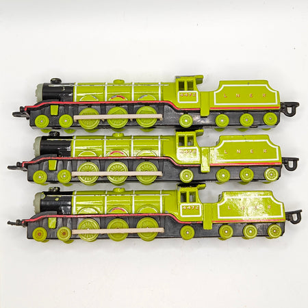 This listing is for the Thomas & Friends ERTL Diecast range's Flying Scotsman. Released in the UK initially in 1985, this line featured 1/64 scale die-cast models and playsets based off of the characters from The Railway Series and its television counterpart. Many characters that were trains, cars, tenders, helicopters and even people were miniaturized and became collectible items as well as toys. Since being discontinued in 2004, the interest in these has only increased, with some characters becoming increasingly hard to find, albeit in good condition.