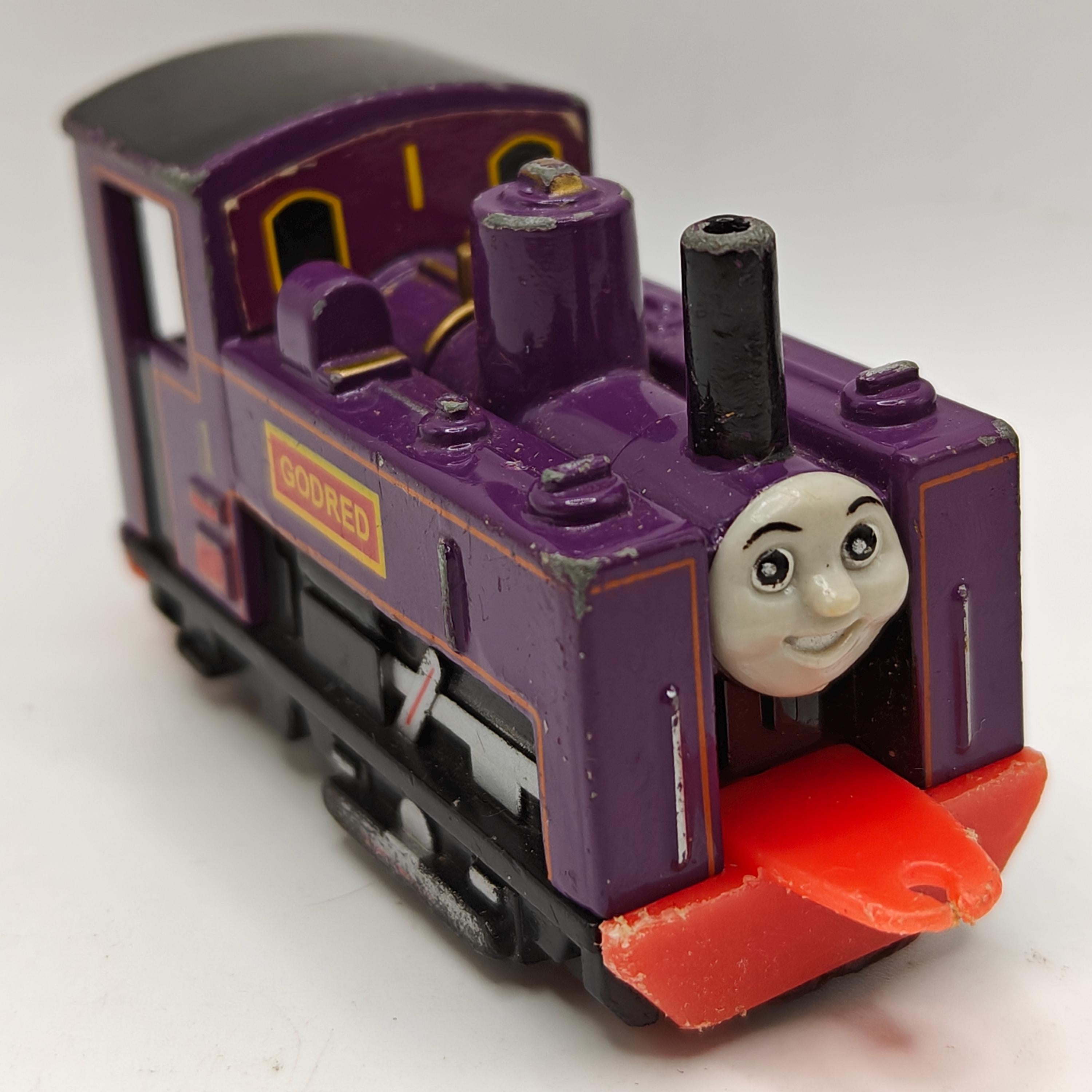This listing is for the Thomas & Friends ERTL Diecast range's Godred. Released in the UK initially in 1985, this line featured 1/64 scale die-cast models and playsets based off of the characters from The Railway Series and its television counterpart. Many characters that were trains, cars, tenders, helicopters and even people were miniaturized and became collectible items as well as toys. Since being discontinued in 2004, the interest in these has only increased, with some characters becoming increasingly hard to find, albeit in good condition.