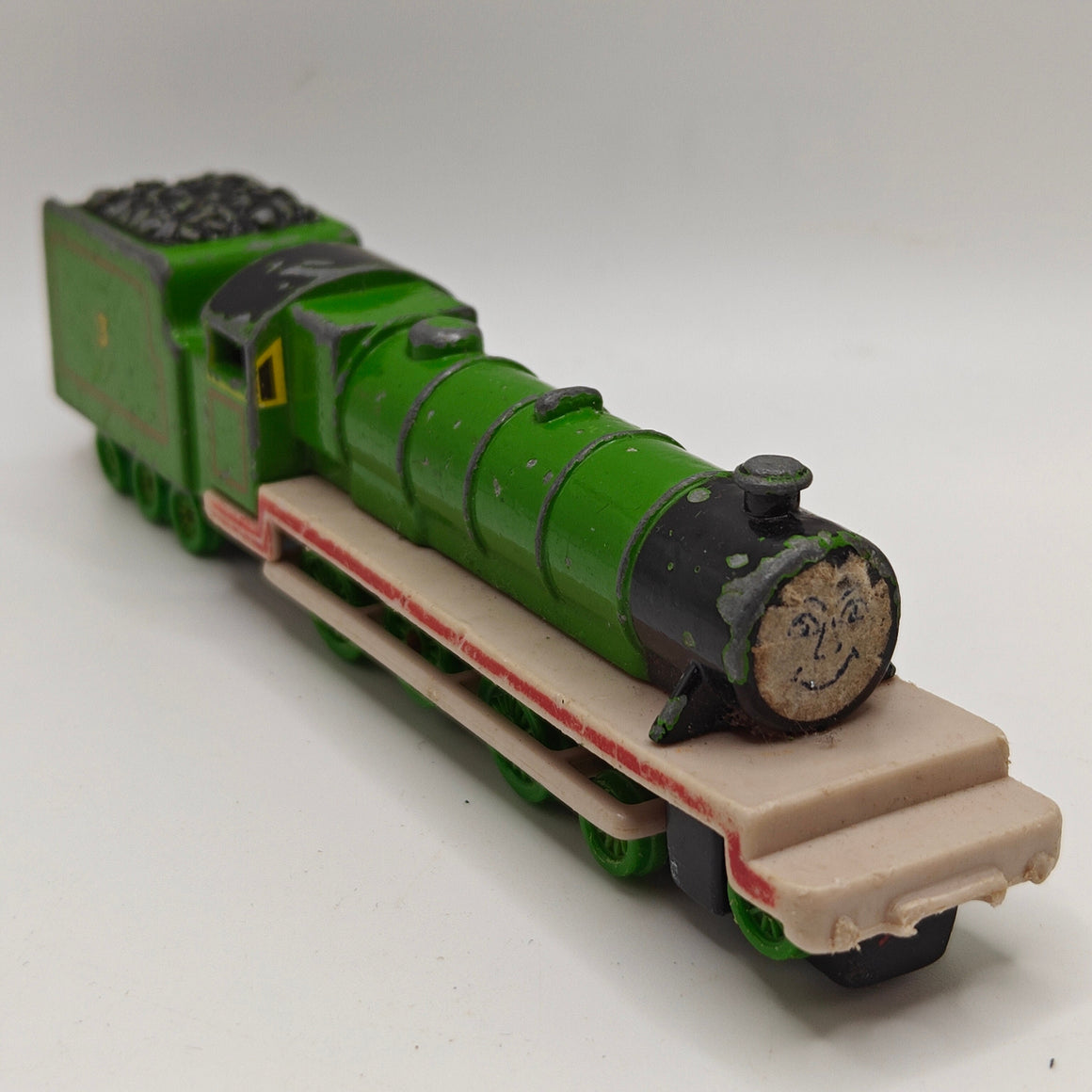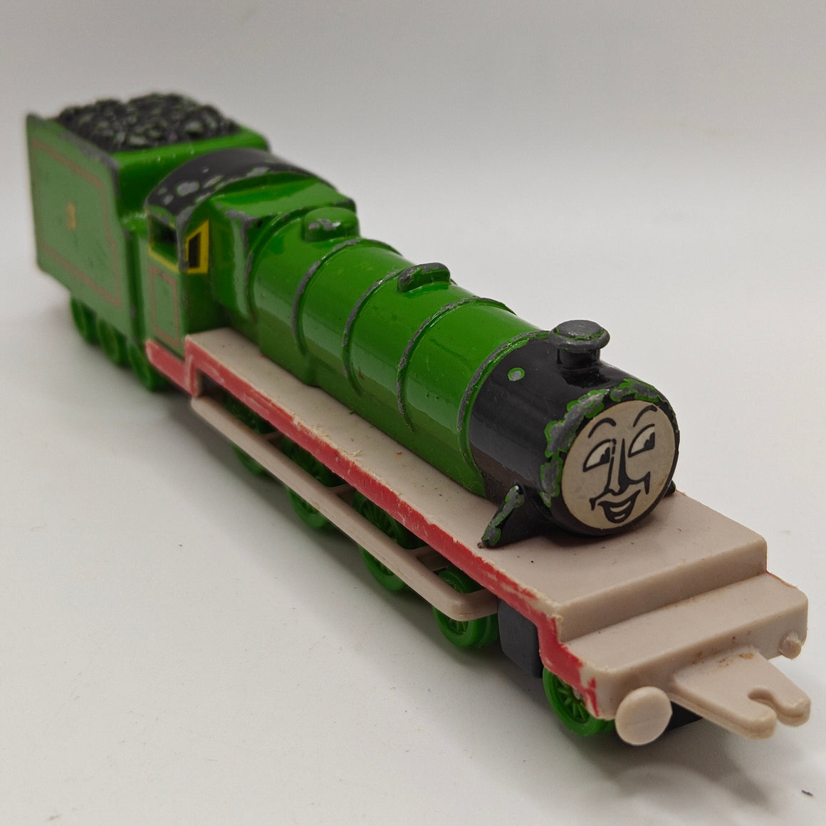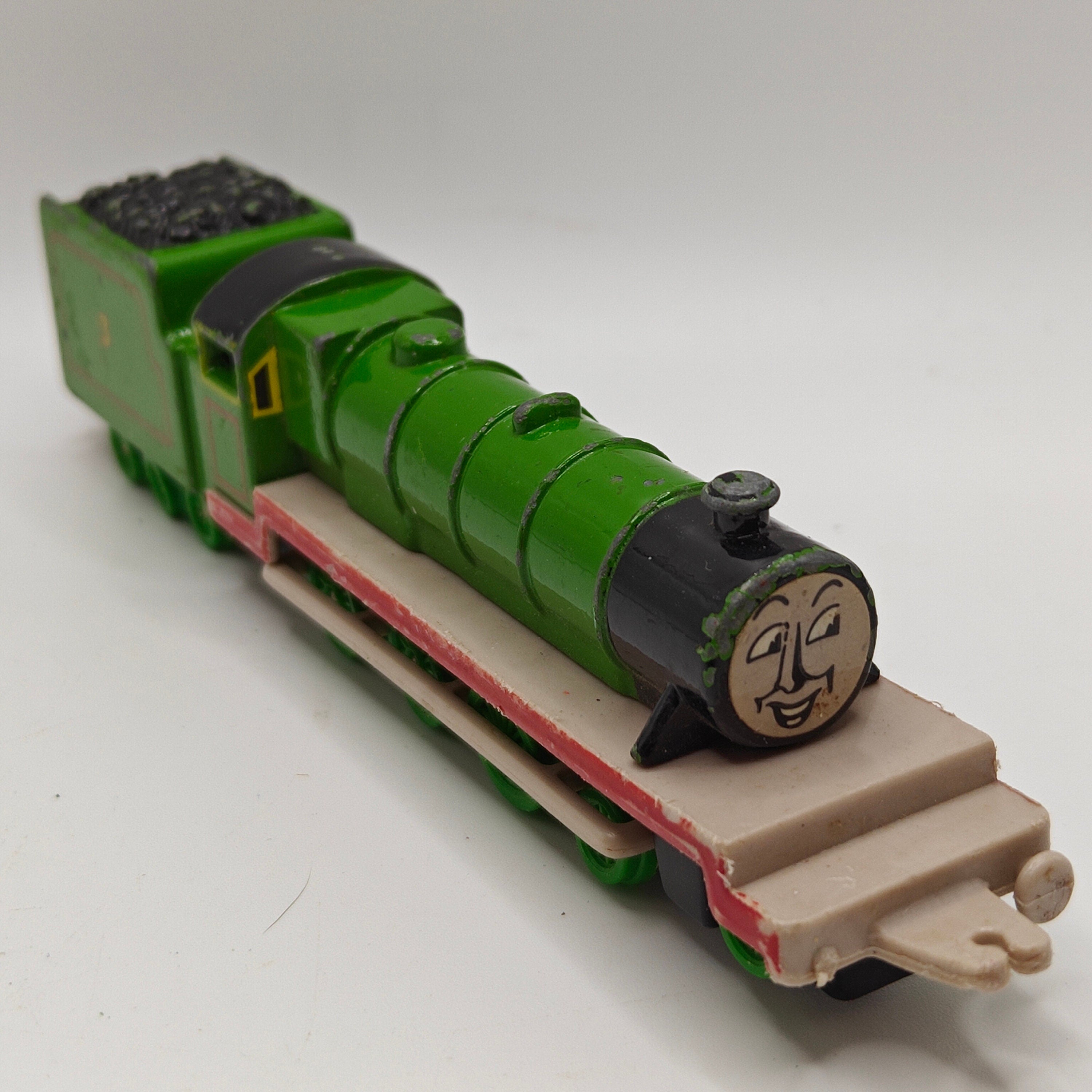 This listing is for the Thomas & Friends ERTL Diecast range's Henry with the original paper face and white running board. Released in the UK initially in 1985, this line featured 1/64 scale die-cast models and playsets based off of the characters from The Railway Series and its television counterpart. Many characters that were trains, cars, tenders, helicopters and even people were miniaturized and became collectible items as well as toys. Since being discontinued in 2004, the interest in these has only increased, with some characters becoming increasingly hard to find, albeit in good condition.