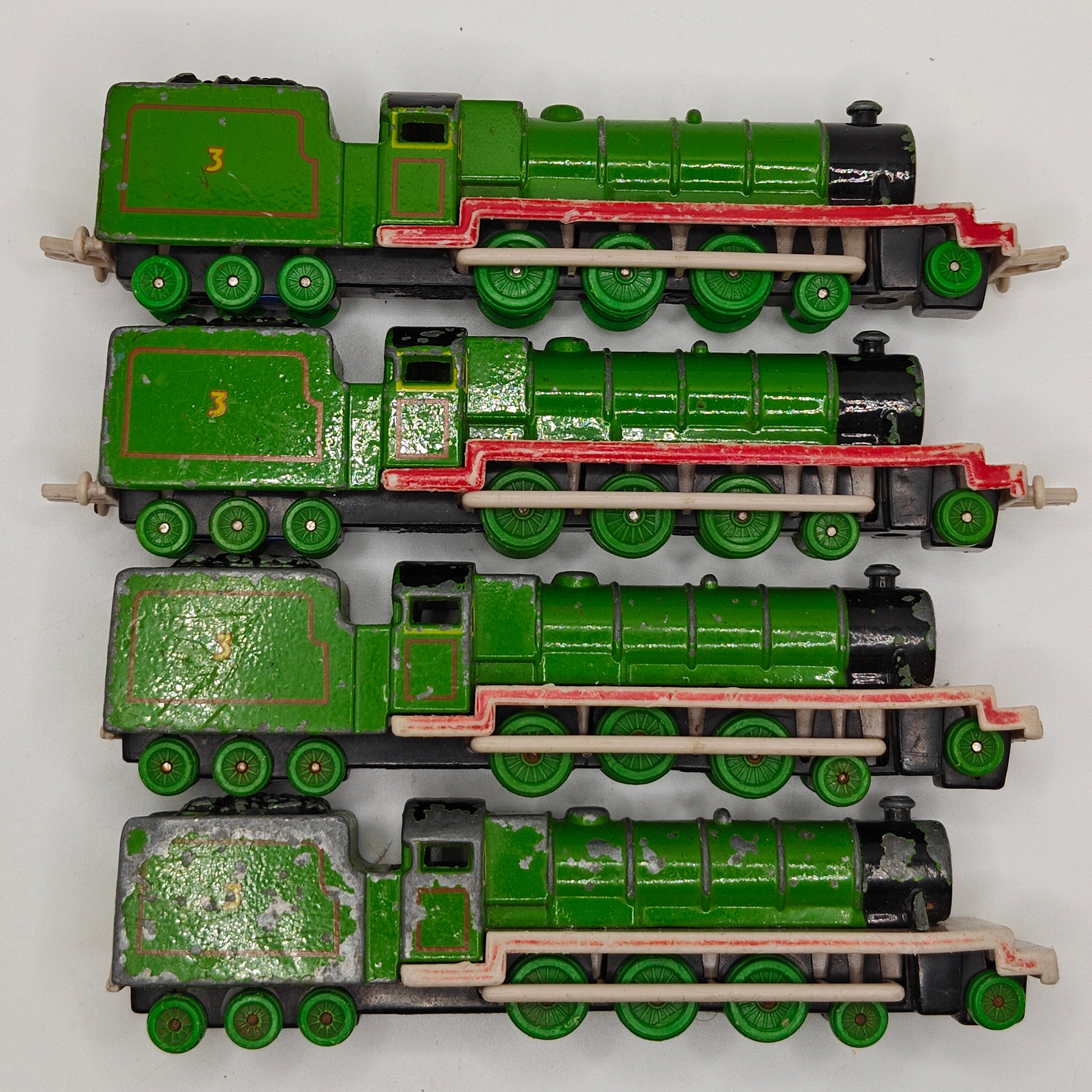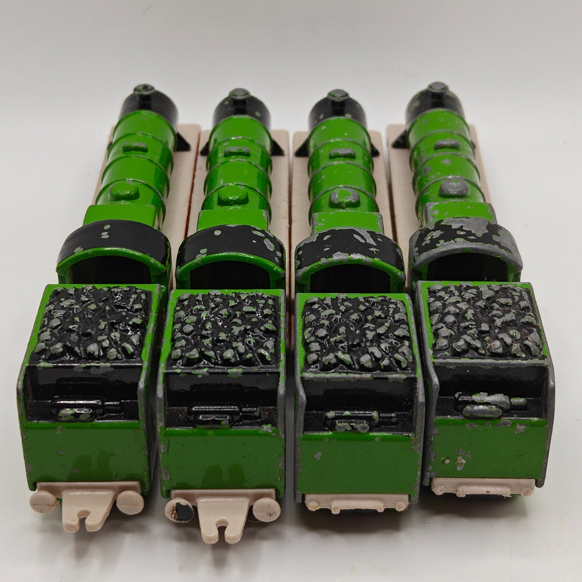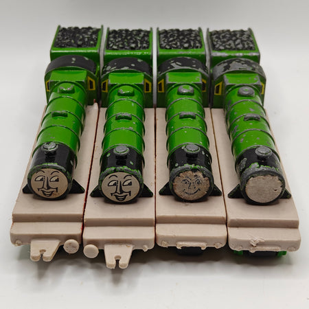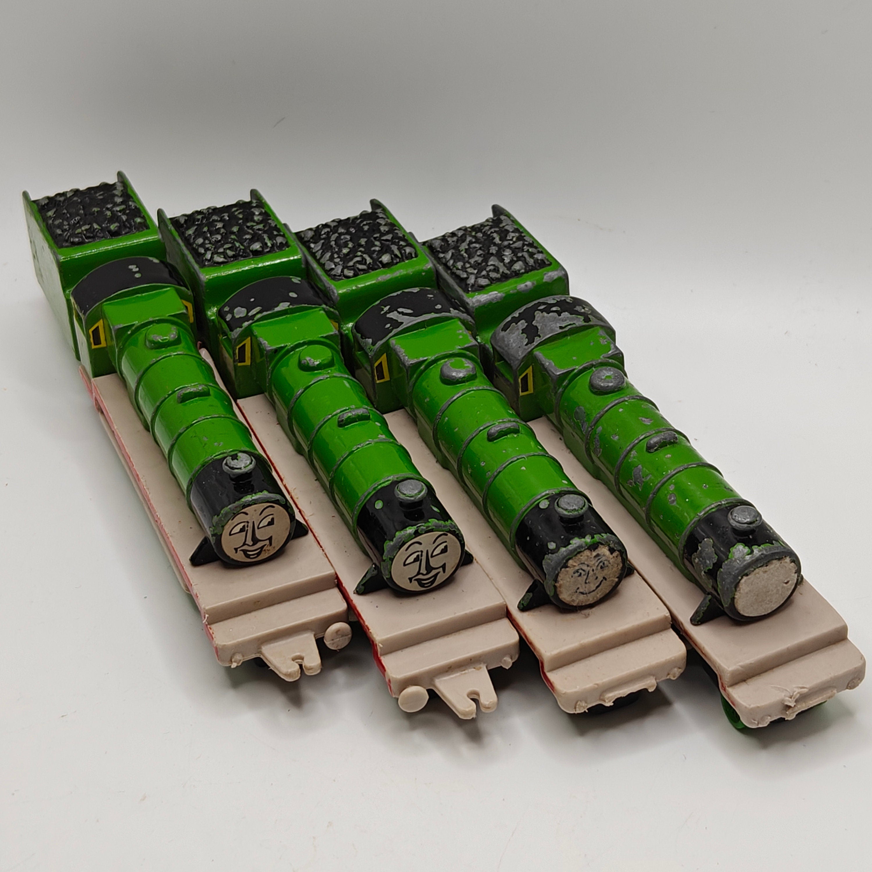 This listing is for the Thomas & Friends ERTL Diecast range's Henry with the original paper face and white running board. Released in the UK initially in 1985, this line featured 1/64 scale die-cast models and playsets based off of the characters from The Railway Series and its television counterpart. Many characters that were trains, cars, tenders, helicopters and even people were miniaturized and became collectible items as well as toys. Since being discontinued in 2004, the interest in these has only increased, with some characters becoming increasingly hard to find, albeit in good condition.