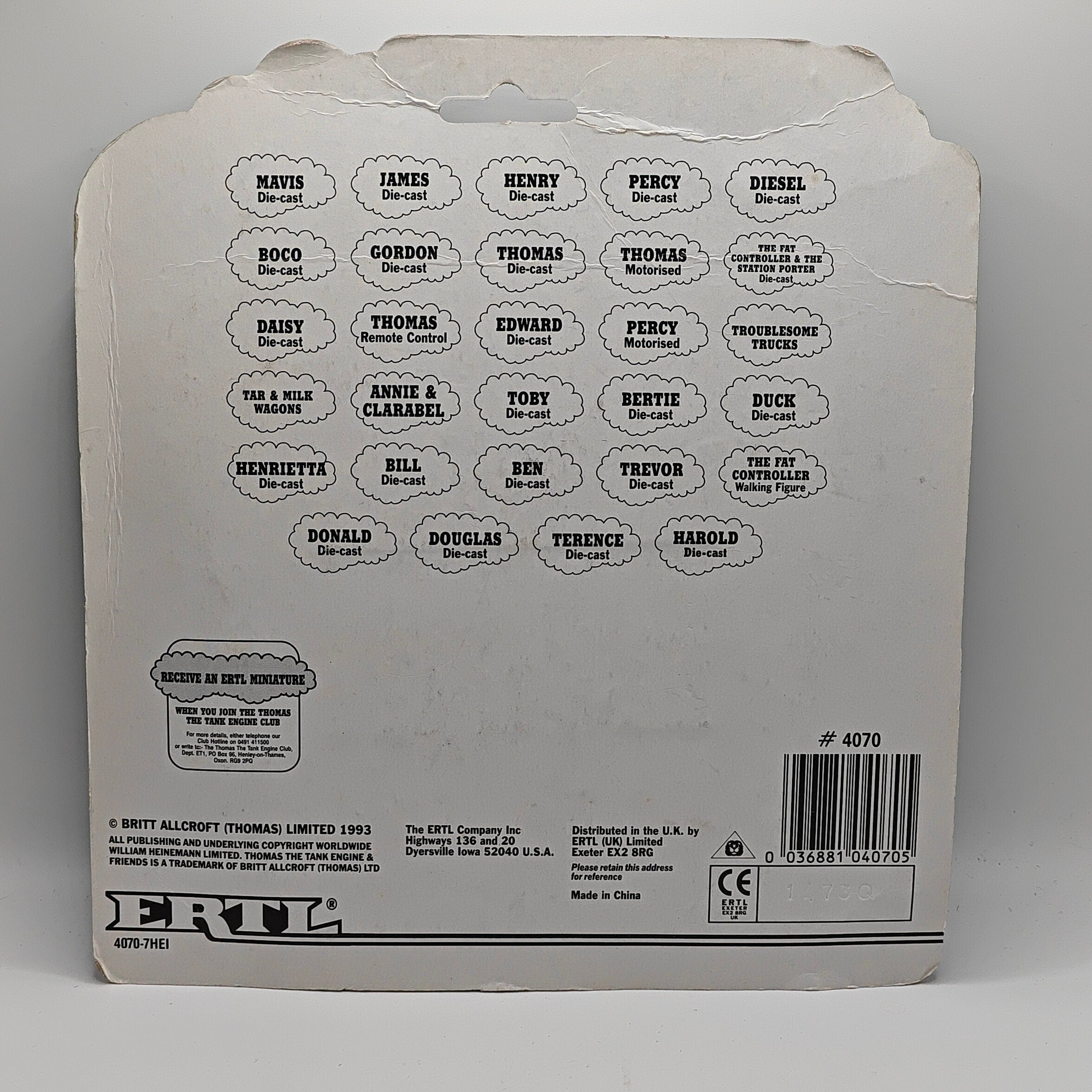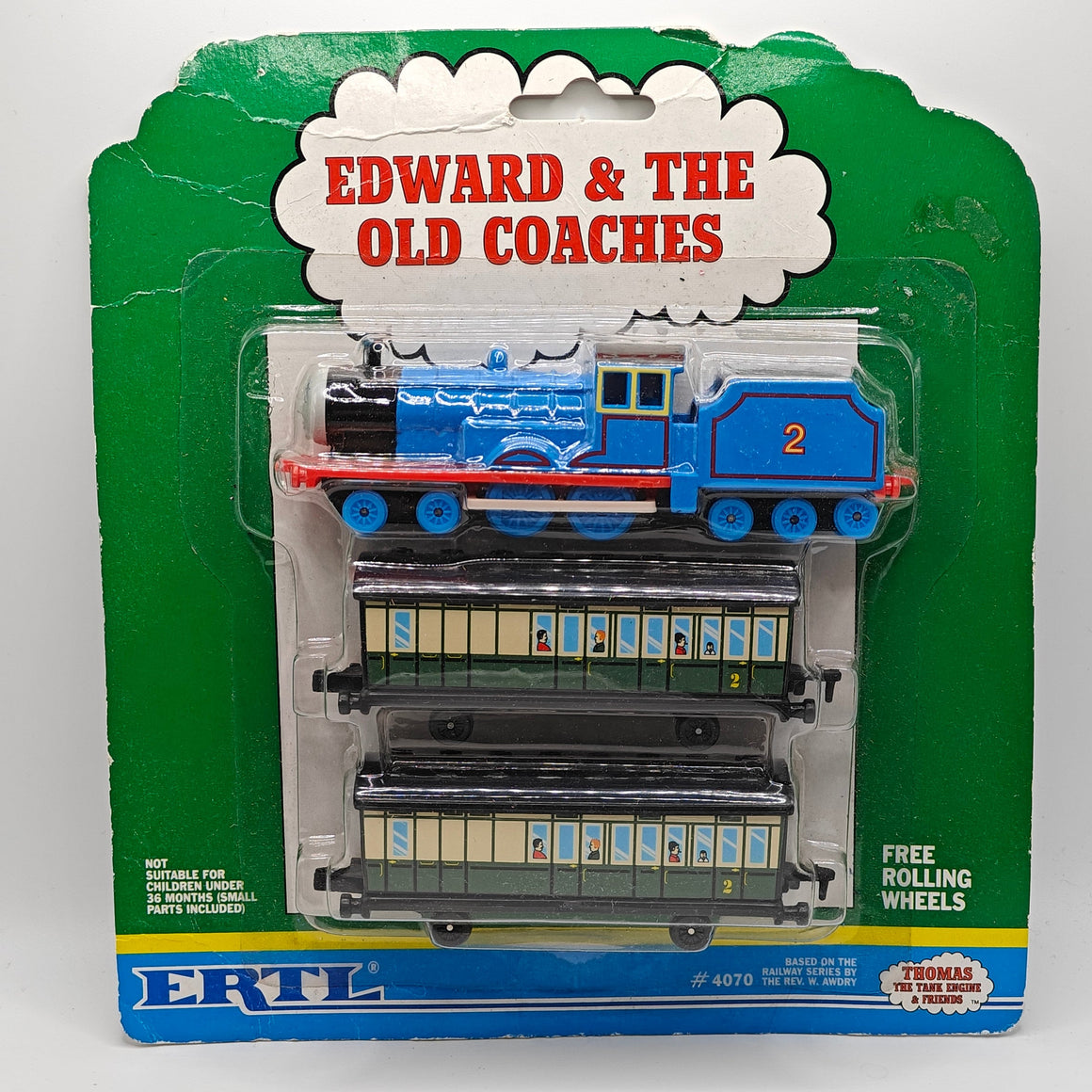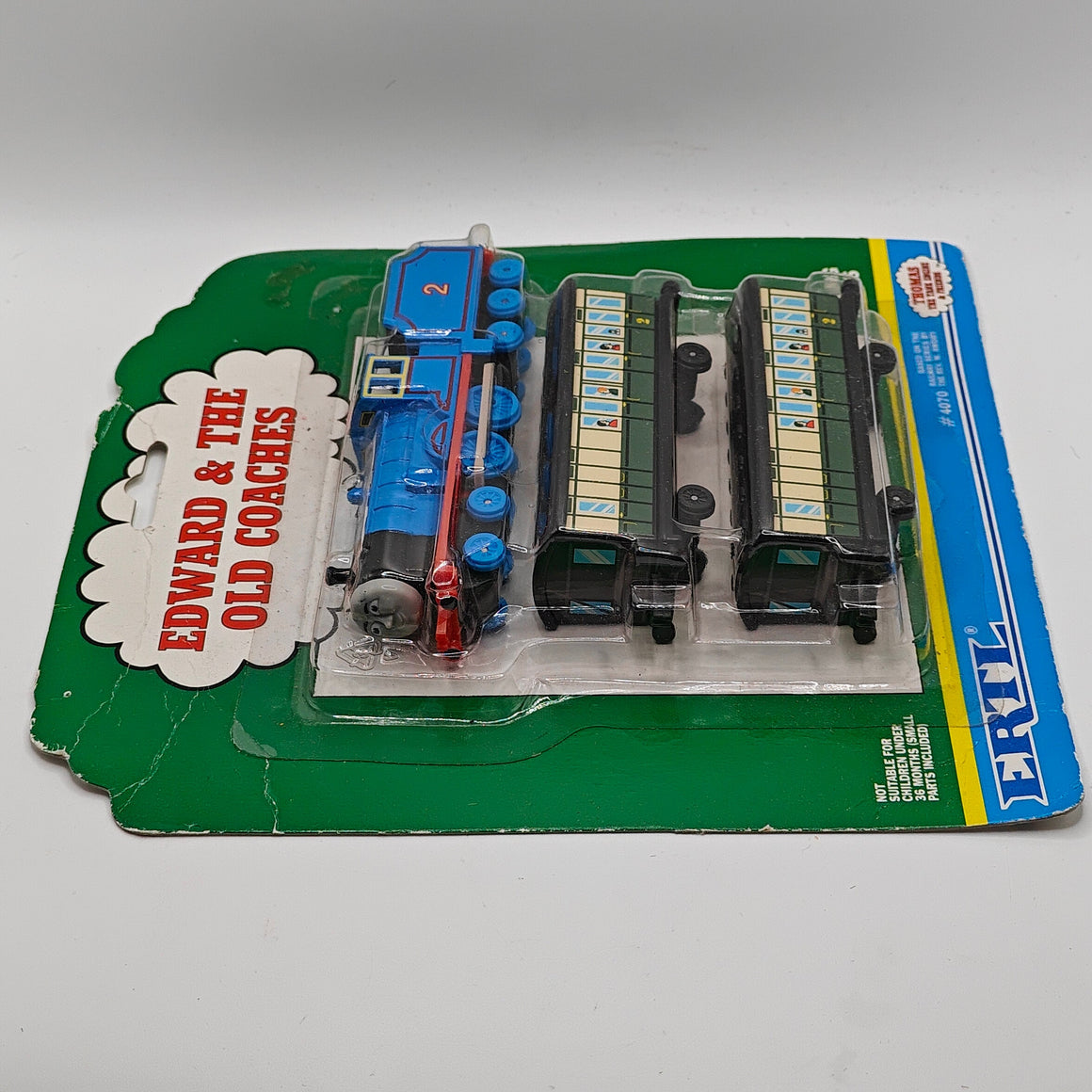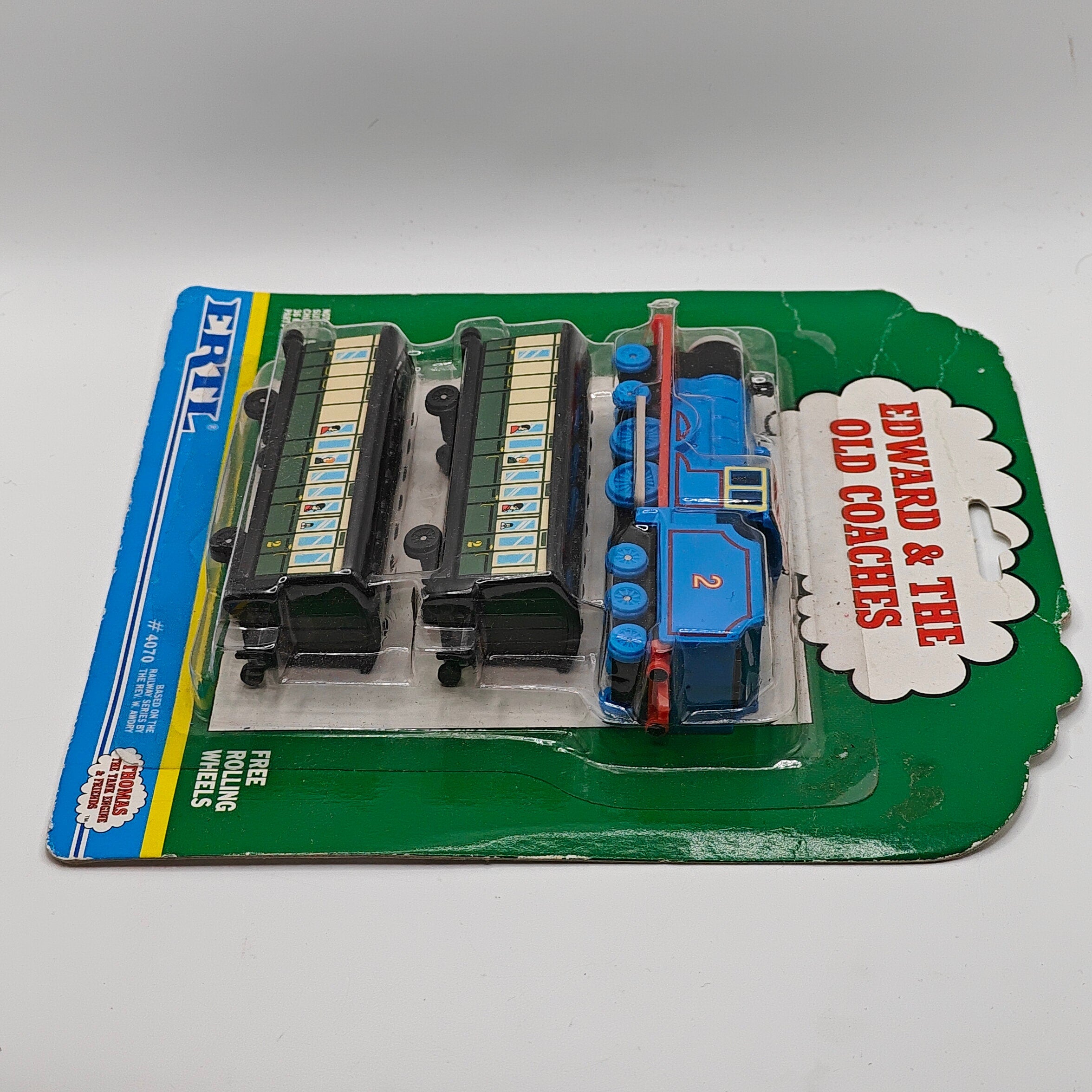 This listing is for the Thomas & Friends ERTL Diecast range's Edward & The Old Coaches, new in box. Released in the UK initially in 1985, this line featured 1/64 scale die-cast models and playsets based off of the characters from The Railway Series and its television counterpart. Many characters that were trains, cars, tenders, helicopters and even people were miniaturized and became collectible items as well as toys. Since being discontinued in 2004, the interest in these has only increased, with some characters becoming increasingly hard to find, albeit in good condition.