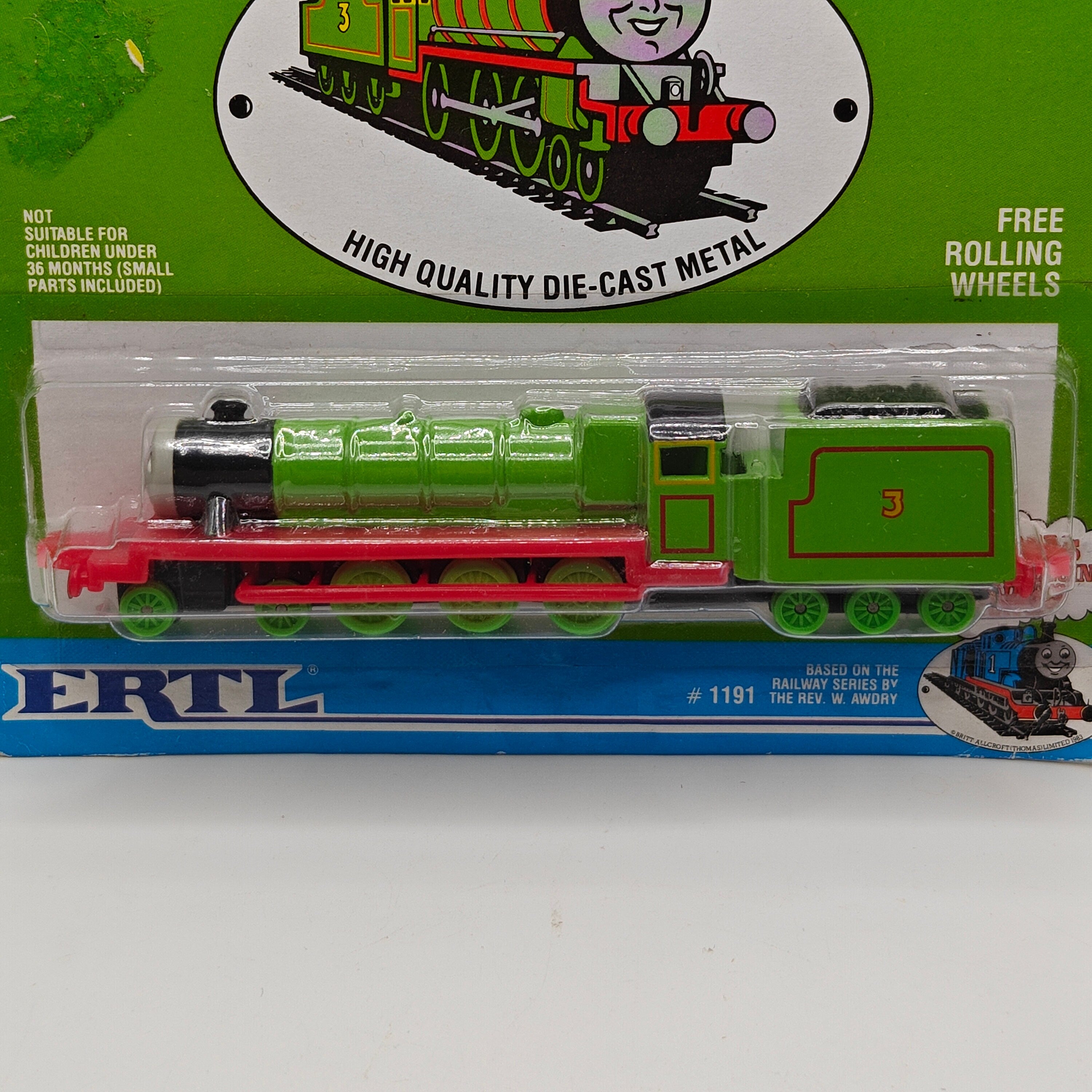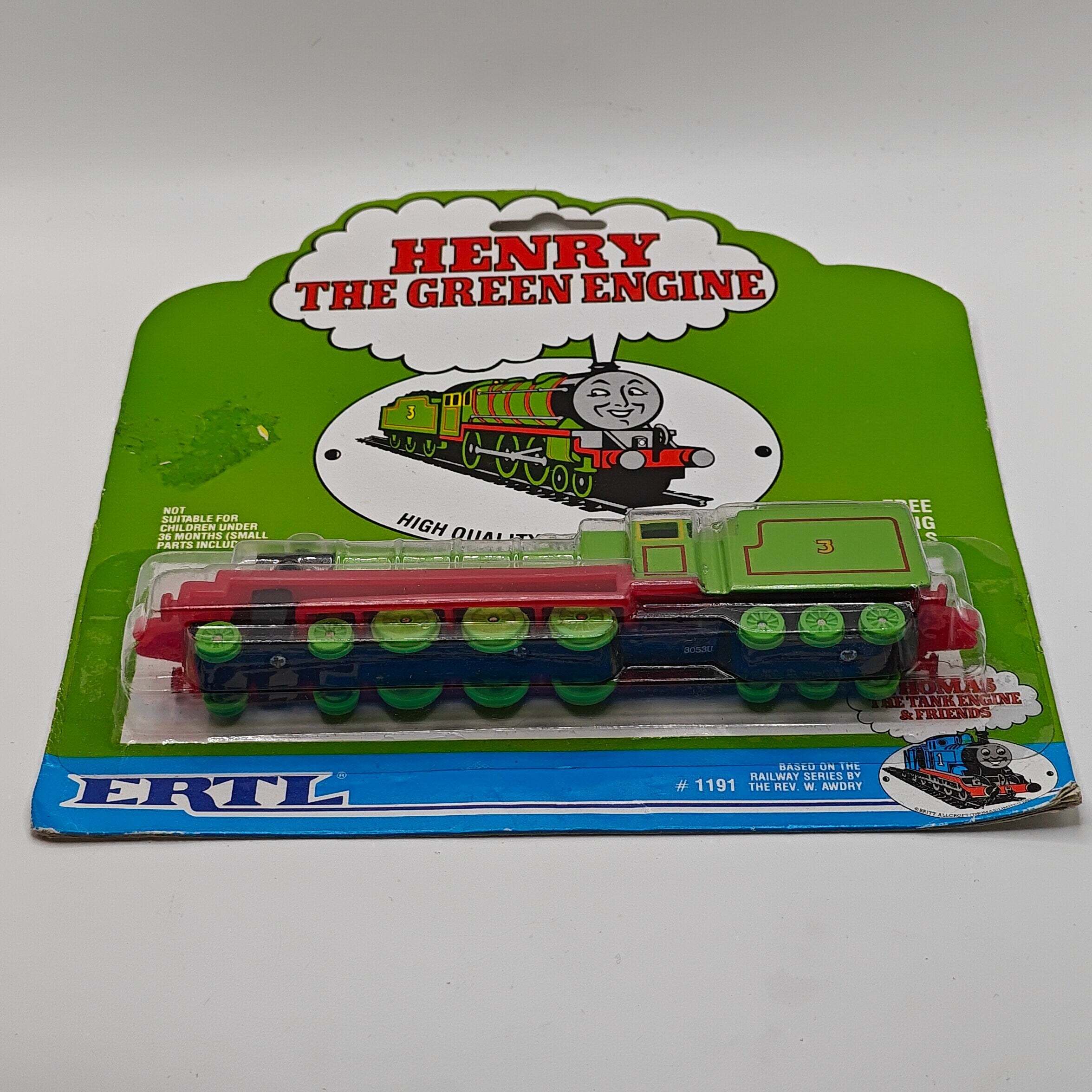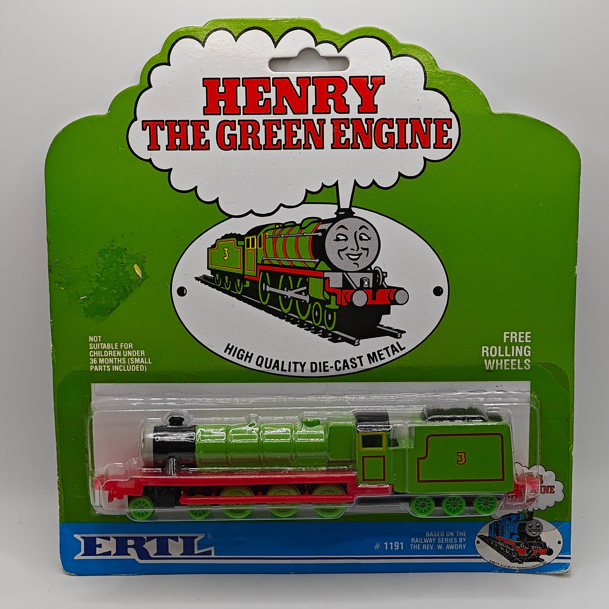 This listing is for the Thomas & Friends ERTL Diecast range's Henry, new in box. Released in the UK initially in 1985, this line featured 1/64 scale die-cast models and playsets based off of the characters from The Railway Series and its television counterpart. Many characters that were trains, cars, tenders, helicopters and even people were miniaturized and became collectible items as well as toys. Since being discontinued in 2004, the interest in these has only increased, with some characters becoming increasingly hard to find, albeit in good condition.