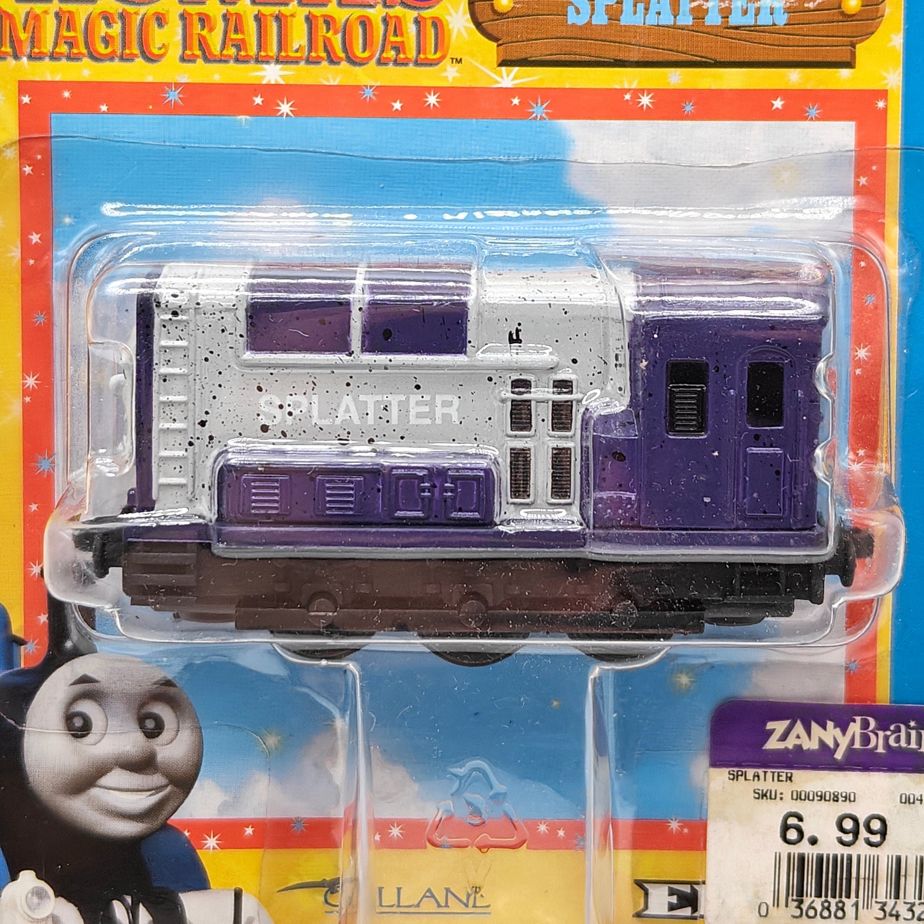 This listing is for the Thomas & Friends ERTL Diecast range's Splatter, new in box. Released in the UK initially in 1985, this line featured 1/64 scale die-cast models and playsets based off of the characters from The Railway Series and its television counterpart. Many characters that were trains, cars, tenders, helicopters and even people were miniaturized and became collectible items as well as toys. Since being discontinued in 2004, the interest in these has only increased, with some characters becoming increasingly hard to find, albeit in good condition.