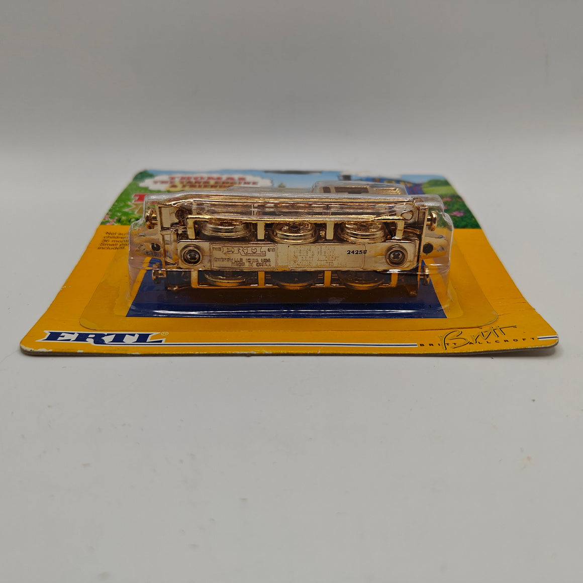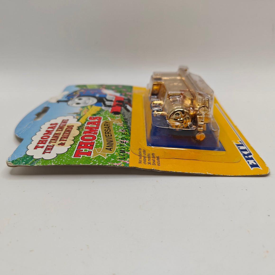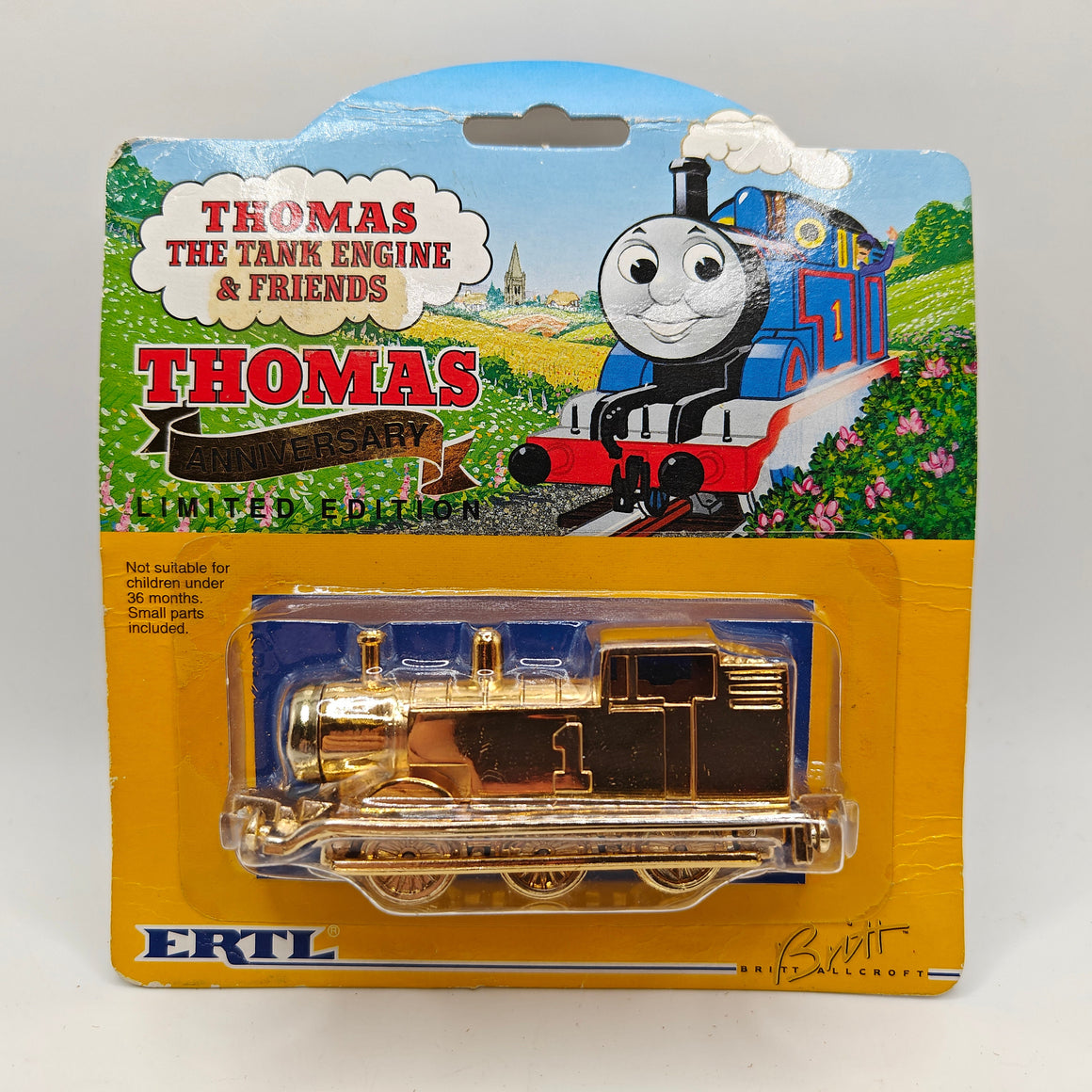 This listing is for the Thomas & Friends ERTL Diecast range's Gold Thomas, new in box. Released in the UK initially in 1985, this line featured 1/64 scale die-cast models and playsets based off of the characters from The Railway Series and its television counterpart. Many characters that were trains, cars, tenders, helicopters and even people were miniaturized and became collectible items as well as toys. Since being discontinued in 2004, the interest in these has only increased, with some characters becoming increasingly hard to find, albeit in good condition.