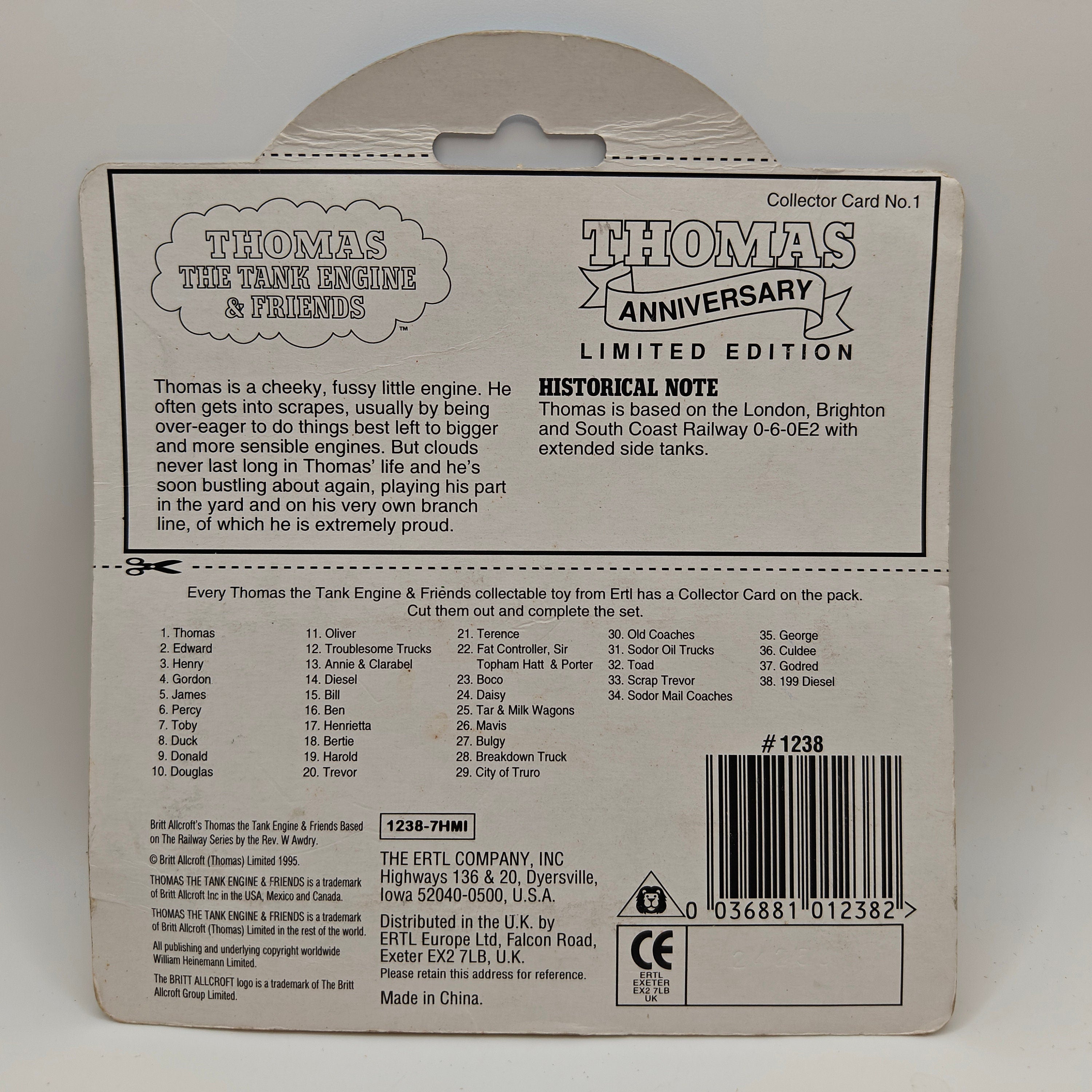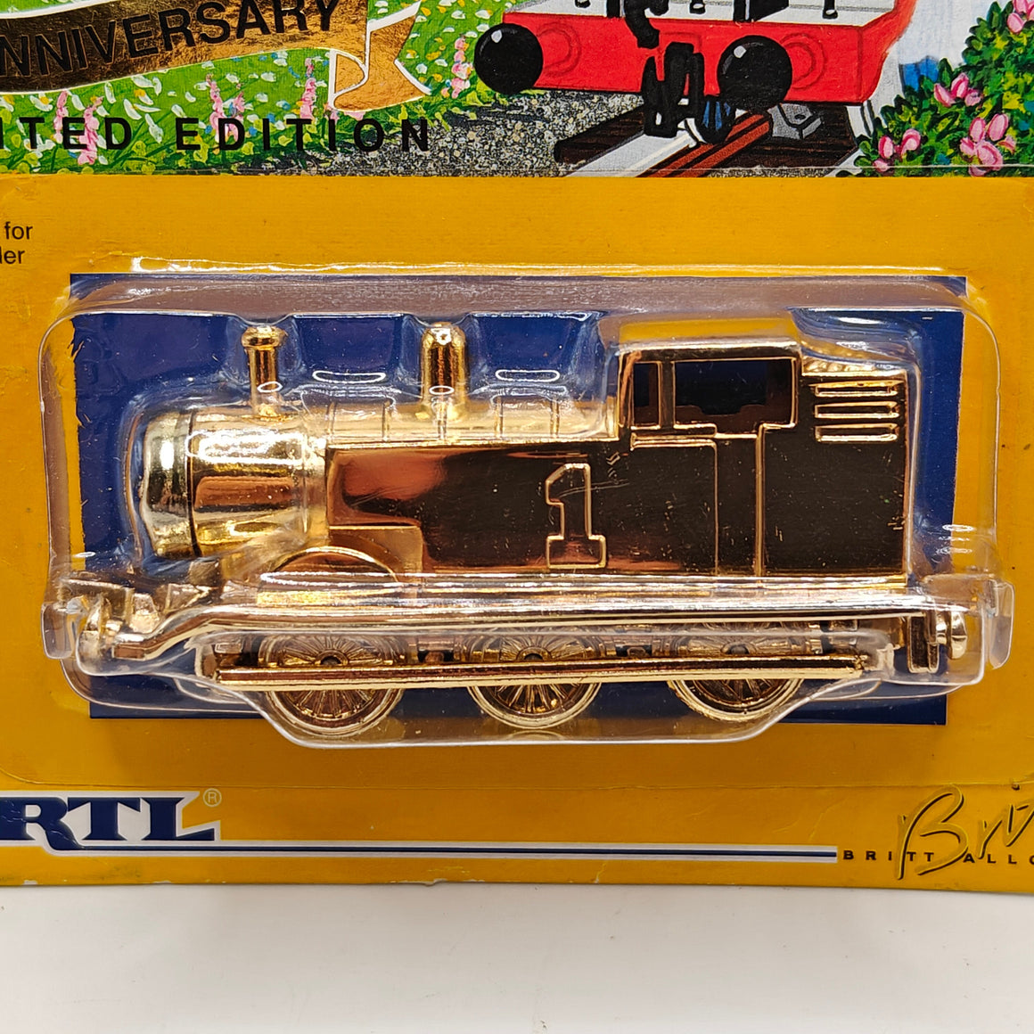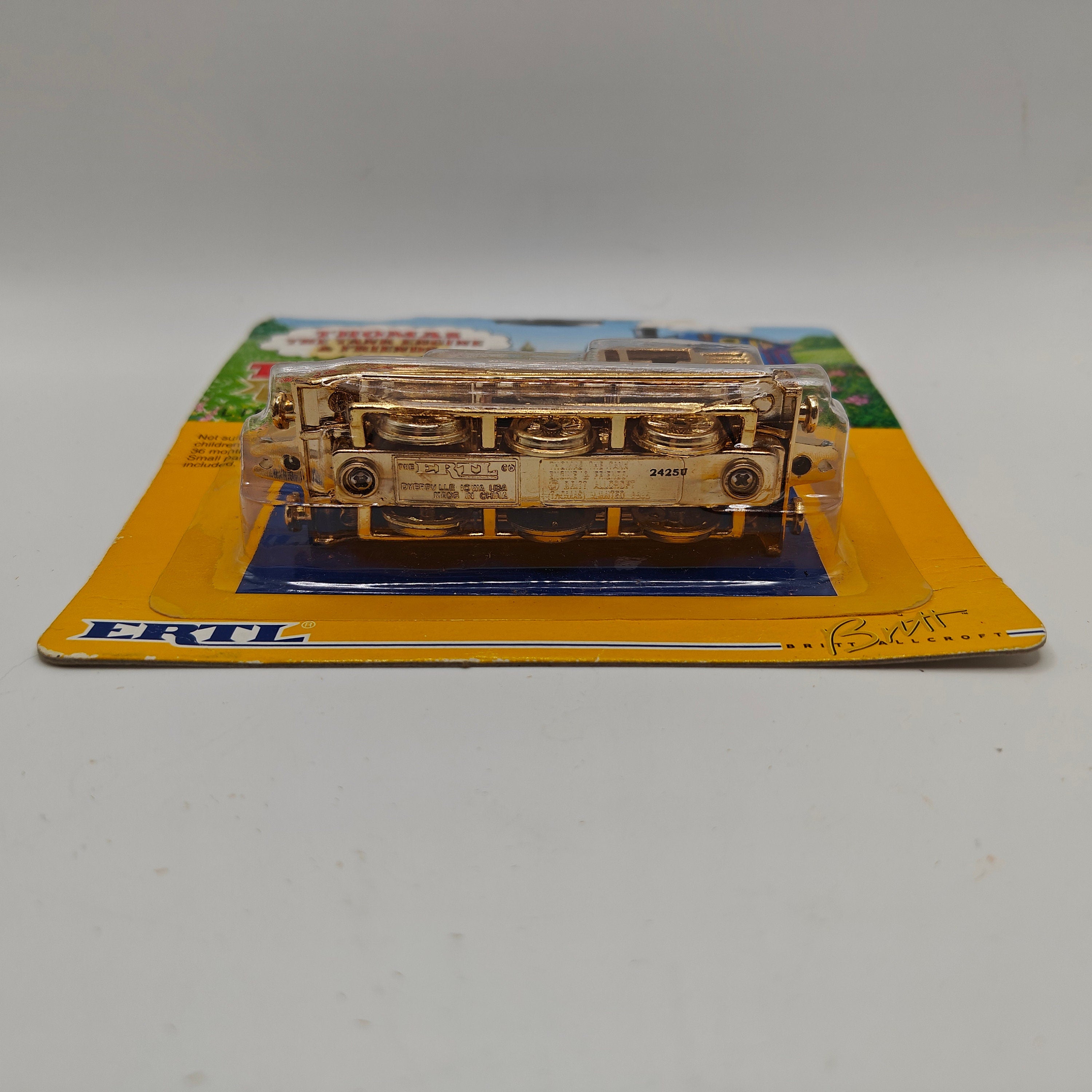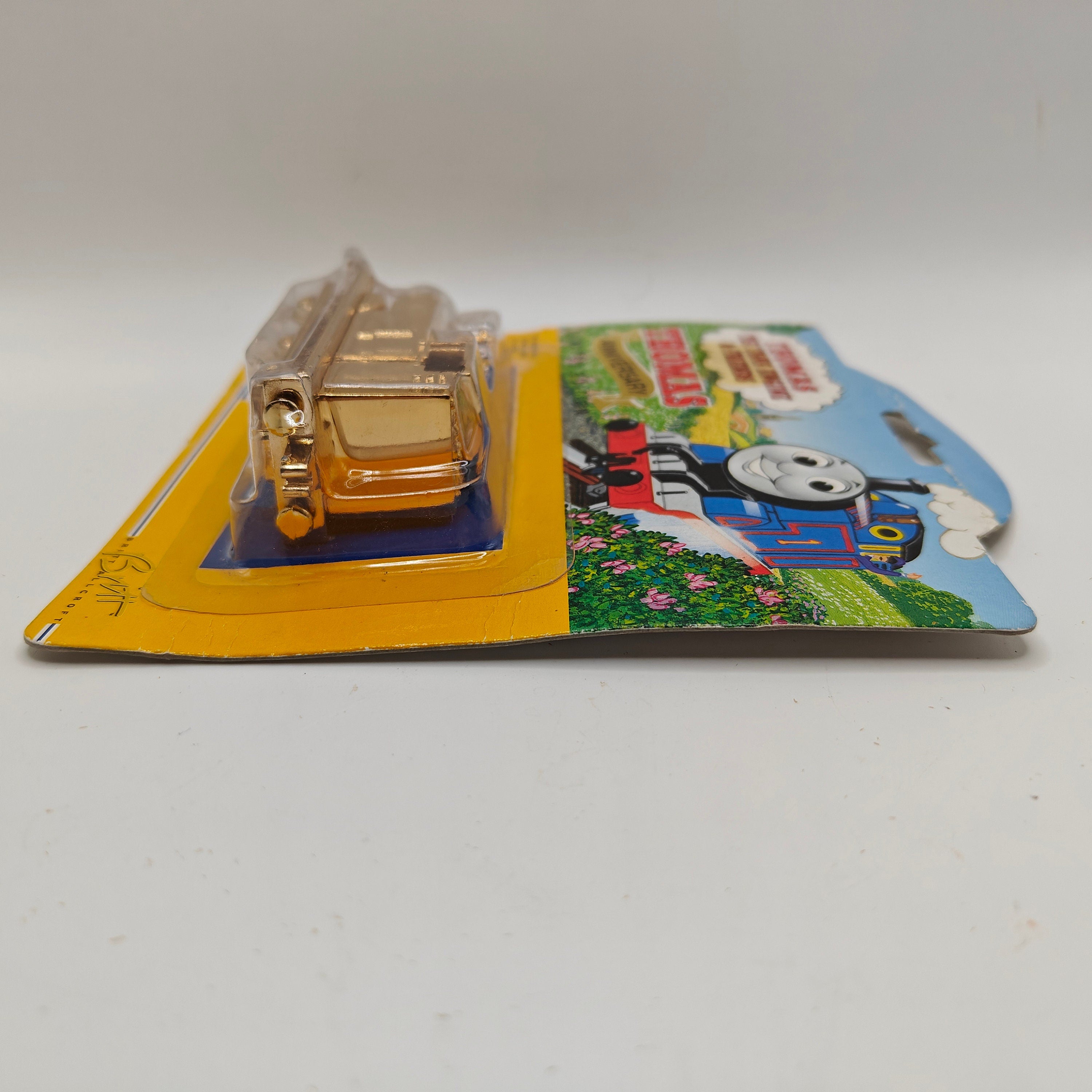 This listing is for the Thomas & Friends ERTL Diecast range's Gold Thomas, new in box. Released in the UK initially in 1985, this line featured 1/64 scale die-cast models and playsets based off of the characters from The Railway Series and its television counterpart. Many characters that were trains, cars, tenders, helicopters and even people were miniaturized and became collectible items as well as toys. Since being discontinued in 2004, the interest in these has only increased, with some characters becoming increasingly hard to find, albeit in good condition.
