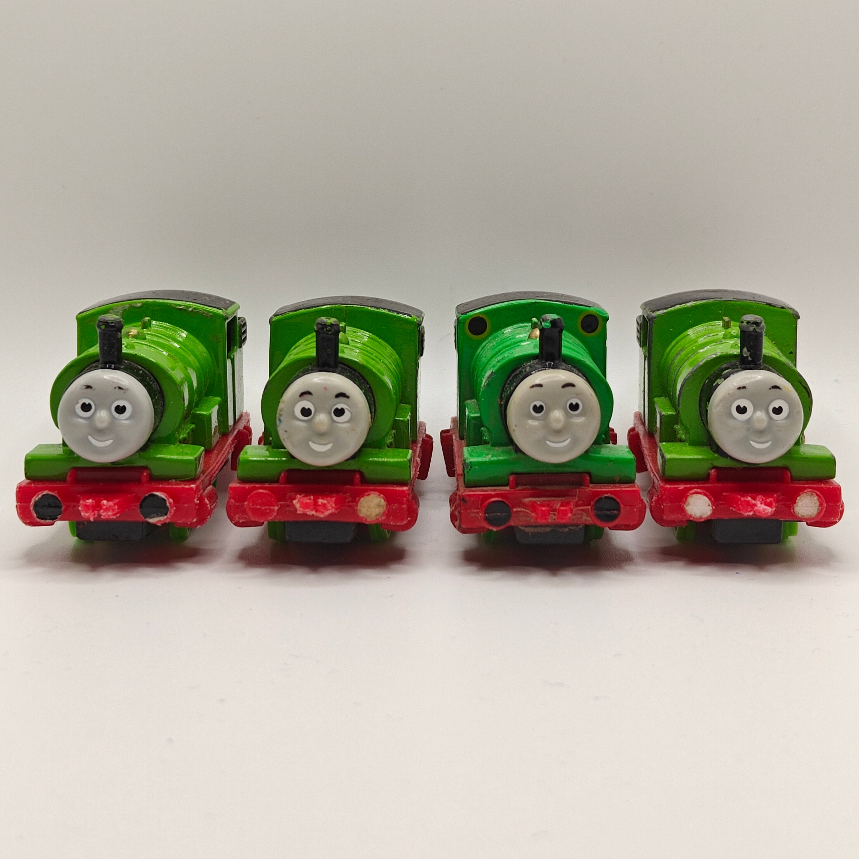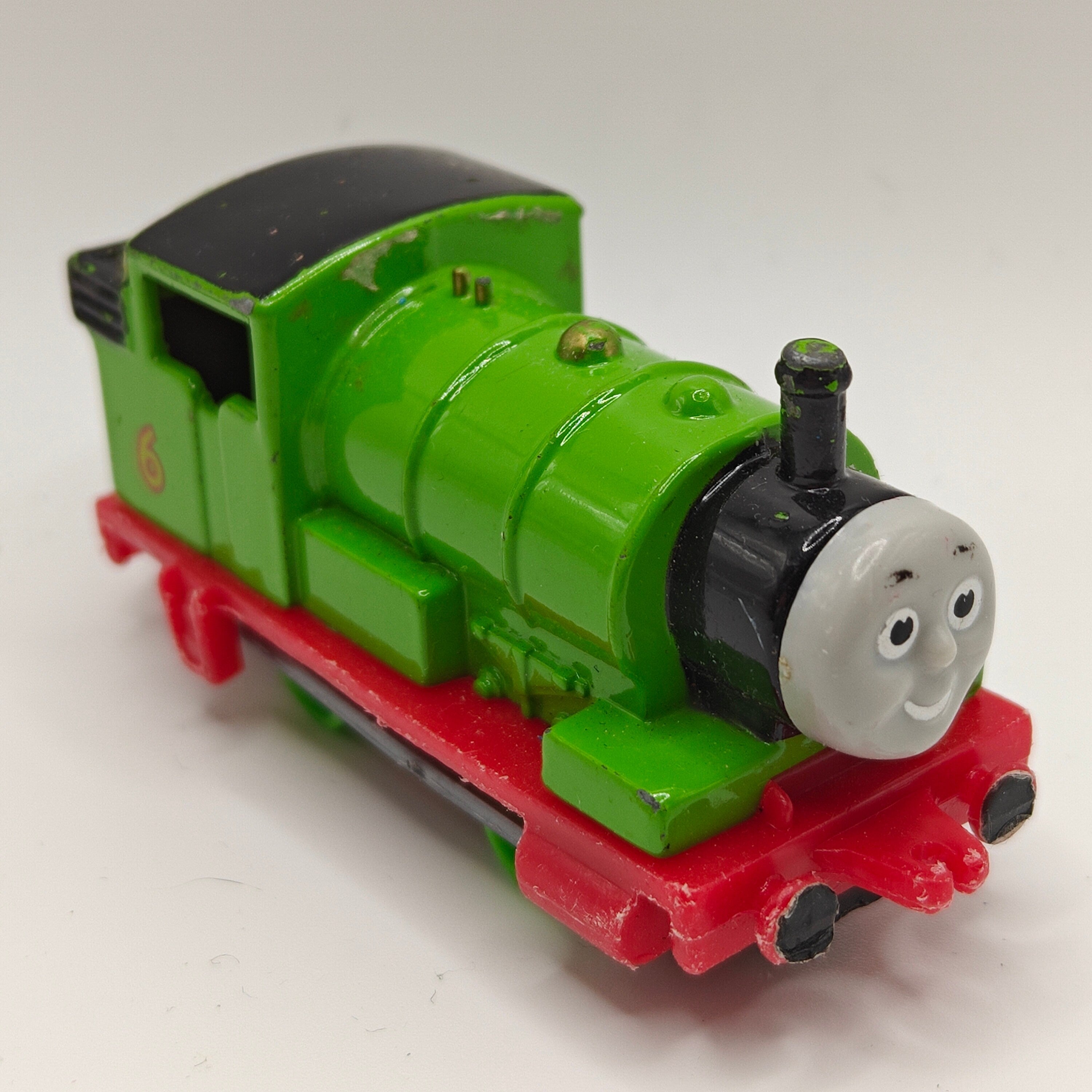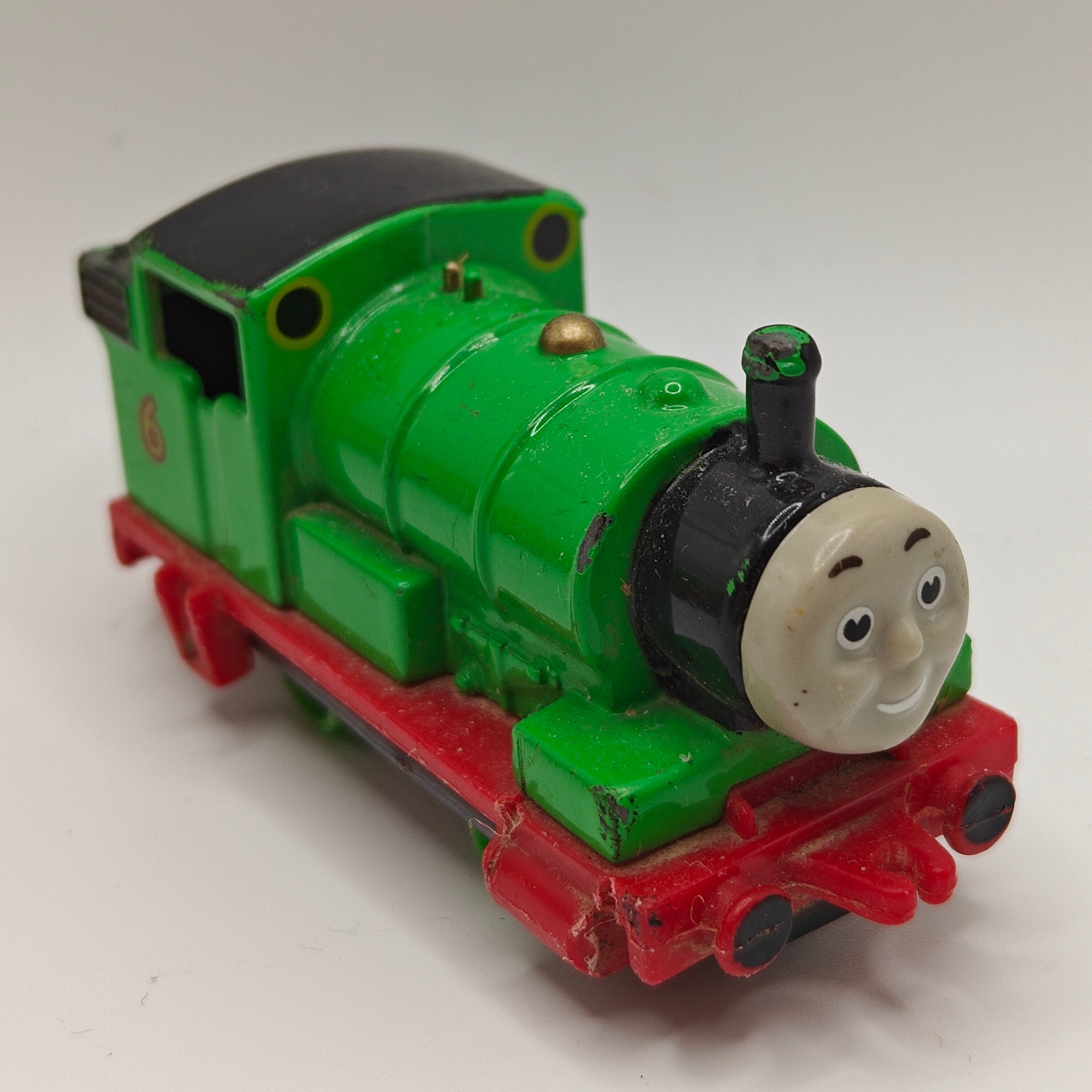 This listing is for the Thomas & Friends ERTL Diecast range's Percy. Released in the UK initially in 1985, this line featured 1/64 scale die-cast models and playsets based off of the characters from The Railway Series and its television counterpart. Many characters that were trains, cars, tenders, helicopters and even people were miniaturized and became collectible items as well as toys. Since being discontinued in 2004, the interest in these has only increased, with some characters becoming increasingly hard to find, albeit in good condition.