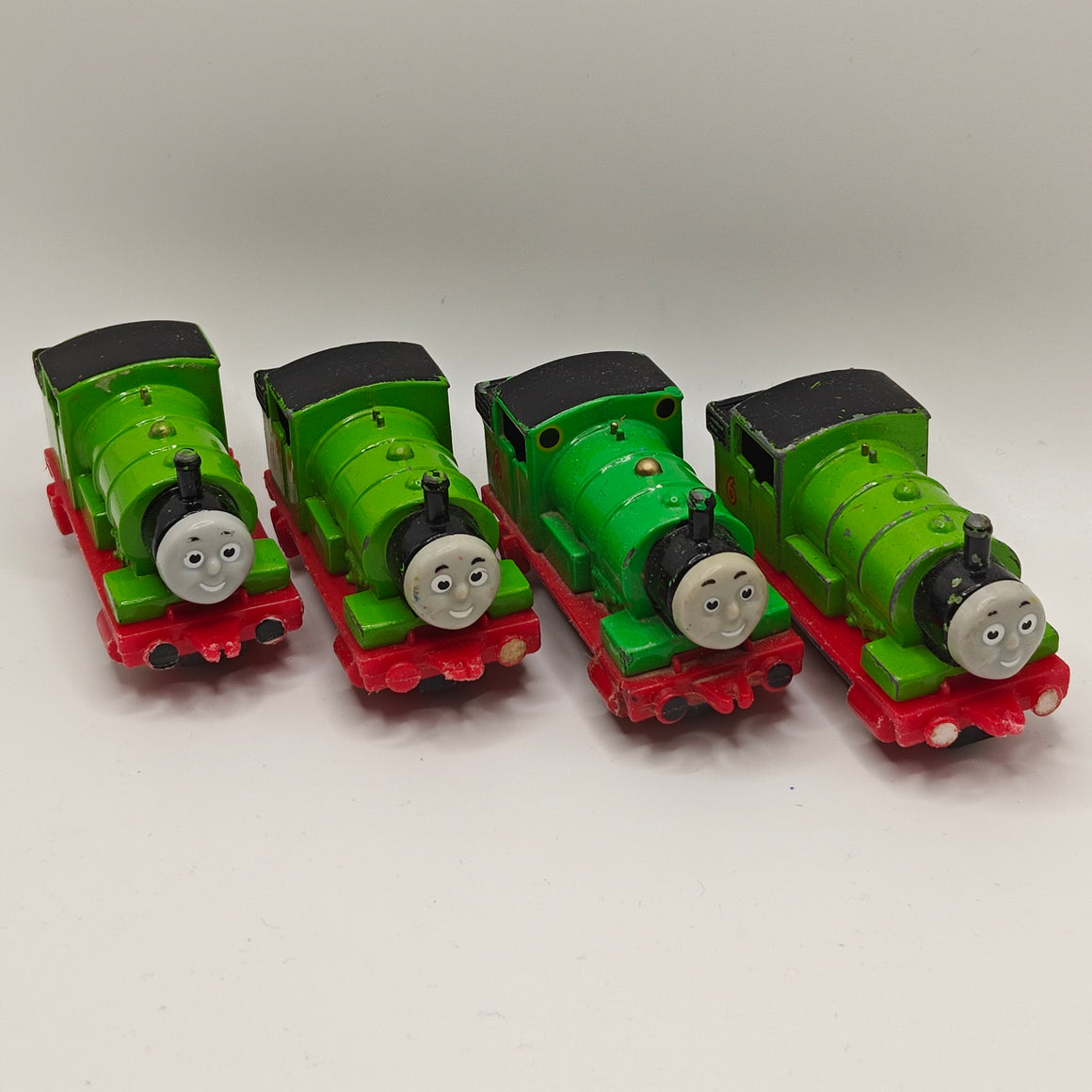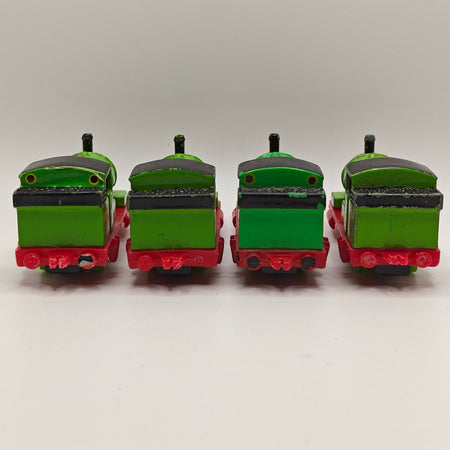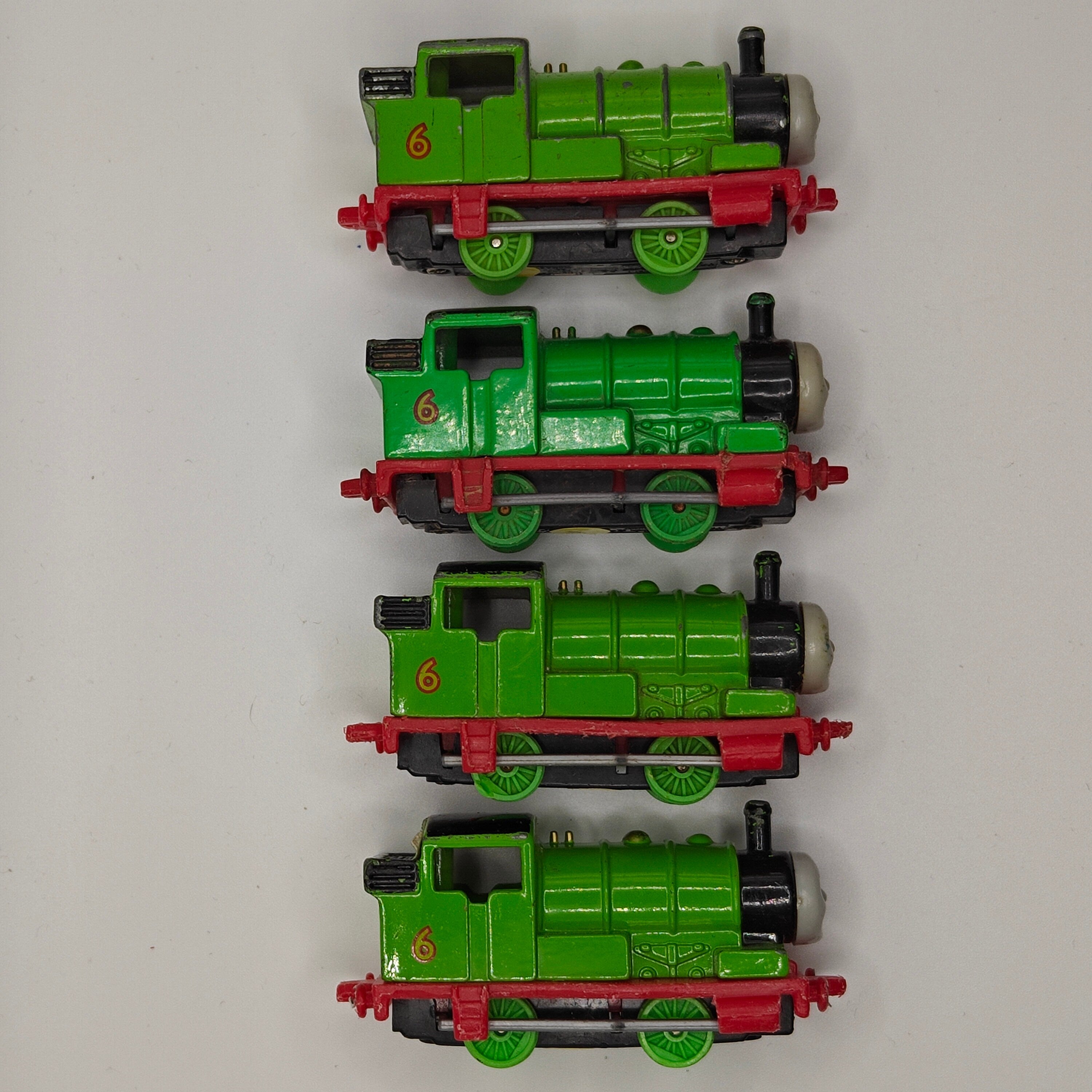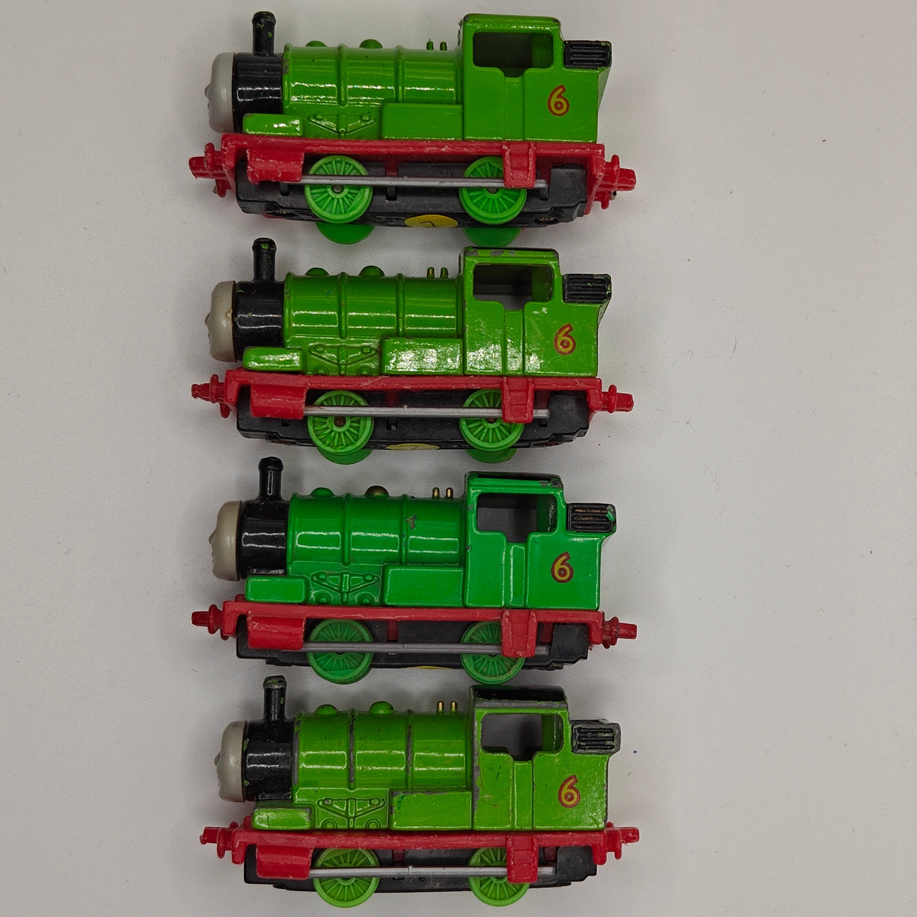 This listing is for the Thomas & Friends ERTL Diecast range's Percy. Released in the UK initially in 1985, this line featured 1/64 scale die-cast models and playsets based off of the characters from The Railway Series and its television counterpart. Many characters that were trains, cars, tenders, helicopters and even people were miniaturized and became collectible items as well as toys. Since being discontinued in 2004, the interest in these has only increased, with some characters becoming increasingly hard to find, albeit in good condition.