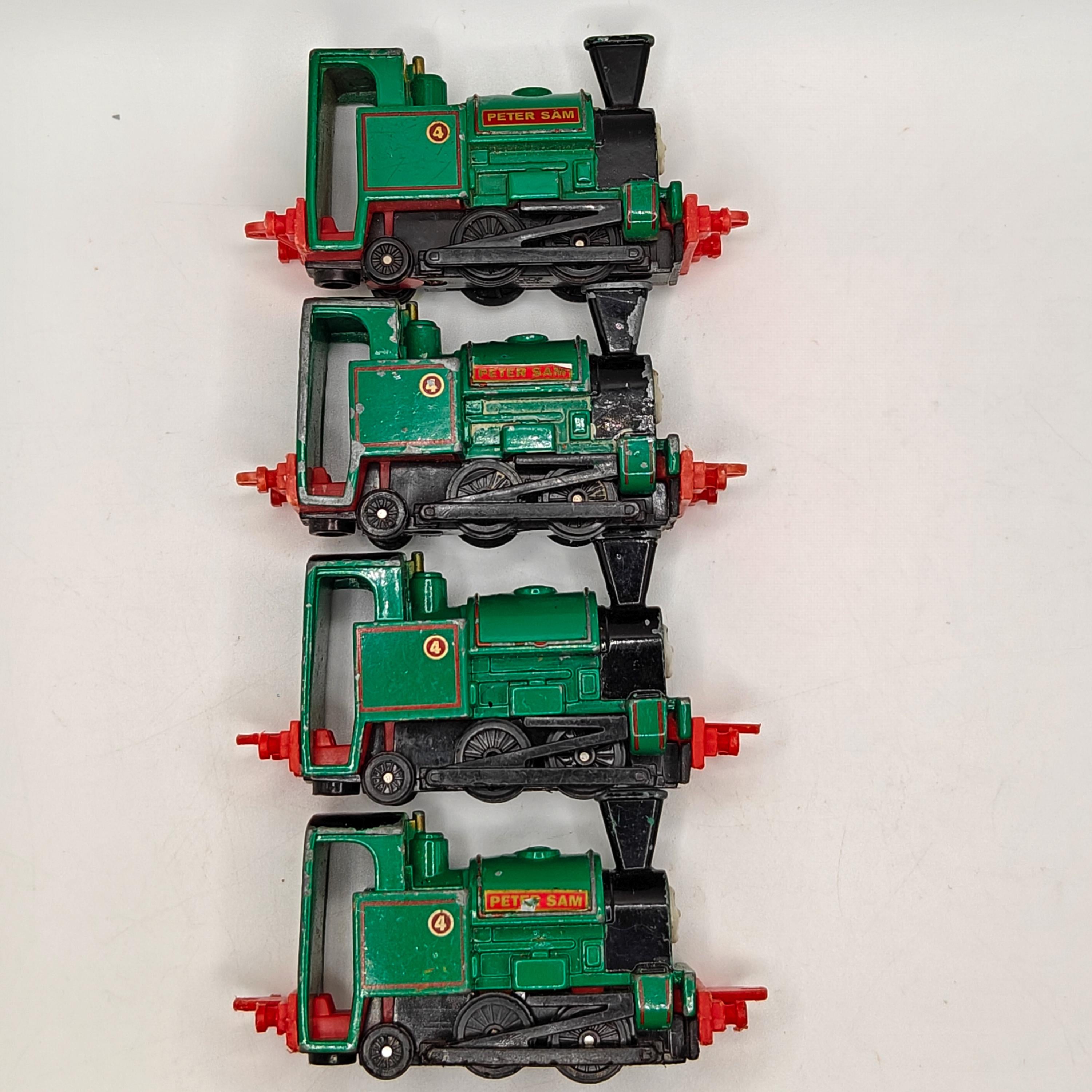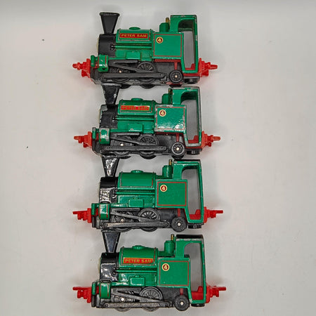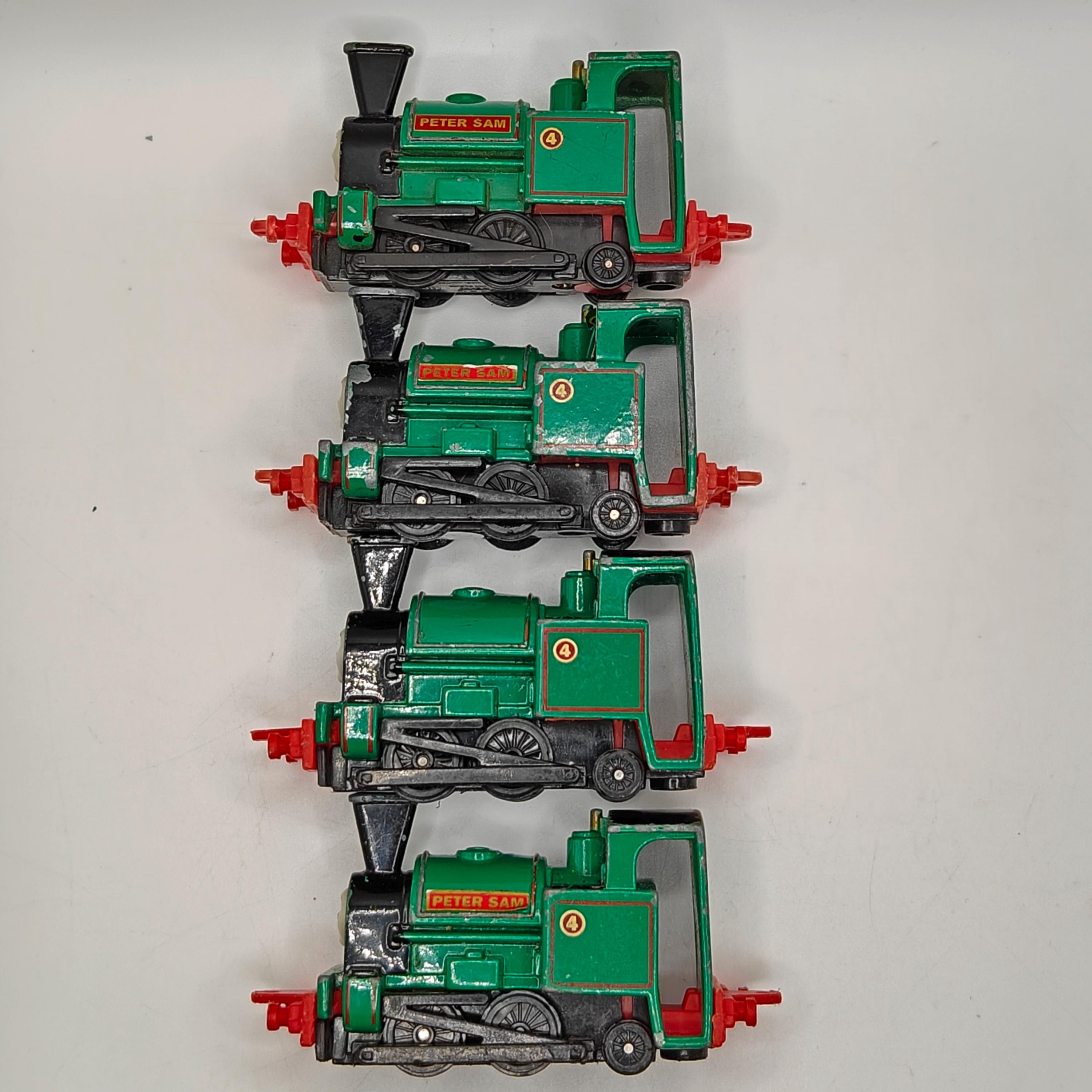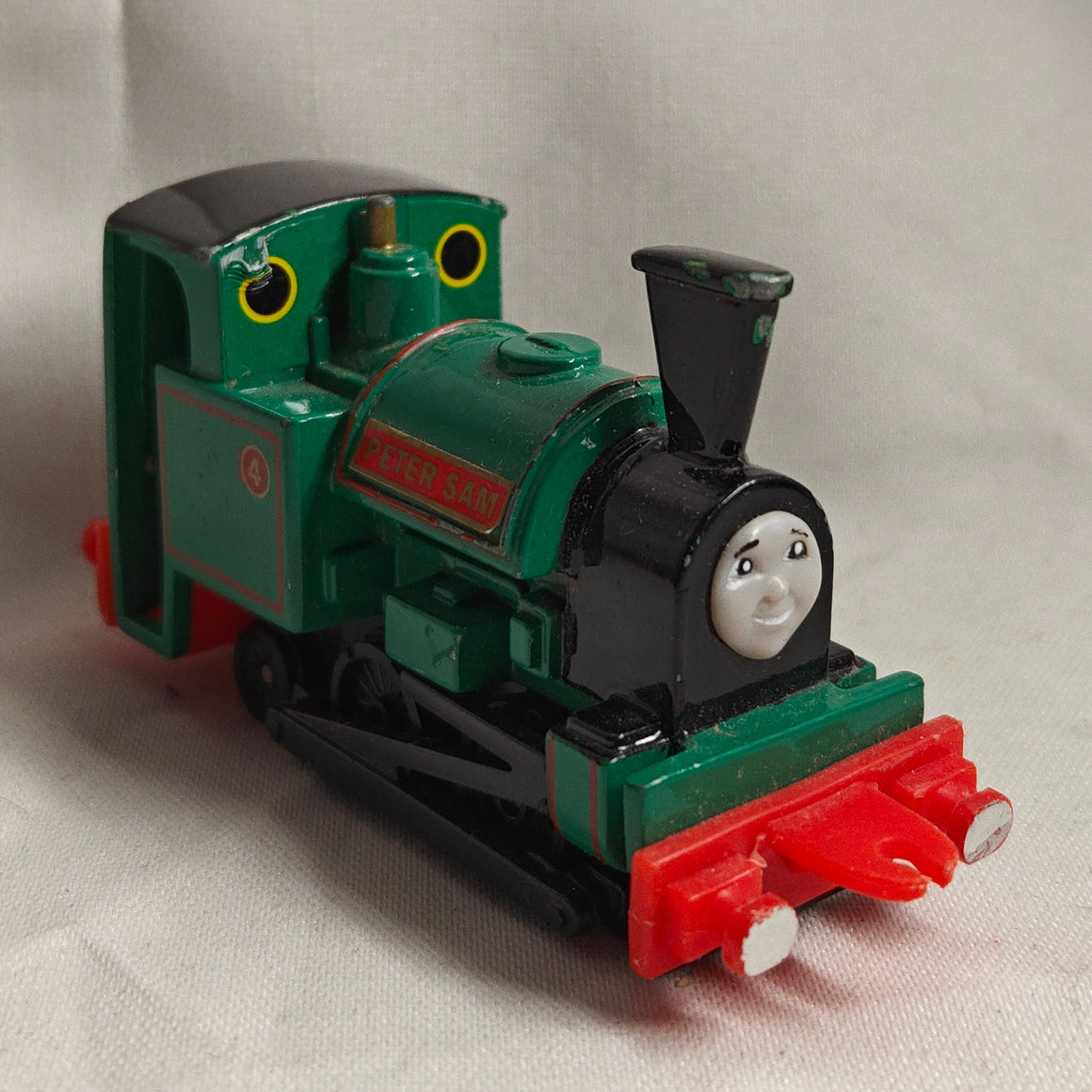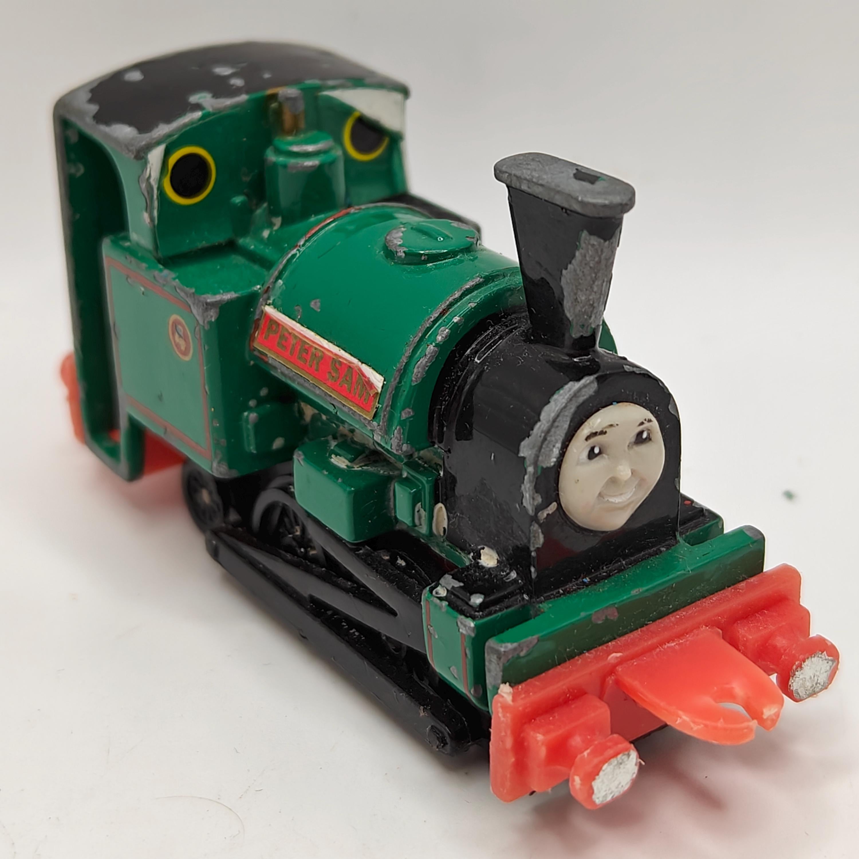This listing is for the Thomas & Friends ERTL Diecast range's Peter Sam. Released in the UK initially in 1985, this line featured 1/64 scale die-cast models and playsets based off of the characters from The Railway Series and its television counterpart. Many characters that were trains, cars, tenders, helicopters and even people were miniaturized and became collectible items as well as toys. Since being discontinued in 2004, the interest in these has only increased, with some characters becoming increasingly hard to find, albeit in good condition.