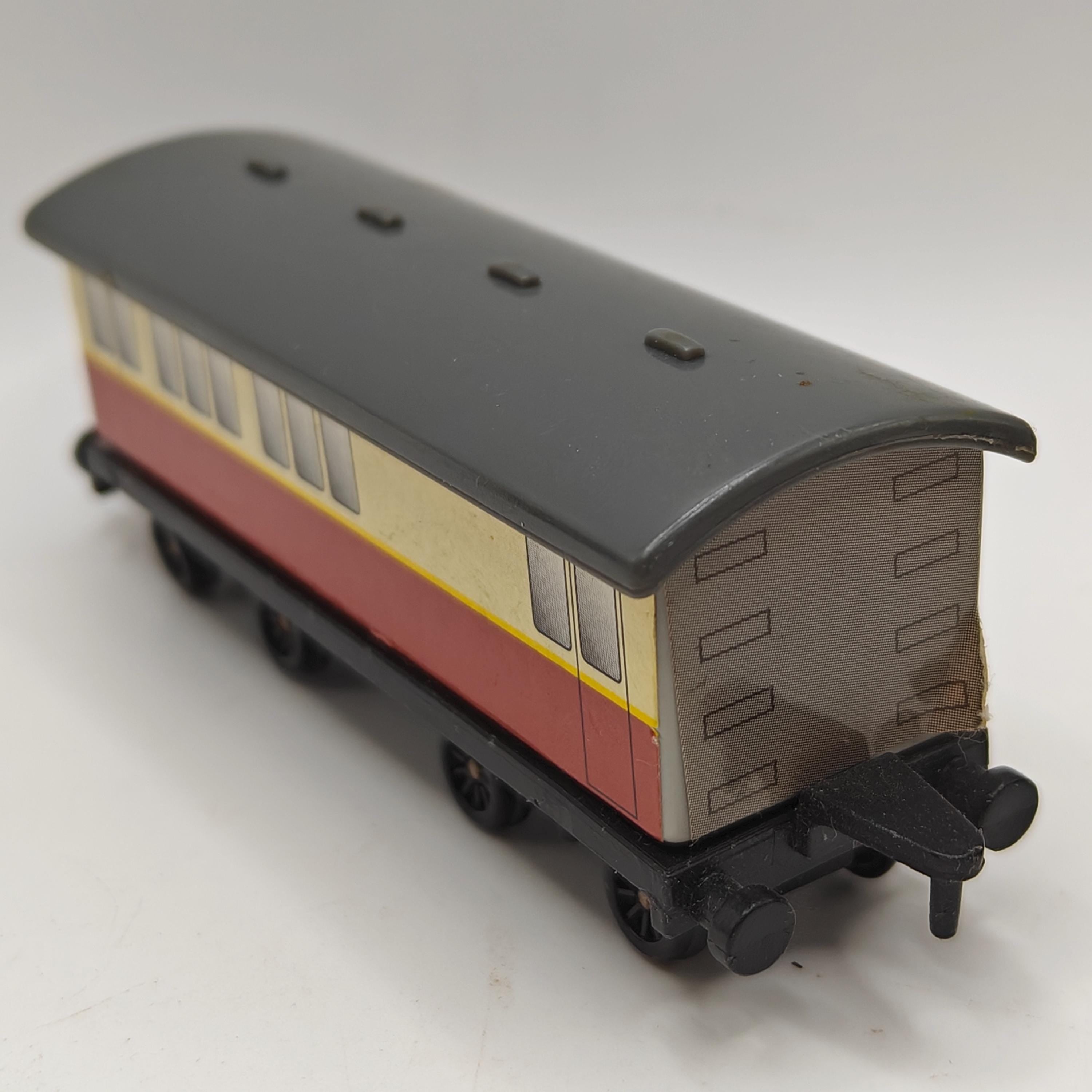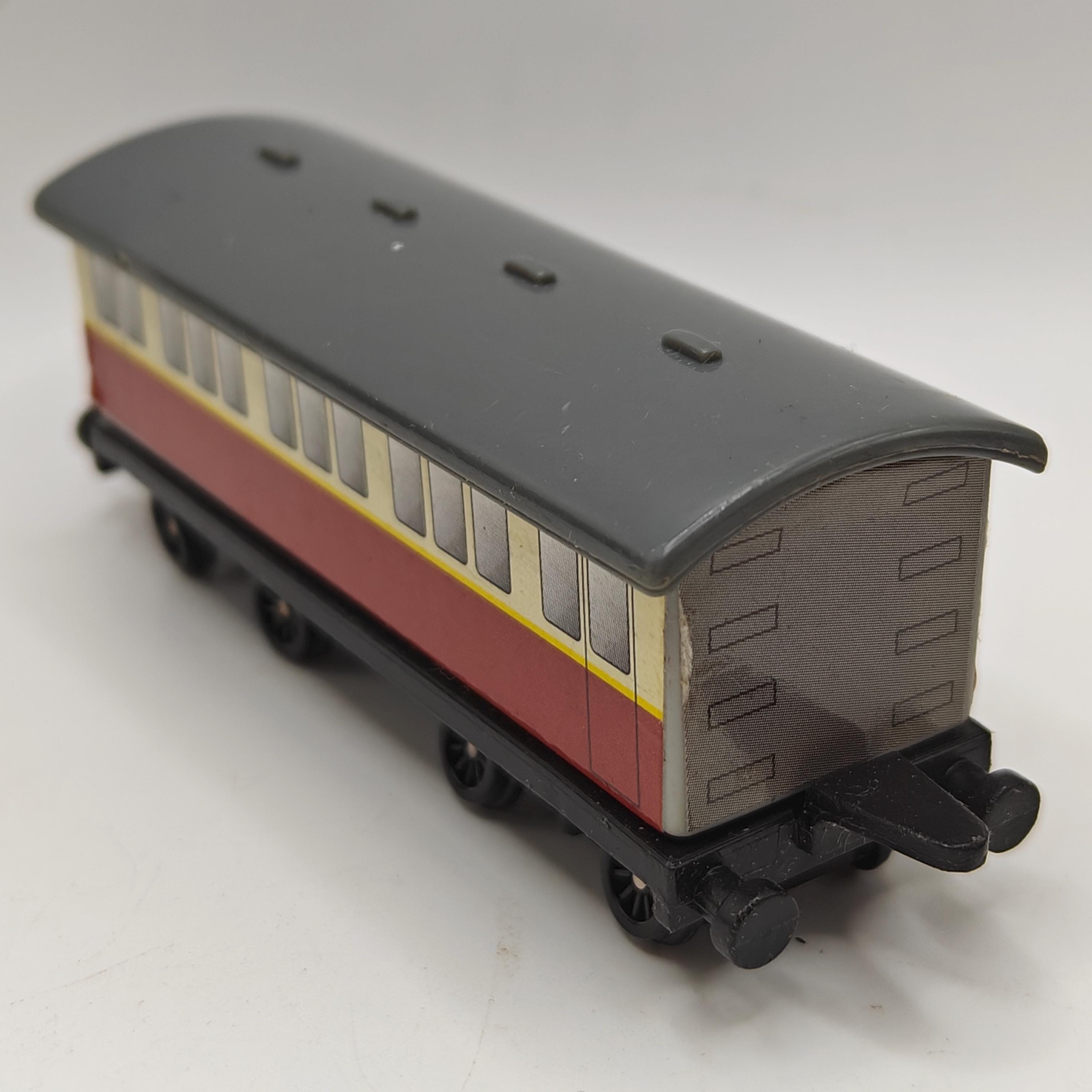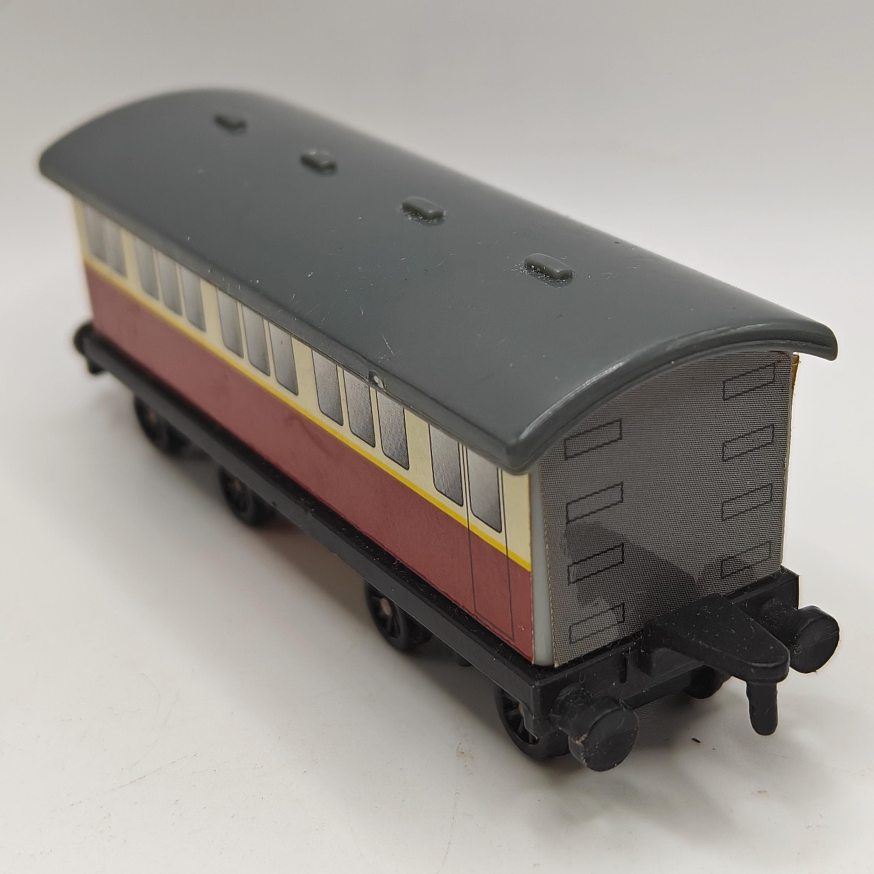 This listing is for the Thomas & Friends ERTL Diecast range's Red Express Coach. Released in the UK initially in 1985, this line featured 1/64 scale die-cast models and playsets based off of the characters from The Railway Series and its television counterpart. Many characters that were trains, cars, tenders, helicopters and even people were miniaturized and became collectible items as well as toys. Since being discontinued in 2004, the interest in these has only increased, with some characters becoming increasingly hard to find, albeit in good condition.