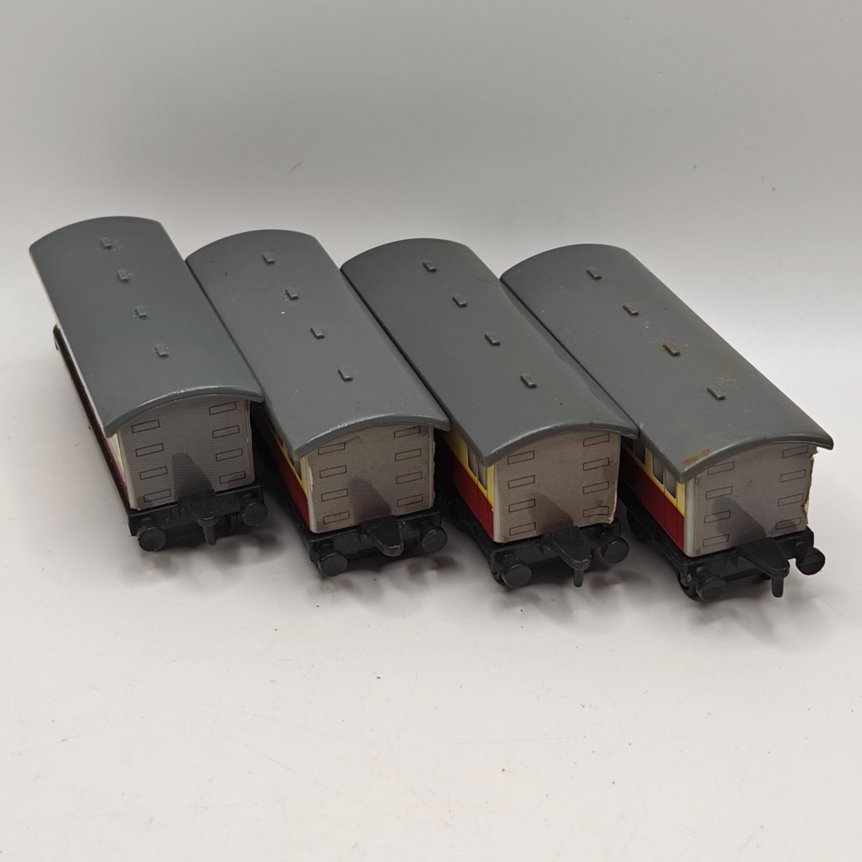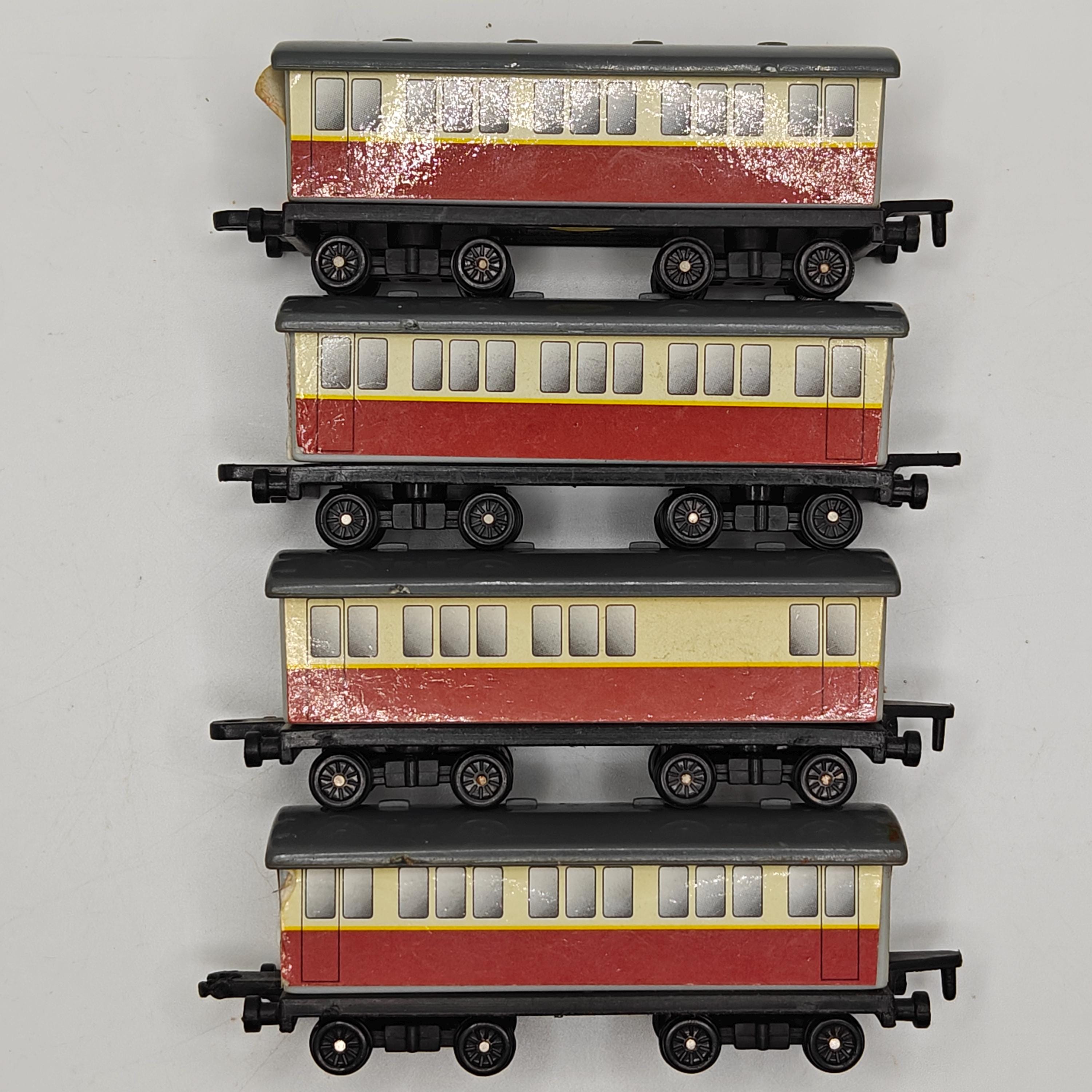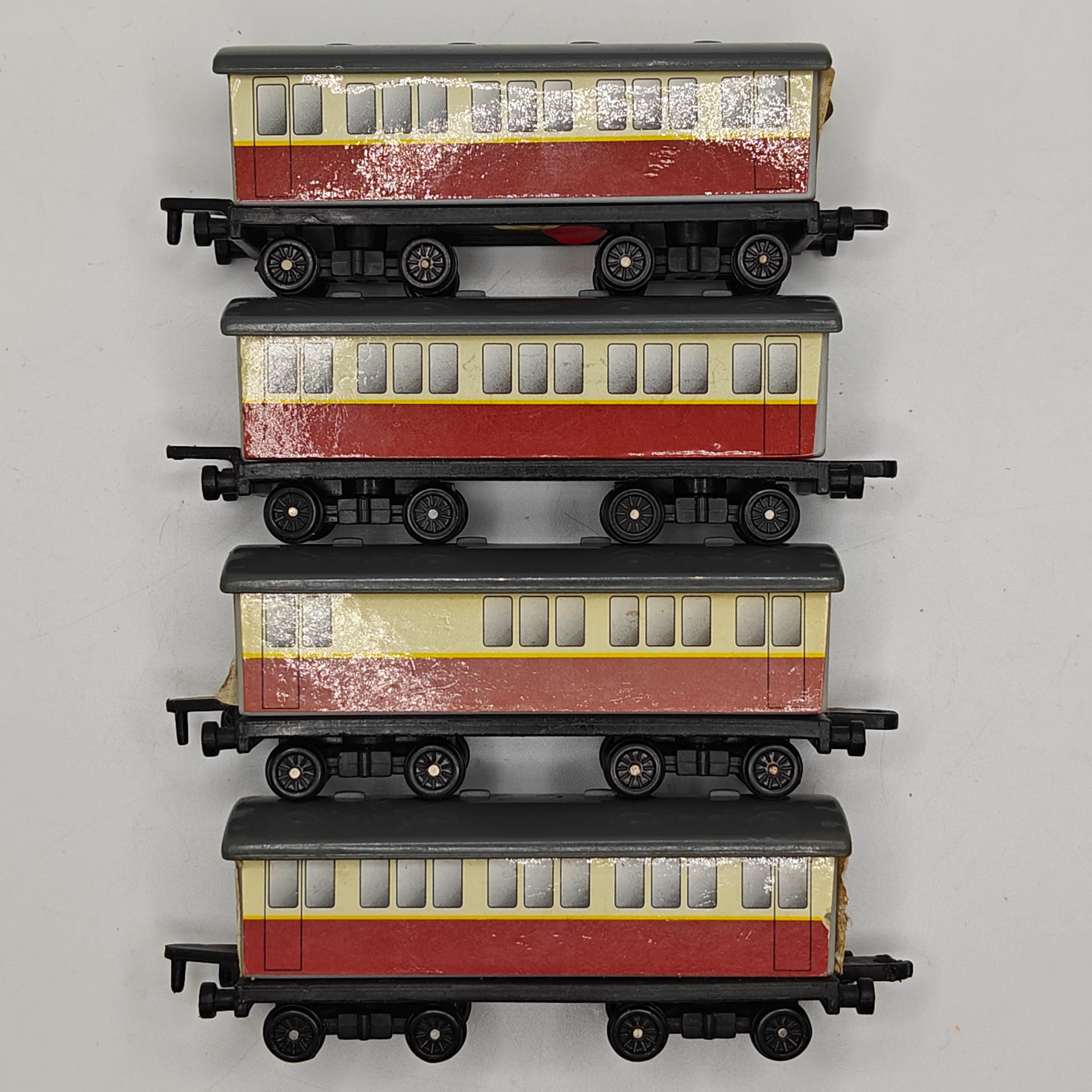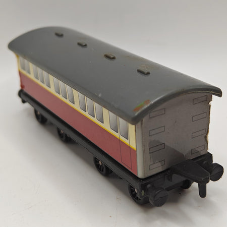 This listing is for the Thomas & Friends ERTL Diecast range's Red Express Coach. Released in the UK initially in 1985, this line featured 1/64 scale die-cast models and playsets based off of the characters from The Railway Series and its television counterpart. Many characters that were trains, cars, tenders, helicopters and even people were miniaturized and became collectible items as well as toys. Since being discontinued in 2004, the interest in these has only increased, with some characters becoming increasingly hard to find, albeit in good condition.