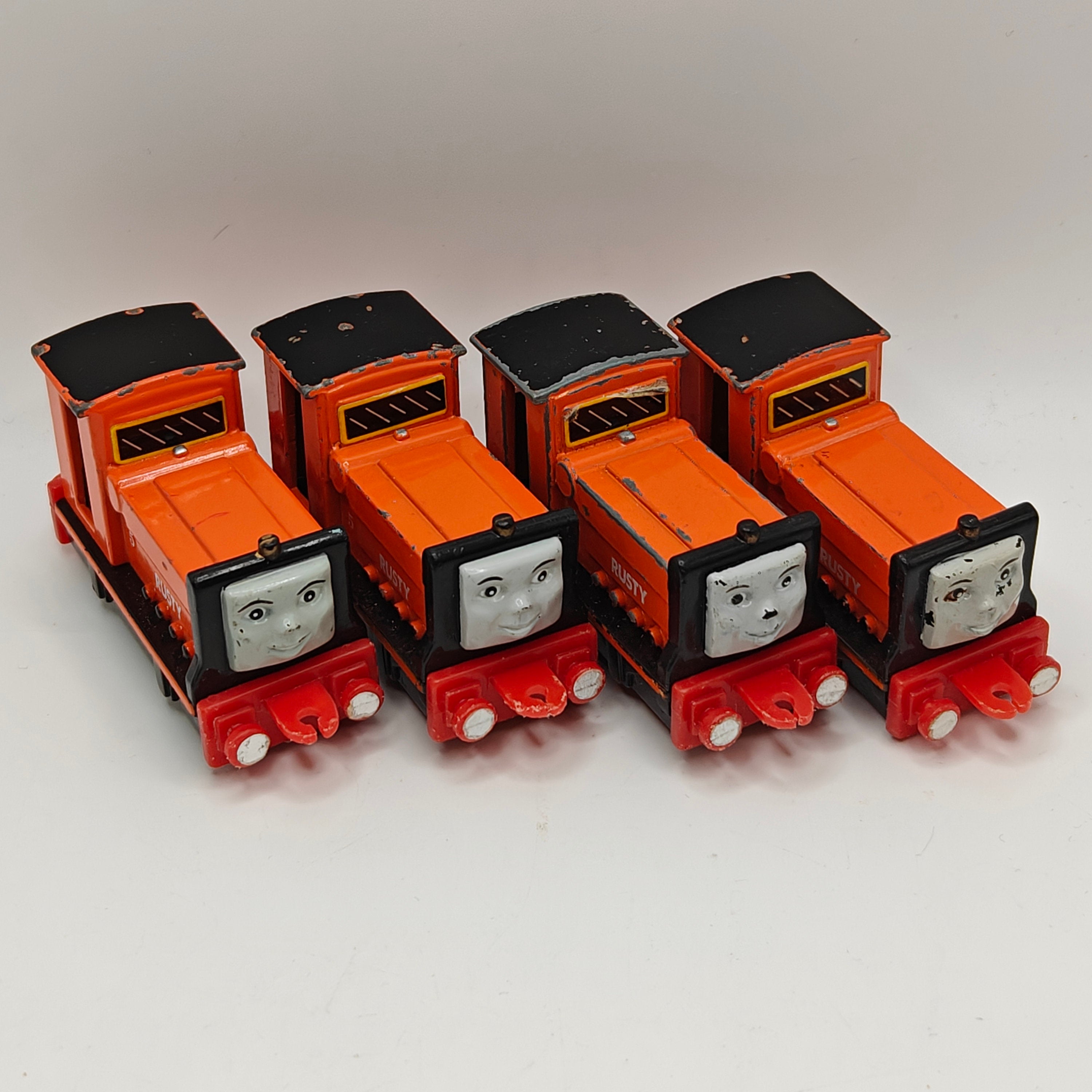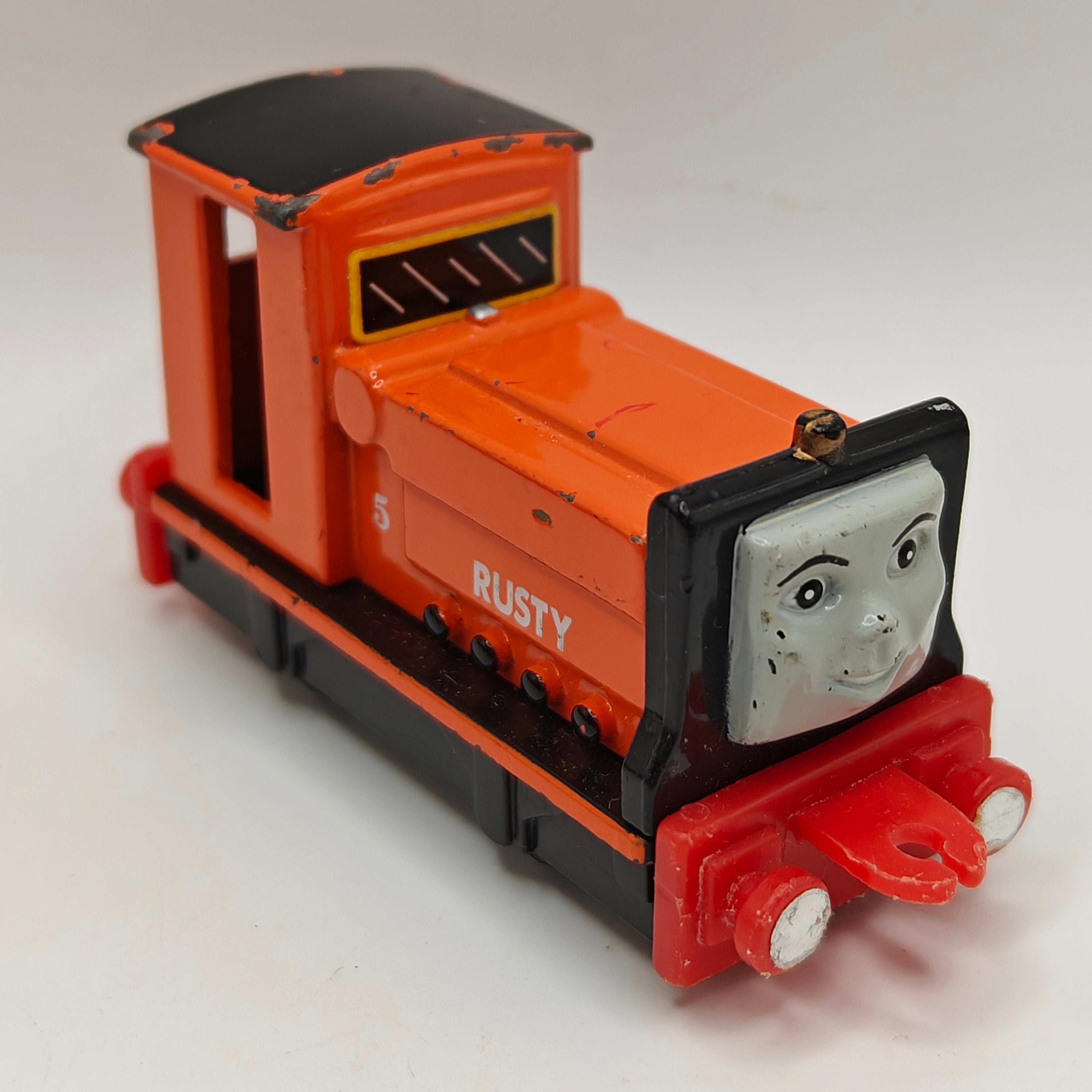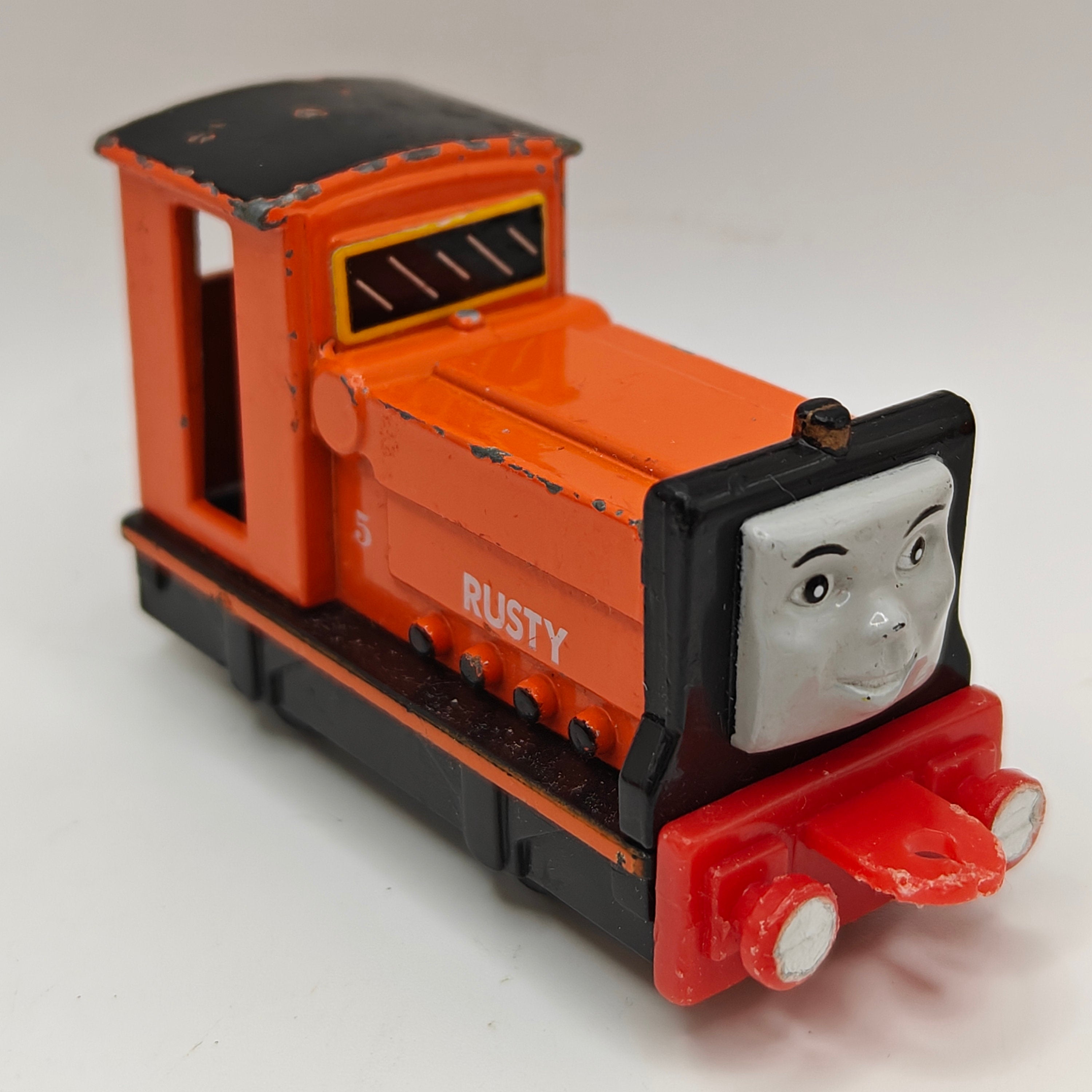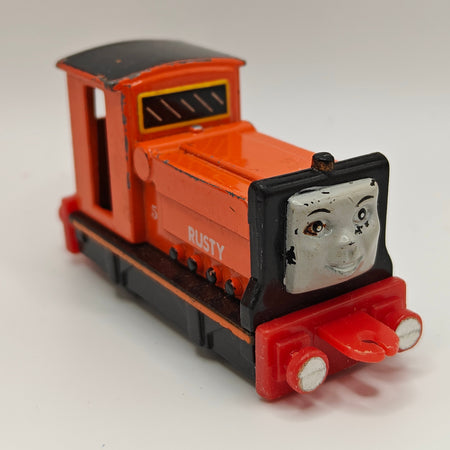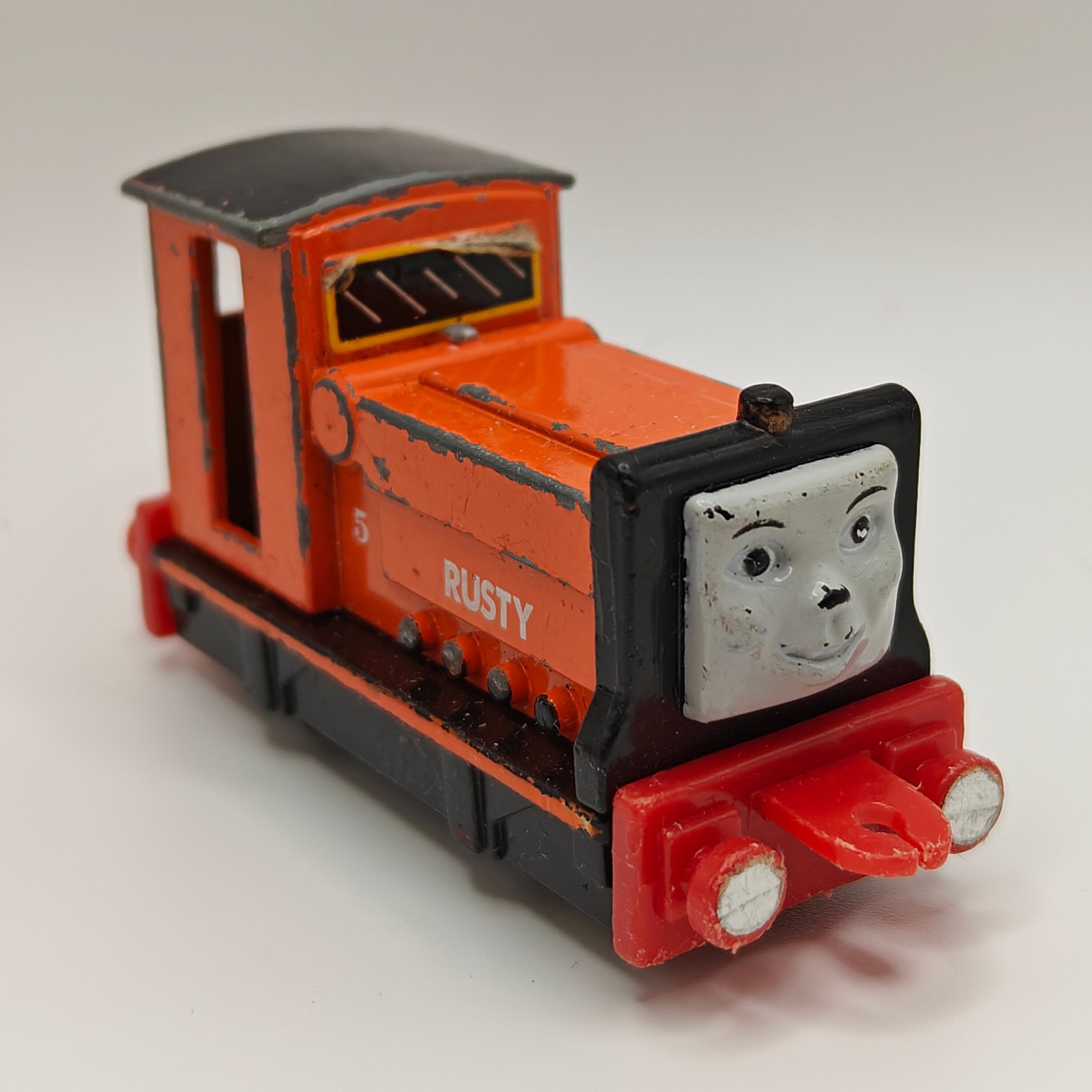 This listing is for the Thomas & Friends ERTL Diecast range's Rusty. Released in the UK initially in 1985, this line featured 1/64 scale die-cast models and playsets based off of the characters from The Railway Series and its television counterpart. Many characters that were trains, cars, tenders, helicopters and even people were miniaturized and became collectible items as well as toys. Since being discontinued in 2004, the interest in these has only increased, with some characters becoming increasingly hard to find, albeit in good condition.