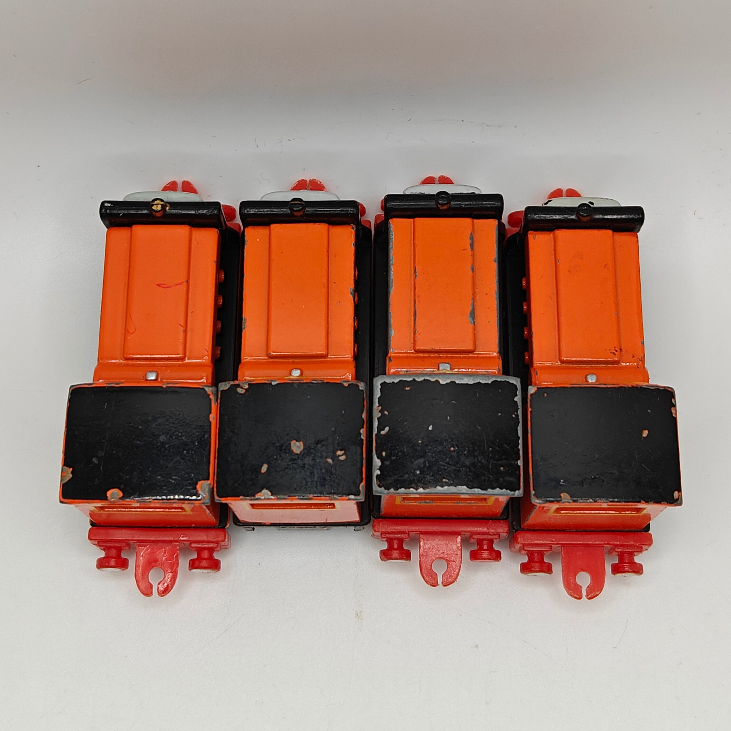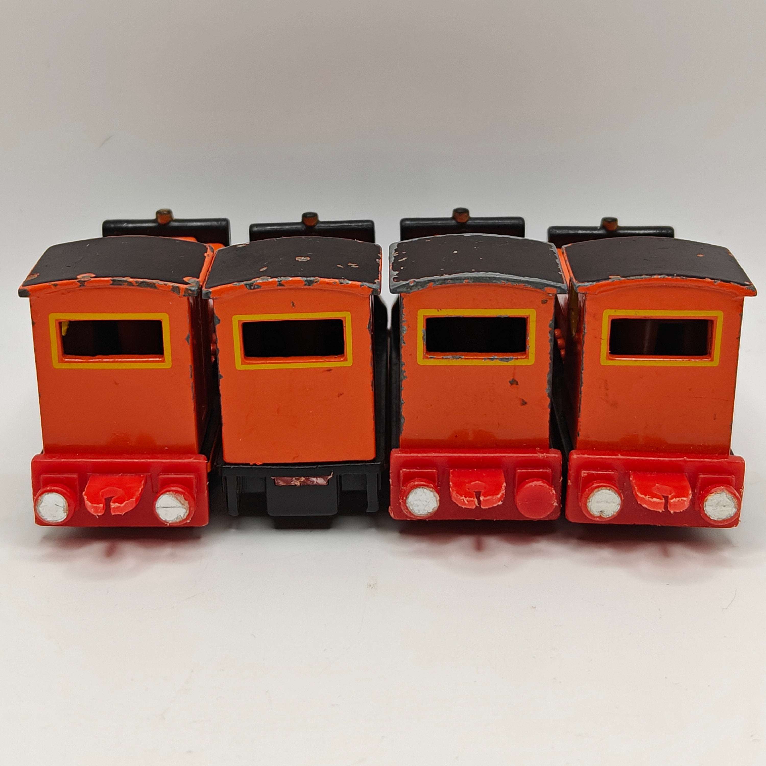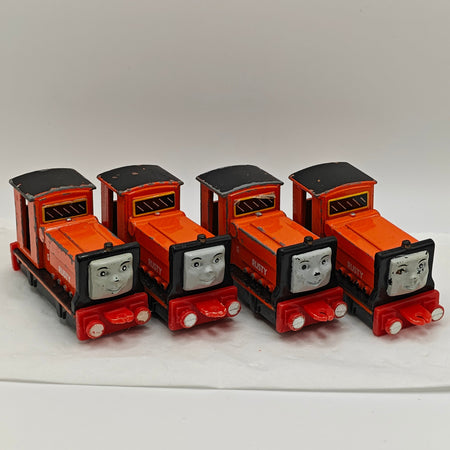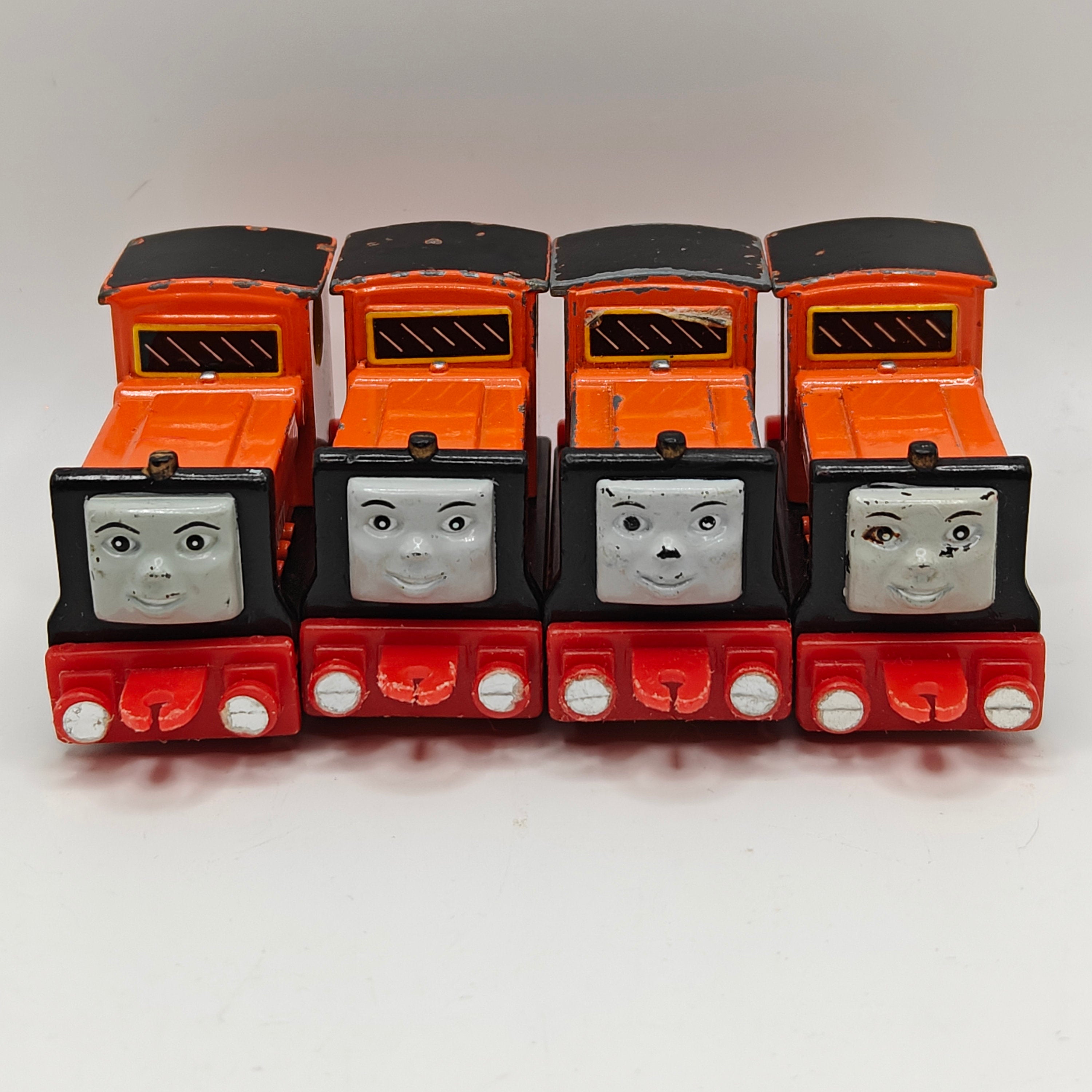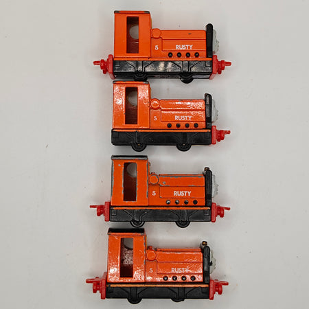 This listing is for the Thomas & Friends ERTL Diecast range's Rusty. Released in the UK initially in 1985, this line featured 1/64 scale die-cast models and playsets based off of the characters from The Railway Series and its television counterpart. Many characters that were trains, cars, tenders, helicopters and even people were miniaturized and became collectible items as well as toys. Since being discontinued in 2004, the interest in these has only increased, with some characters becoming increasingly hard to find, albeit in good condition.