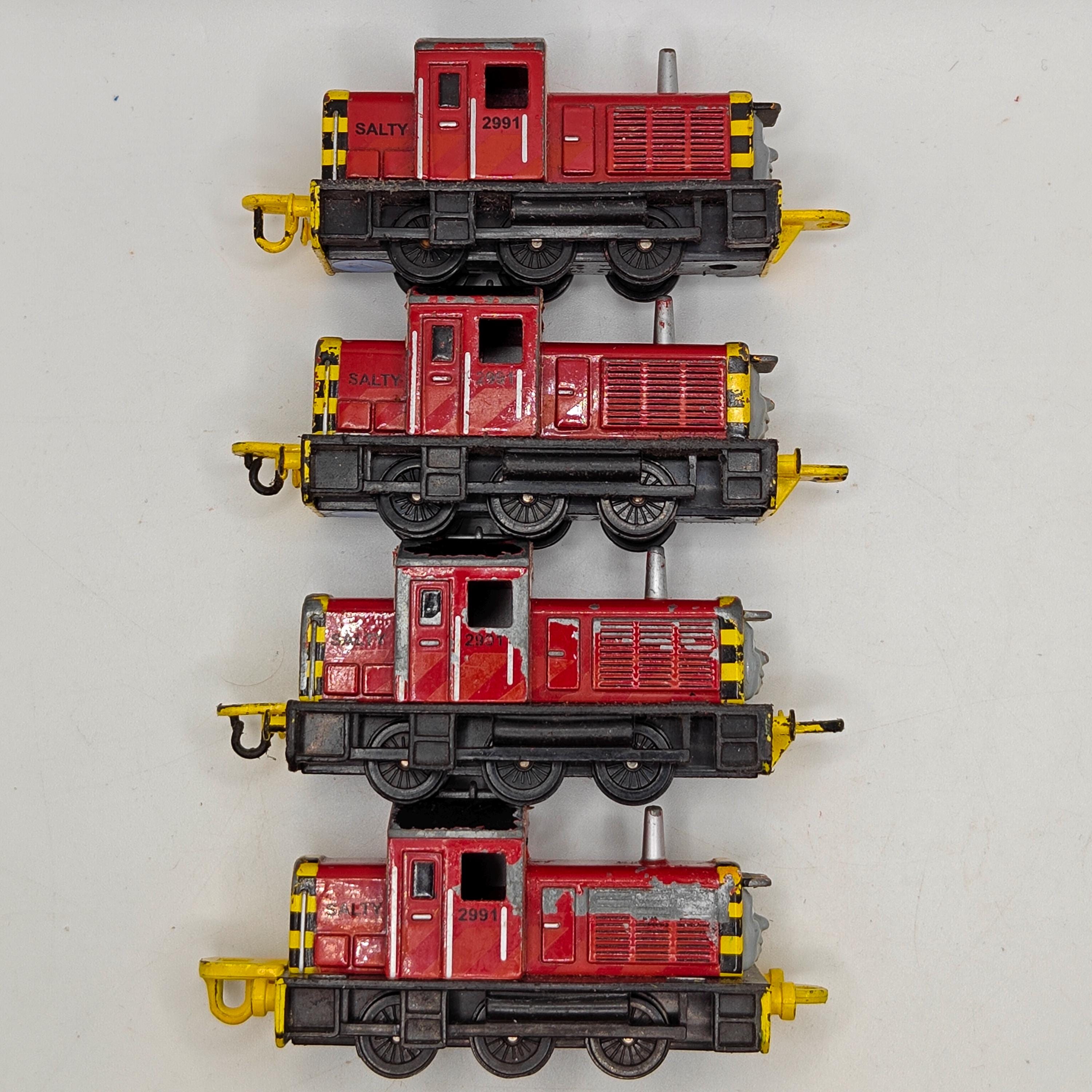 This listing is for the Thomas & Friends ERTL Diecast range's Salty. Released in the UK initially in 1985, this line featured 1/64 scale die-cast models and playsets based off of the characters from The Railway Series and its television counterpart. Many characters that were trains, cars, tenders, helicopters and even people were miniaturized and became collectible items as well as toys. Since being discontinued in 2004, the interest in these has only increased, with some characters becoming increasingly hard to find, albeit in good condition.