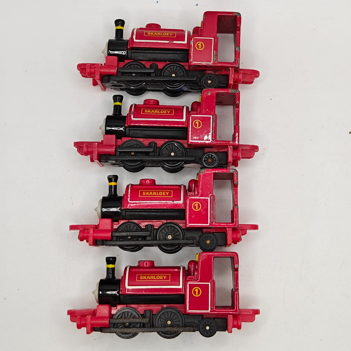 This listing is for the Thomas & Friends ERTL Diecast range's Skarloey. Released in the UK initially in 1985, this line featured 1/64 scale die-cast models and playsets based off of the characters from The Railway Series and its television counterpart. Many characters that were trains, cars, tenders, helicopters and even people were miniaturized and became collectible items as well as toys. Since being discontinued in 2004, the interest in these has only increased, with some characters becoming increasingly hard to find, albeit in good condition.
