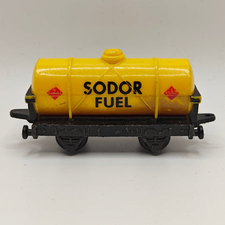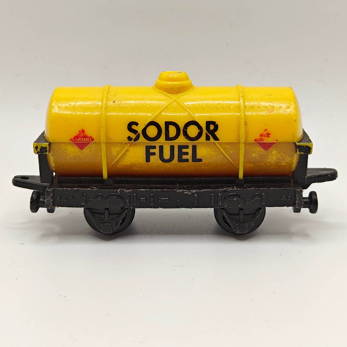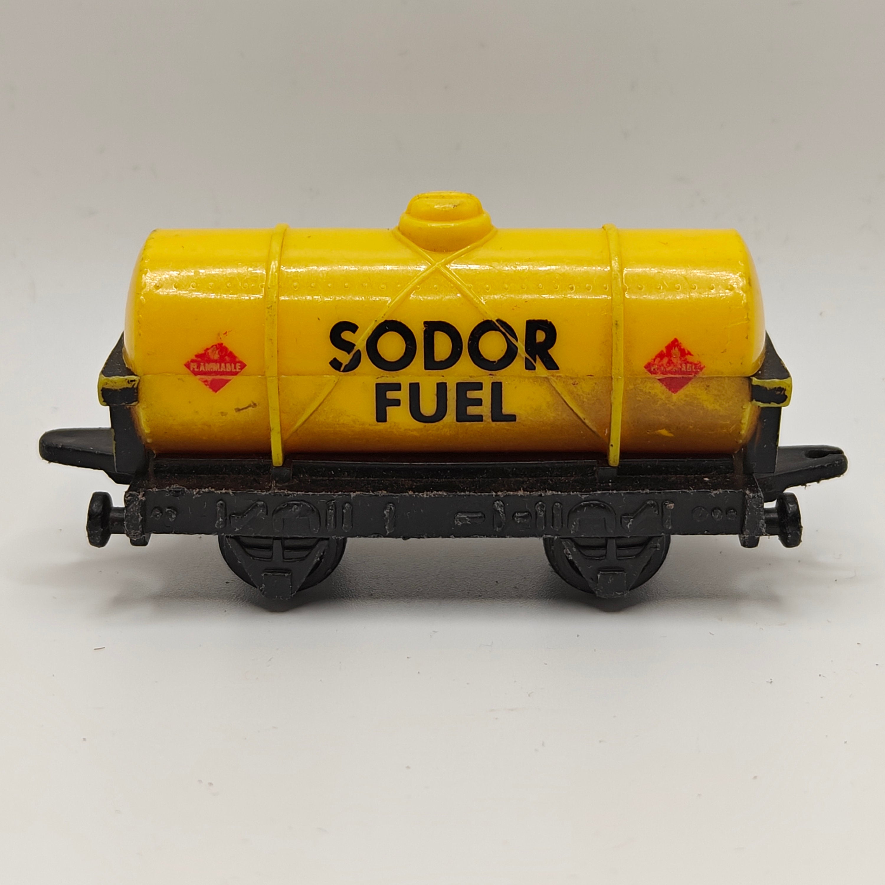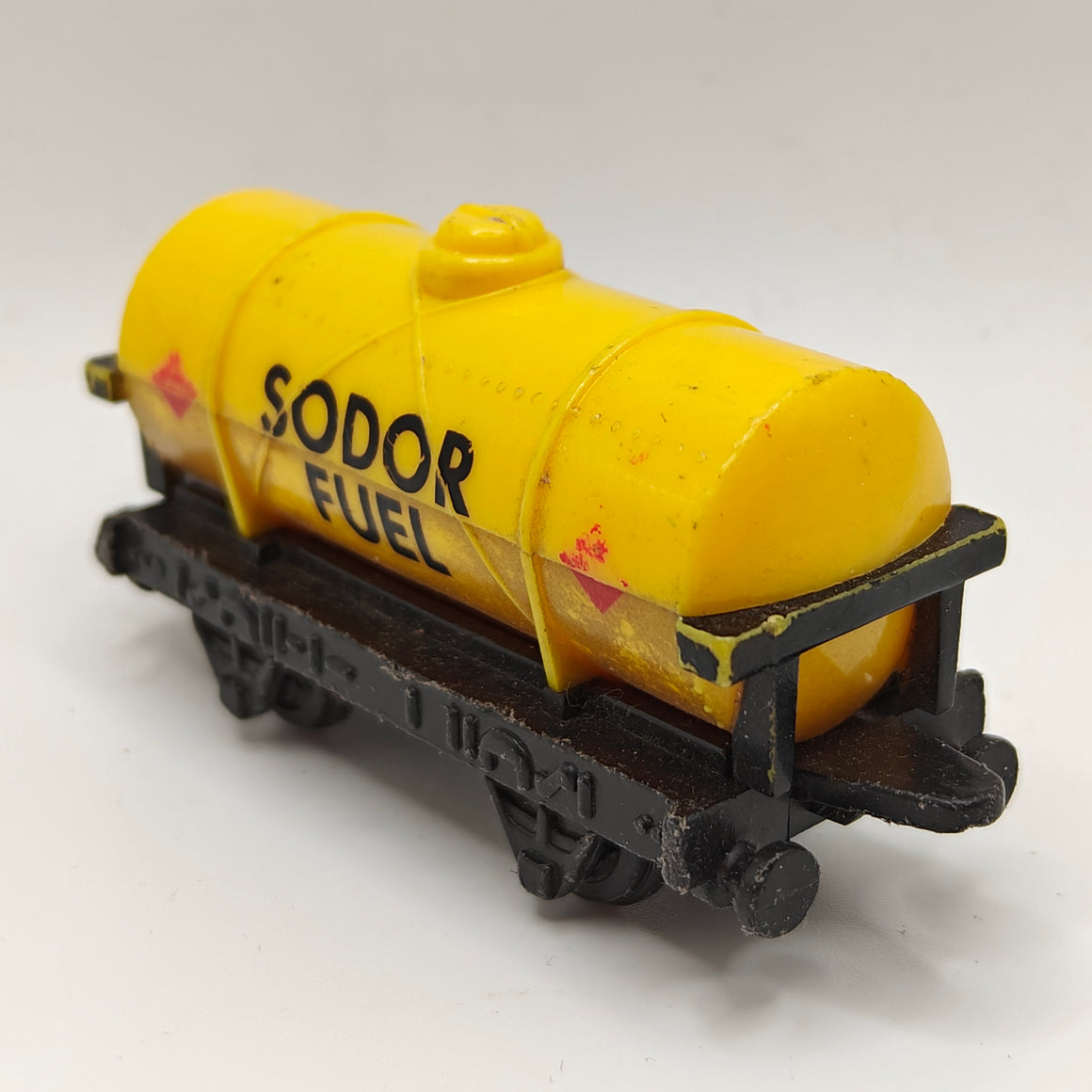 This listing is for the Thomas & Friends ERTL Diecast range's Sodor Fuel Tanker. Released in the UK initially in 1985, this line featured 1/64 scale die-cast models and playsets based off of the characters from The Railway Series and its television counterpart. Many characters that were trains, cars, tenders, helicopters and even people were miniaturized and became collectible items as well as toys. Since being discontinued in 2004, the interest in these has only increased, with some characters becoming increasingly hard to find, albeit in good condition.