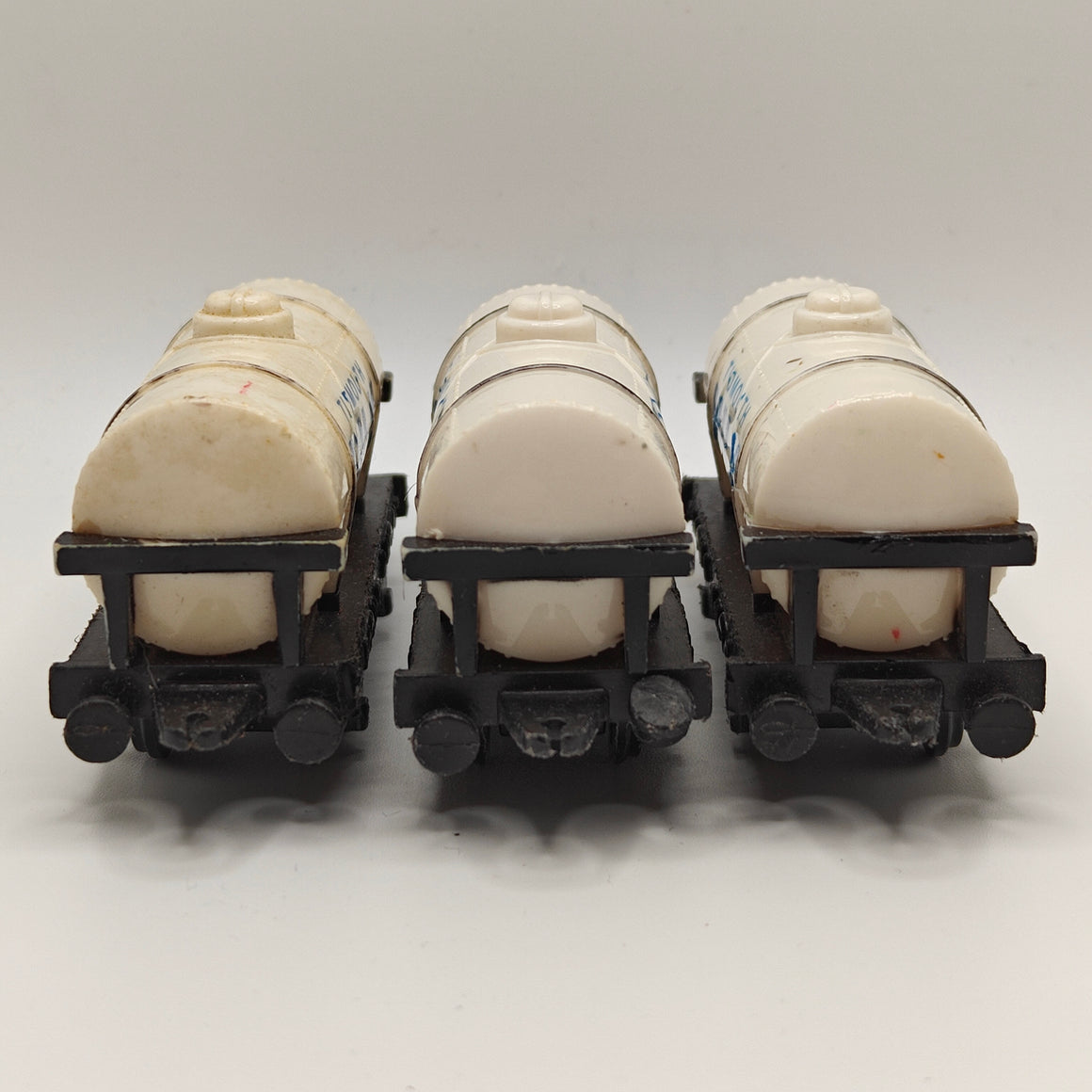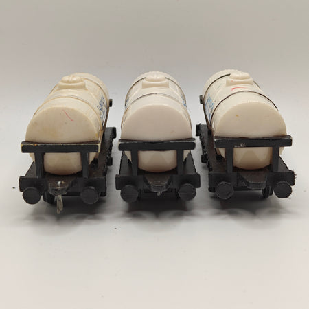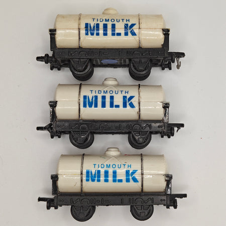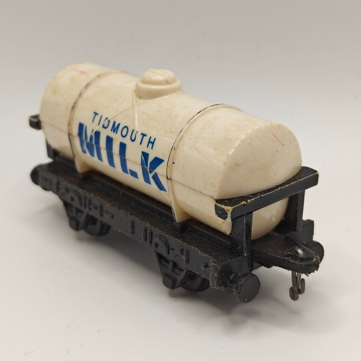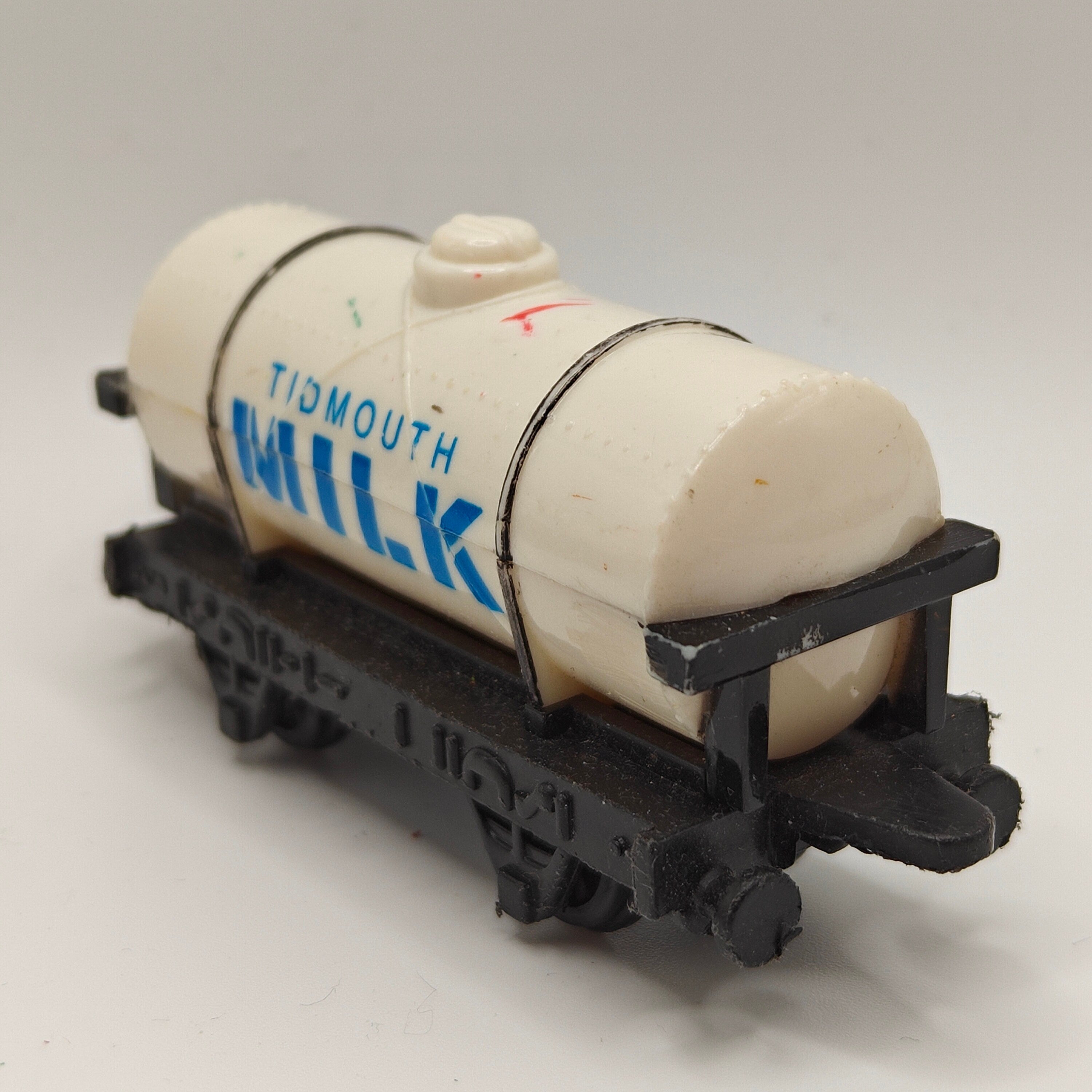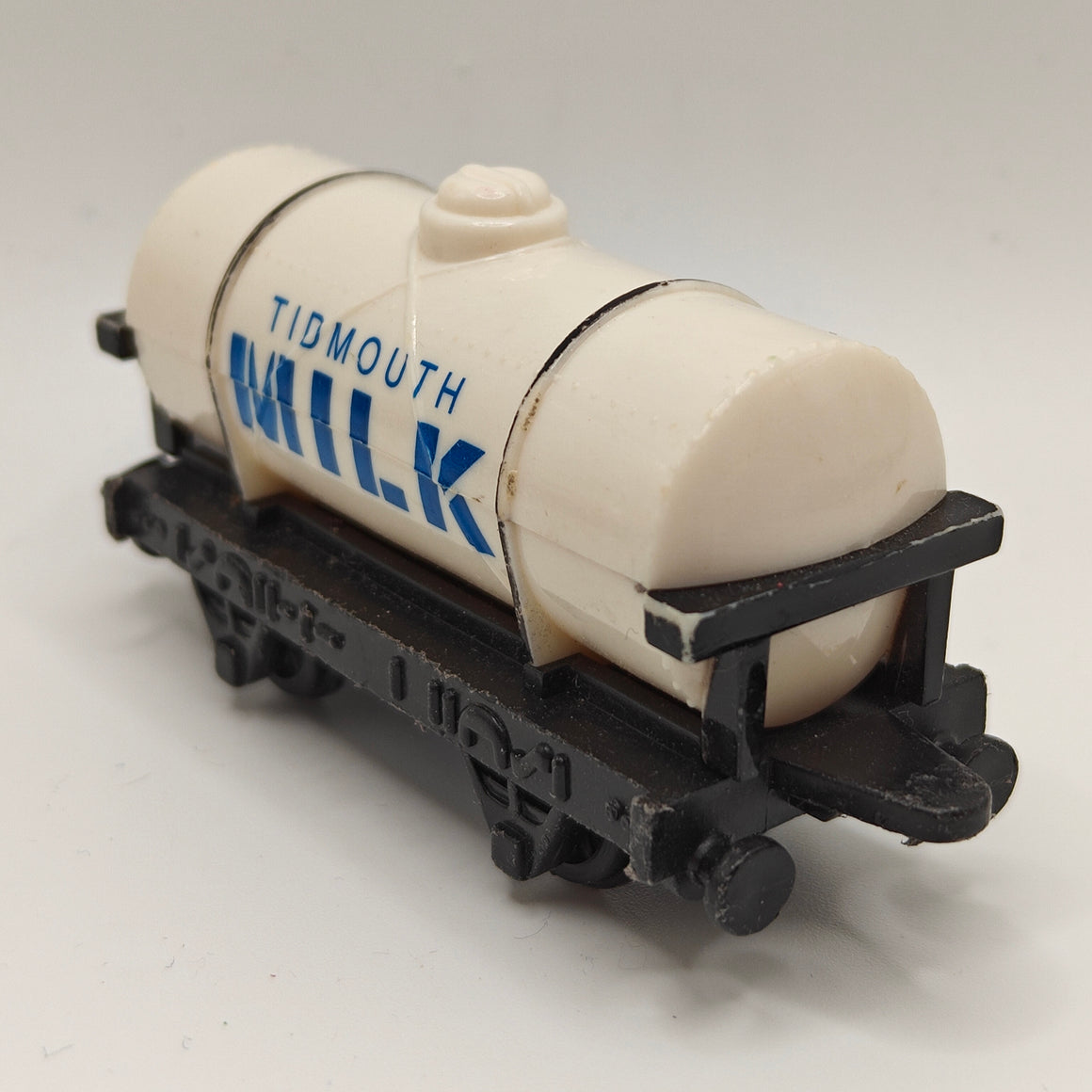 This listing is for the Thomas & Friends ERTL Diecast range's Tidmouth Milk Tanker. Released in the UK initially in 1985, this line featured 1/64 scale die-cast models and playsets based off of the characters from The Railway Series and its television counterpart. Many characters that were trains, cars, tenders, helicopters and even people were miniaturized and became collectible items as well as toys. Since being discontinued in 2004, the interest in these has only increased, with some characters becoming increasingly hard to find, albeit in good condition.