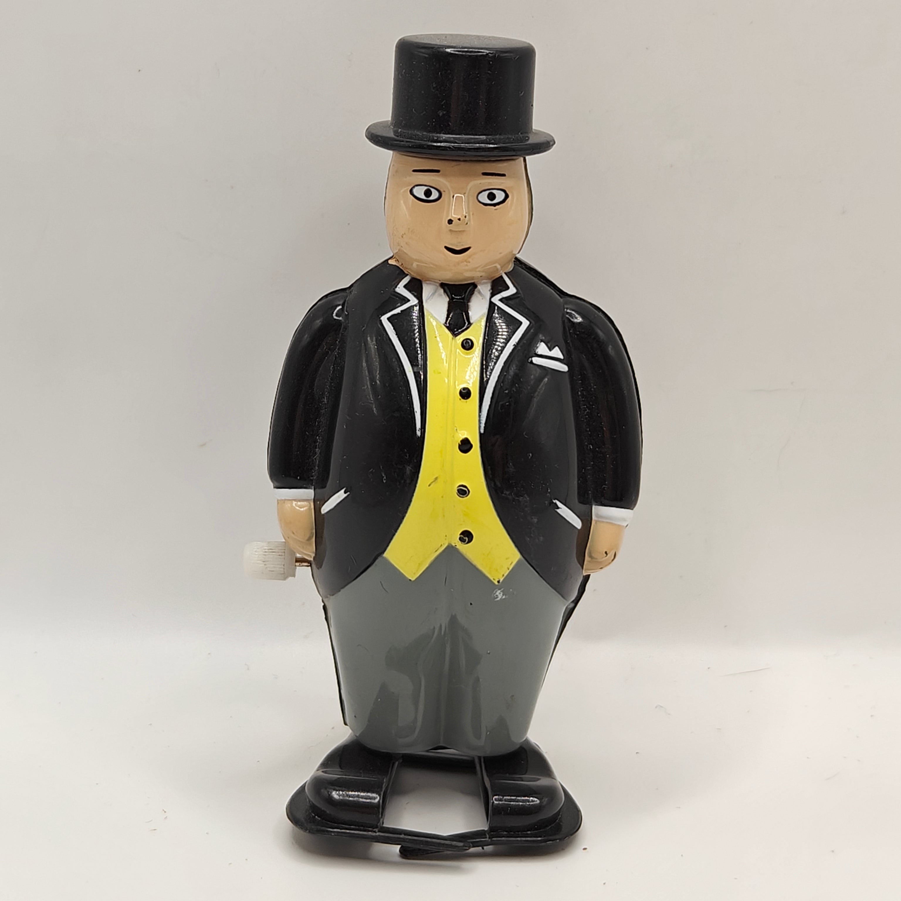 This listing is for the Thomas & Friends ERTL Diecast range's Wind-Up Sir Topham Hatt. Released in the UK initially in 1985, this line featured 1/64 scale die-cast models and playsets based off of the characters from The Railway Series and its television counterpart. Many characters that were trains, cars, tenders, helicopters and even people were miniaturized and became collectible items as well as toys. Since being discontinued in 2004, the interest in these has only increased, with some characters becoming increasingly hard to find, albeit in good condition.