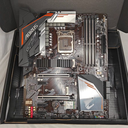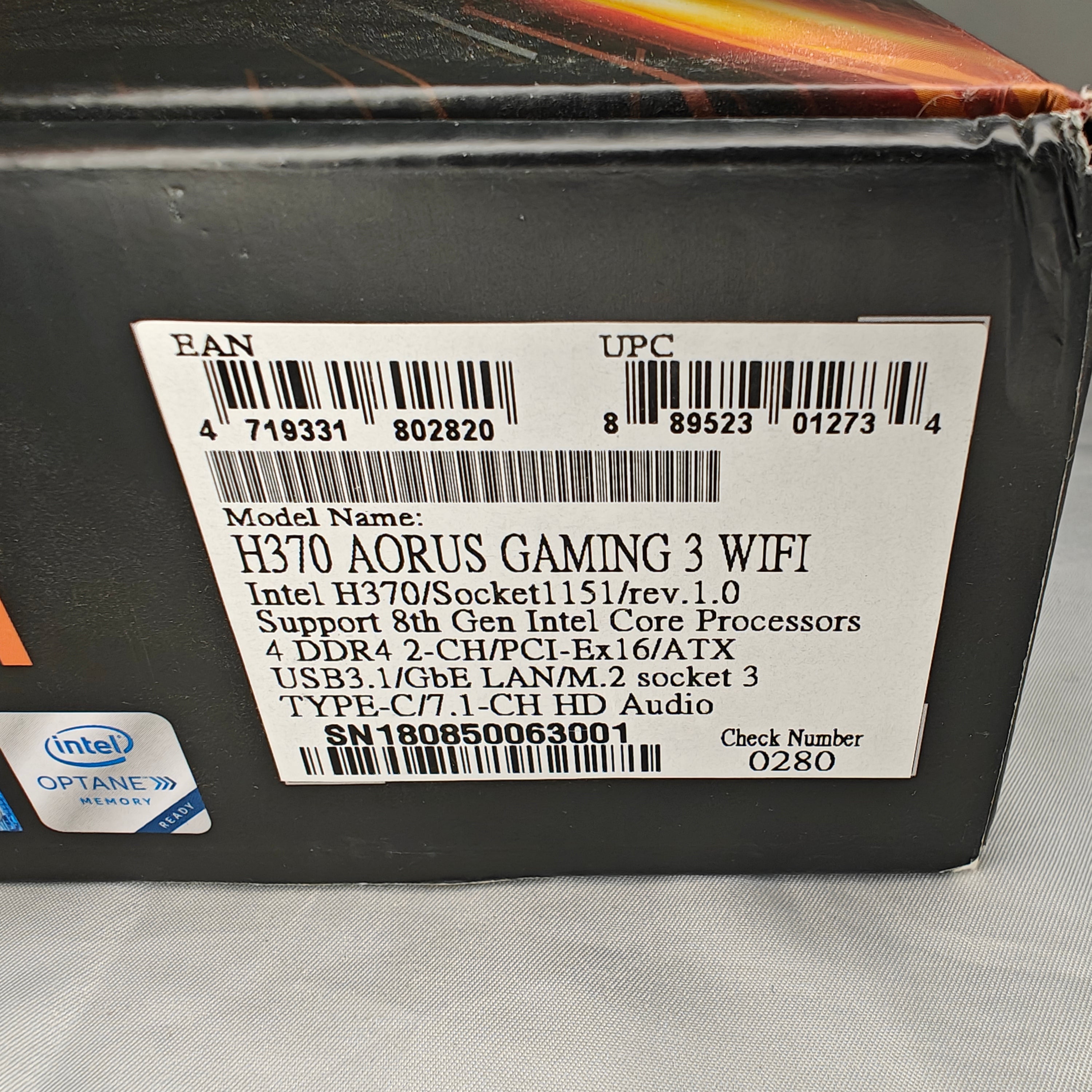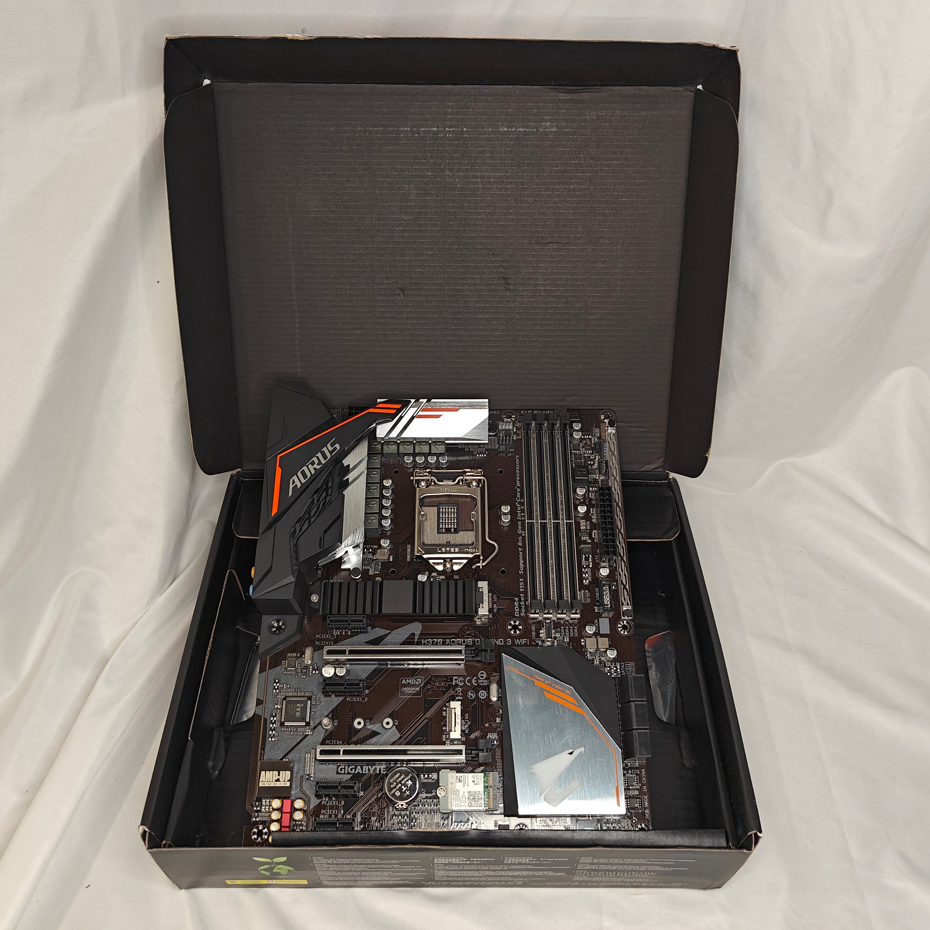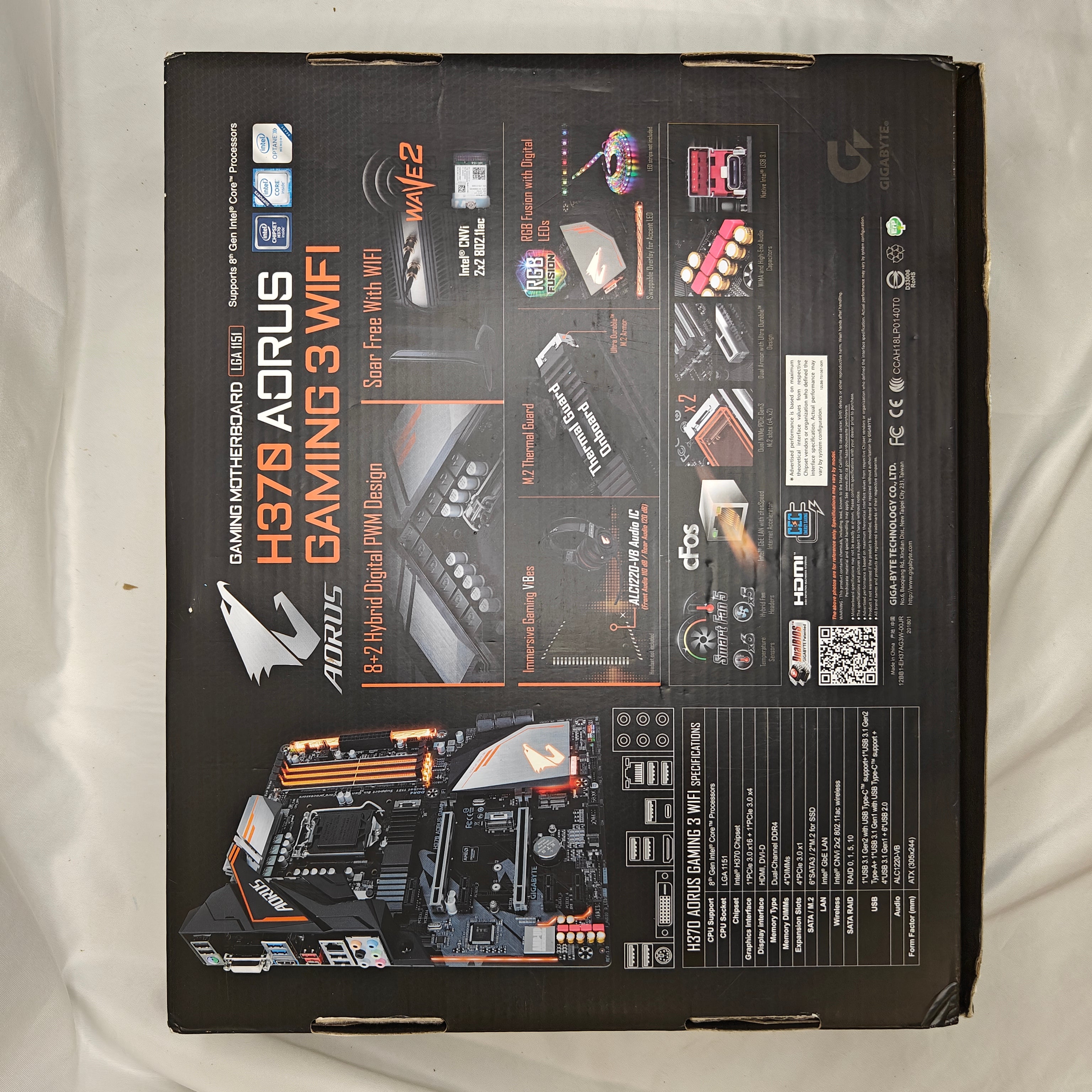 This is a Gigabyte H370 Aorus Gaming 3 motherboard with onboard WiFi. It is intended to be used with a 8th/9th generation Intel processor. This was bought used but never used by me personally, but I can confirm it functions as intended. This comes with most, if not all original accessories, but I cannot confirm for sure everything is included.