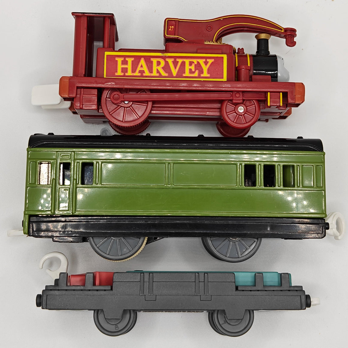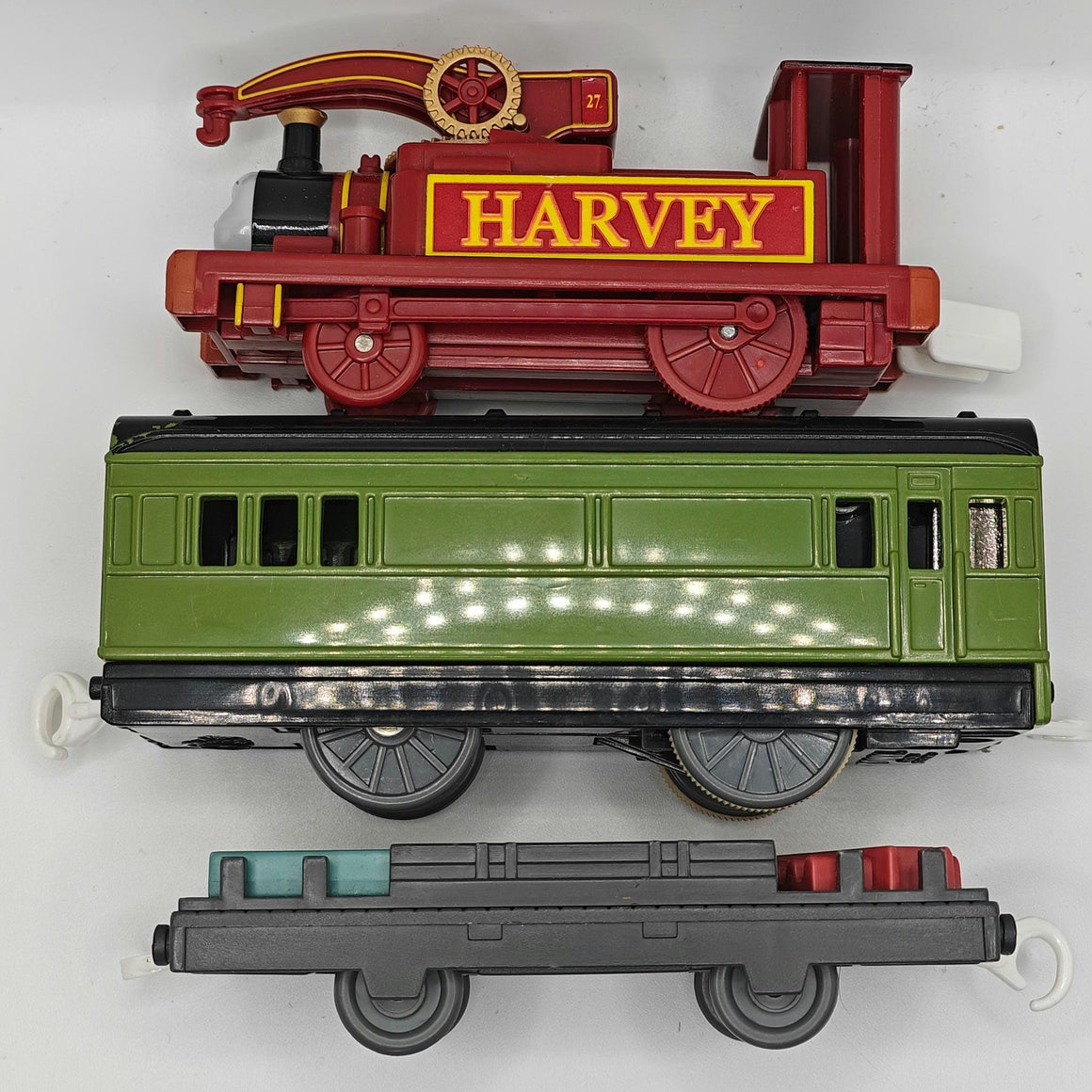 This is a complete Harvey! He come's with his motorized works unit coach, as well as a non-motorized flatbed. This item has been disassembled, cleaned, repaired and tested for full functionality, it is ready for a new owner.