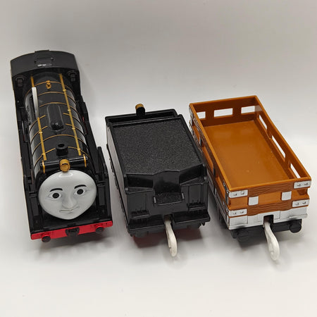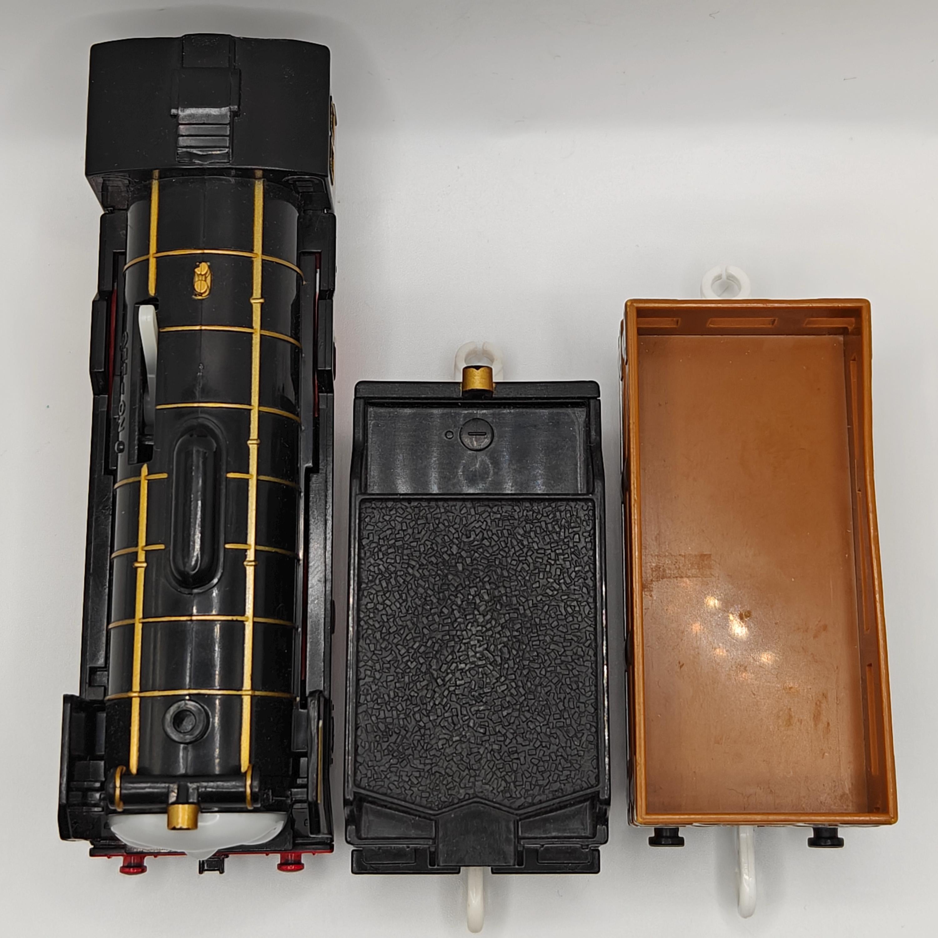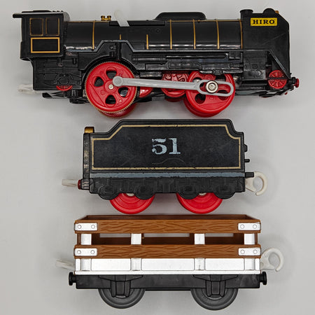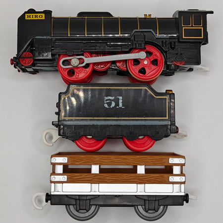 This is a complete Hiro! He come's with his non-motorized coal tender, as well as a slate truck. This item has been disassembled, cleaned, repaired and tested for full functionality, it is ready for a new owner.