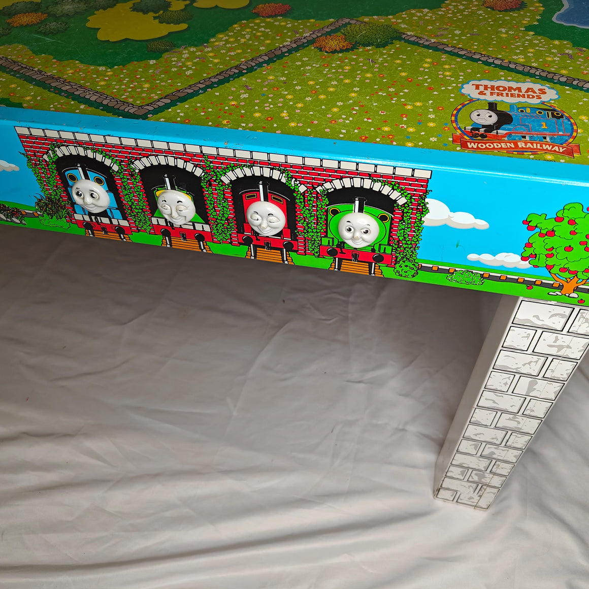 This item is in great used condition and comes with all parts. This is the Island of Sodor Wooden Playtable with the Island Adventure Playboard. All parts for assembly are included, tools are not.