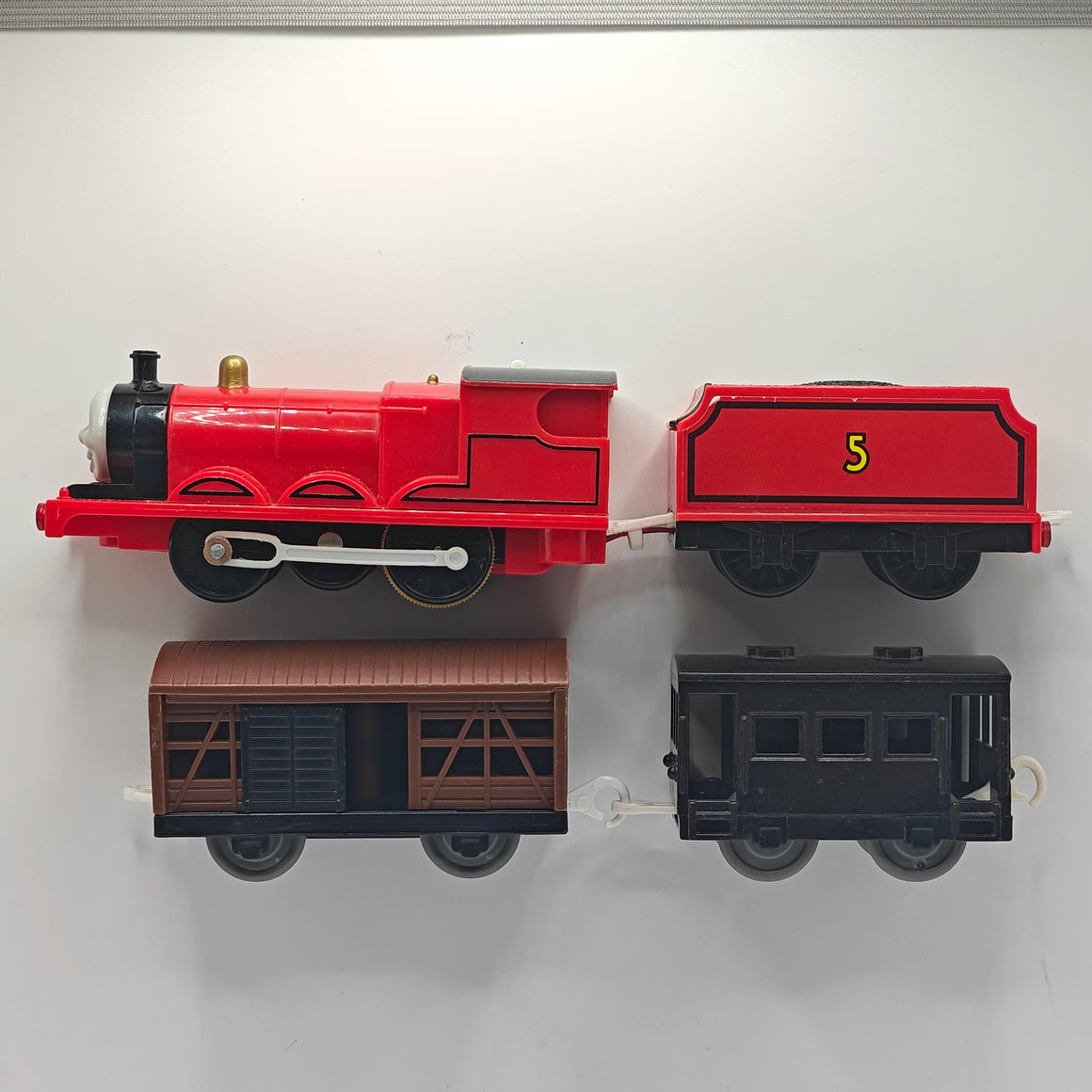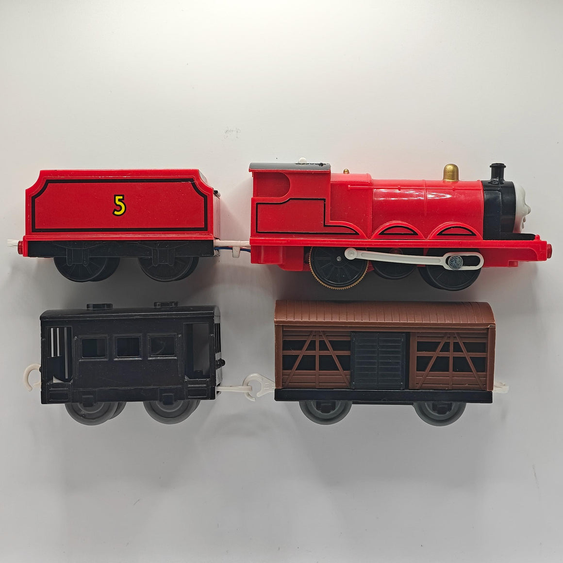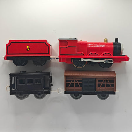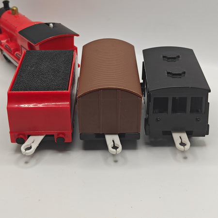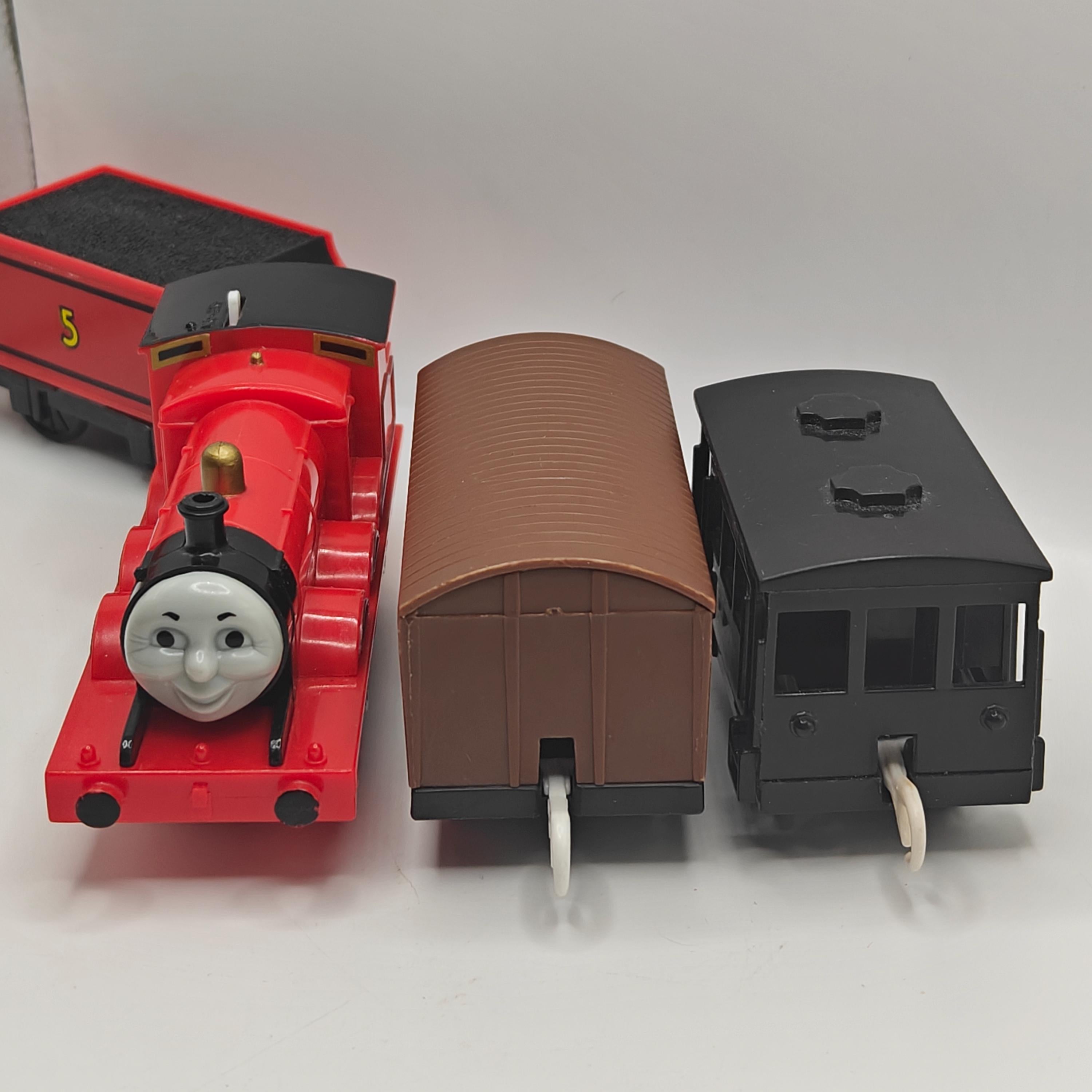 This is a complete James! He come's with a cattle car, and a black caboose. This item has been disassembled, cleaned, repaired and tested for full functionality, it is ready for a new owner.