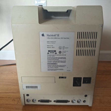 This is a Macintosh SE that is being sold as-is. I do not have a keyboard and mouse to test this with, nor do I have the startup floppy disc. Aside from the case being yellowed with age, it is in good condition.