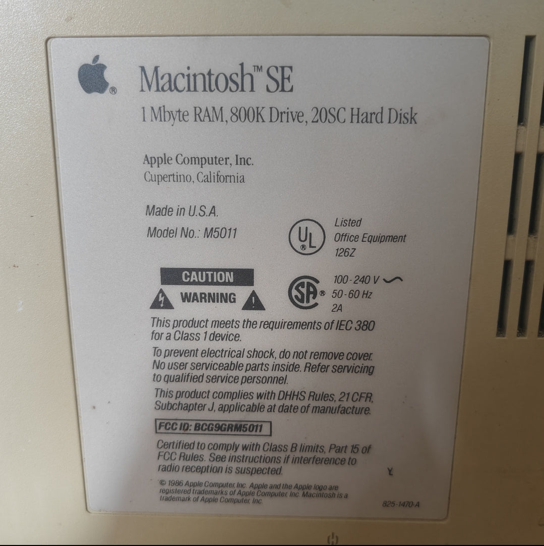 Macintosh SE 1 MB RAM 800k HDD M5011 TURNS ON