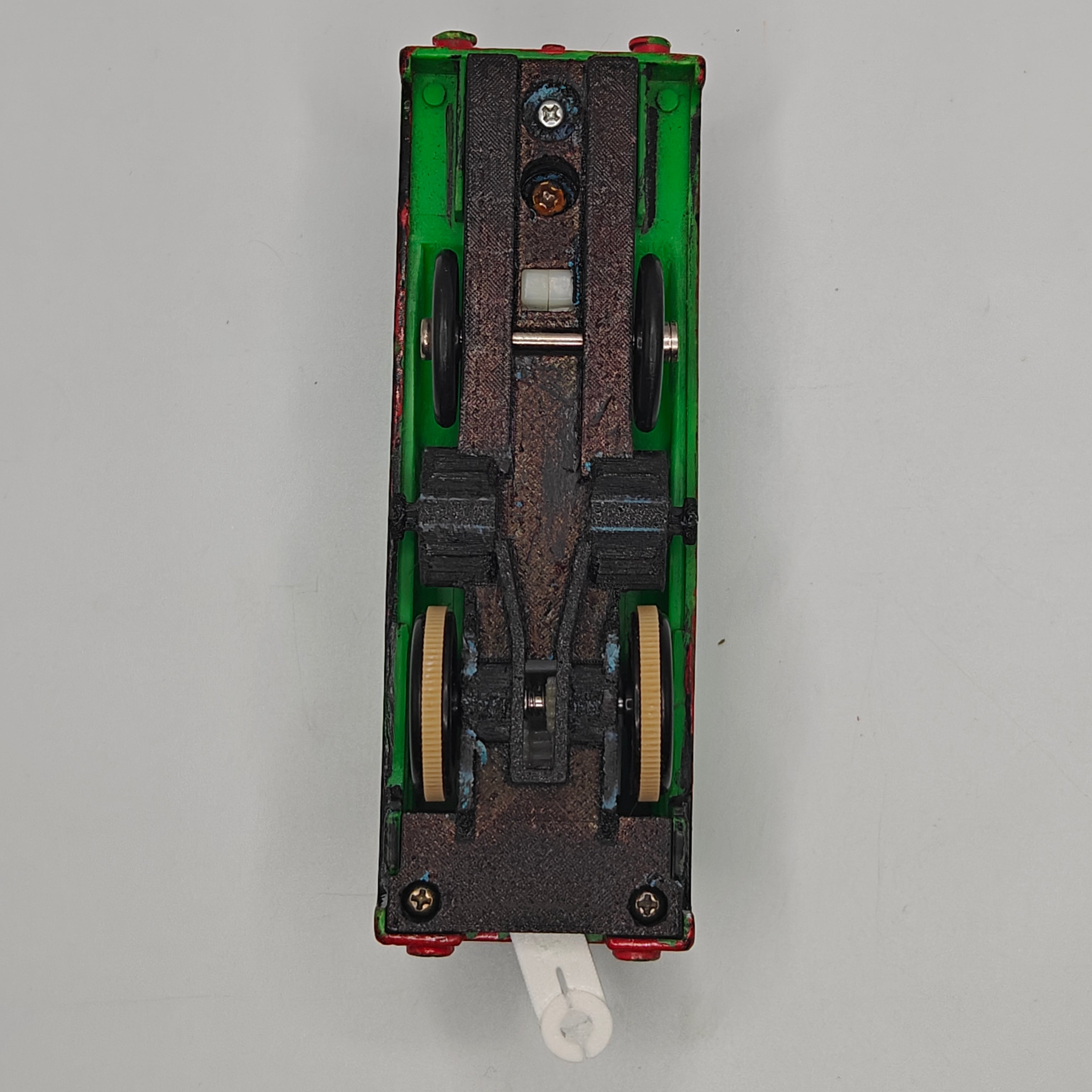 This is a complete Oliver! He come's with no accessories. This item has been disassembled, cleaned, repaired and tested for full functionality, it is ready for a new owner. Due to being received missing it chassis and motor cage, this Oliver has been reconstructed. The wheels, 3D printed chassis, and motor are all unoriginal to Oliver. Oliver does work as intended despite being reconstructed. He has also been repainted to reflect a more accurate look for him. This was done previous to my ownership.