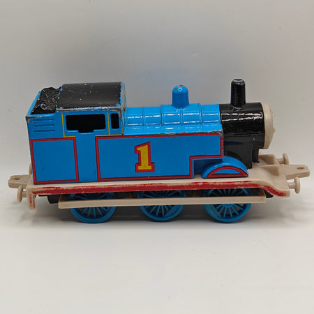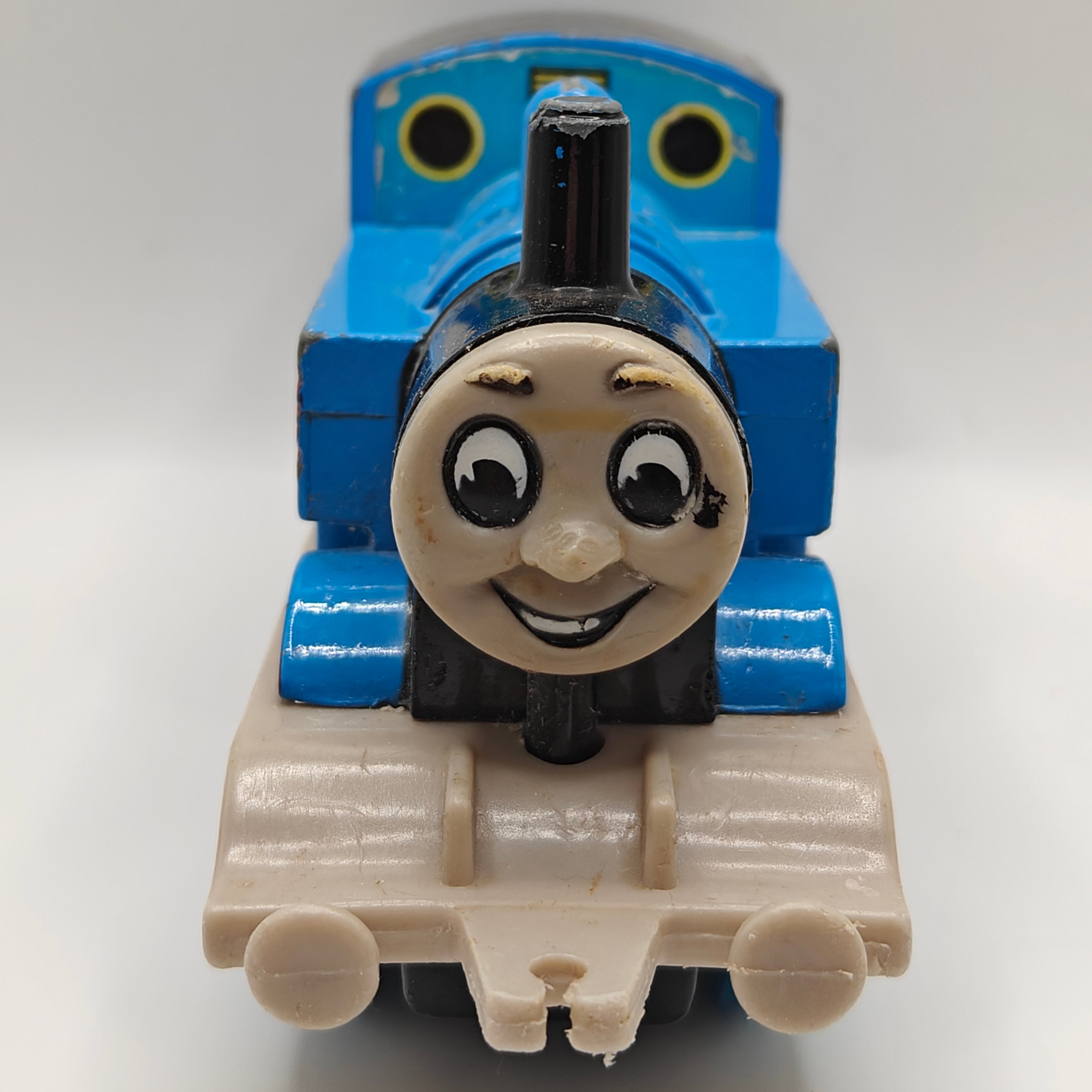 This listing is for the Thomas & Friends ERTL Diecast range's Thomas the Tank Engine with Pull-back Motor. Released in the UK initially in 1985, this line featured 1/64 scale die-cast models and playsets based off of the characters from The Railway Series and its television counterpart. Many characters that were trains, cars, tenders, helicopters and even people were miniaturized and became collectible items as well as toys. Since being discontinued in 2004, the interest in these has only increased, with some characters becoming increasingly hard to find, albeit in good condition.