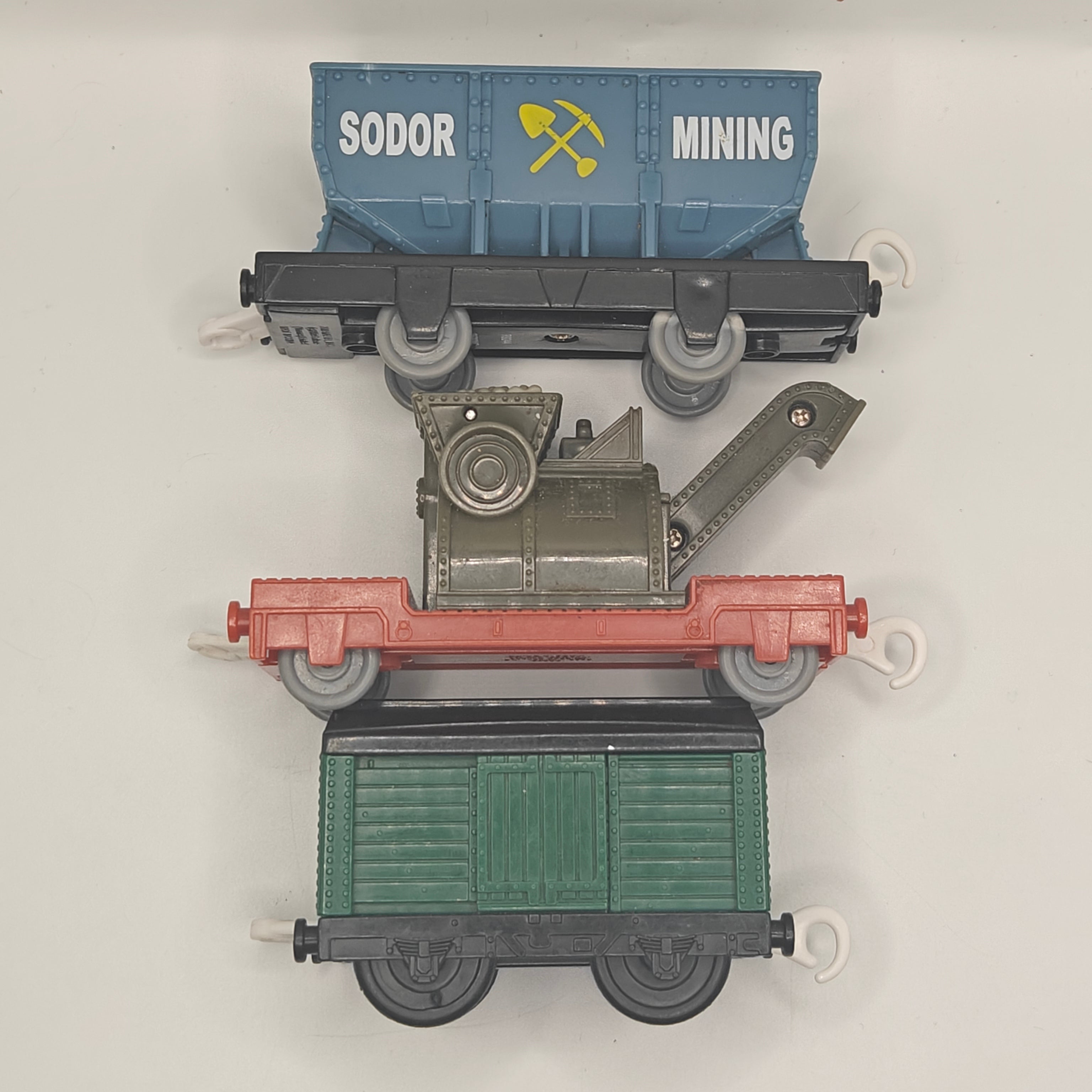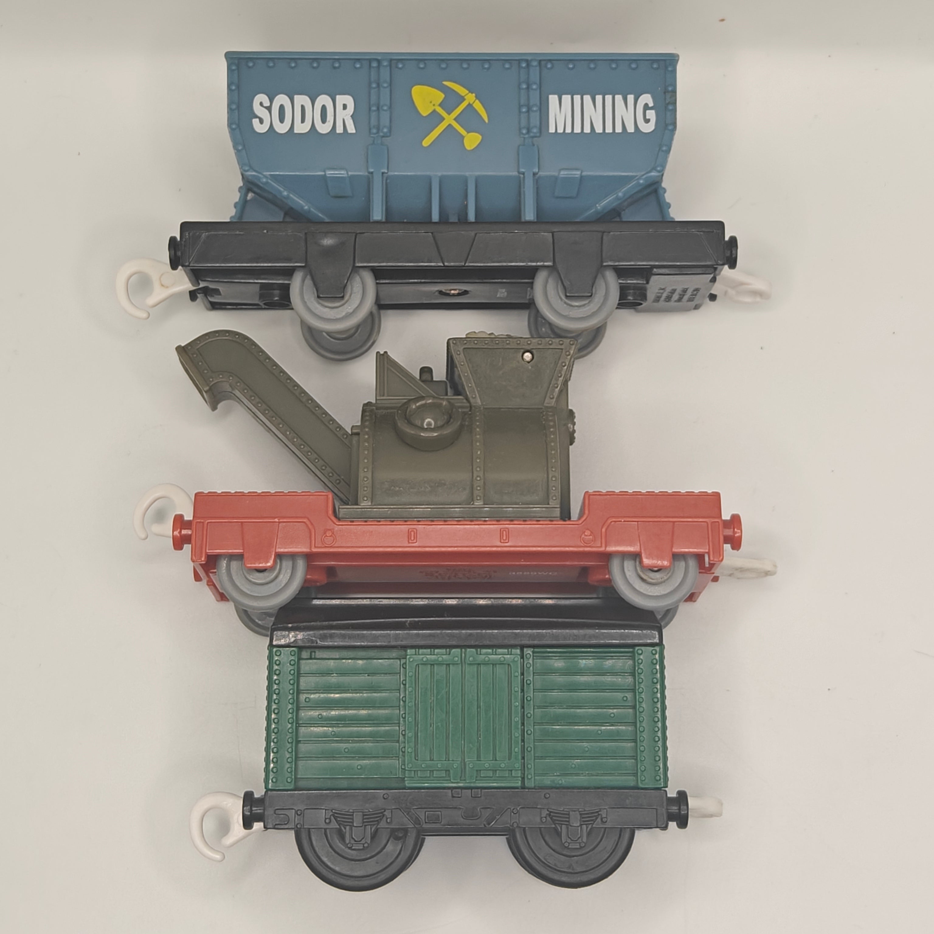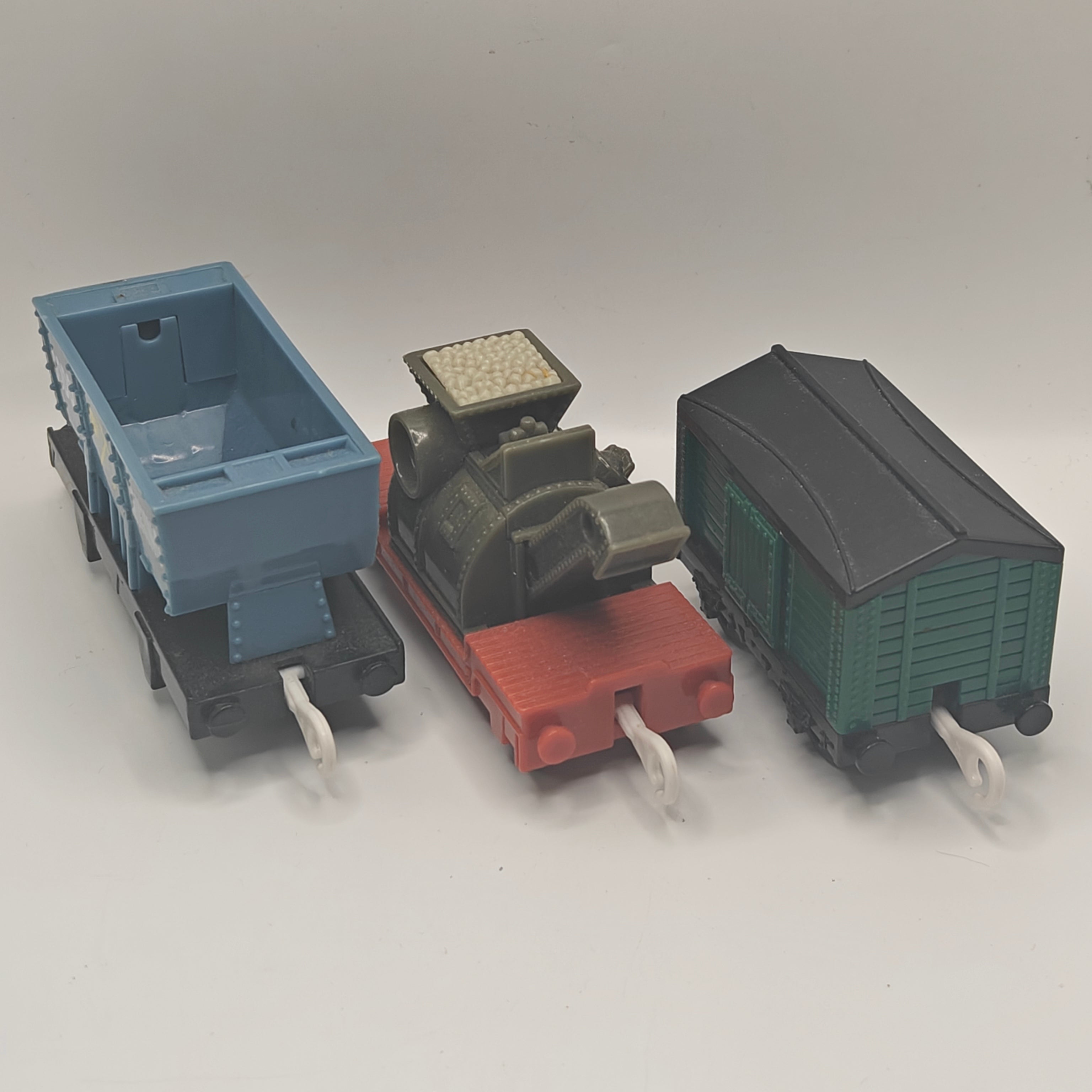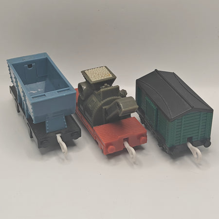 This is a Trucks Pack, specifically the Sodor Building Co.! This is a three car pack that is complete, it did not originally come with smaller accessories. Please review the photos for detailed indication of this.