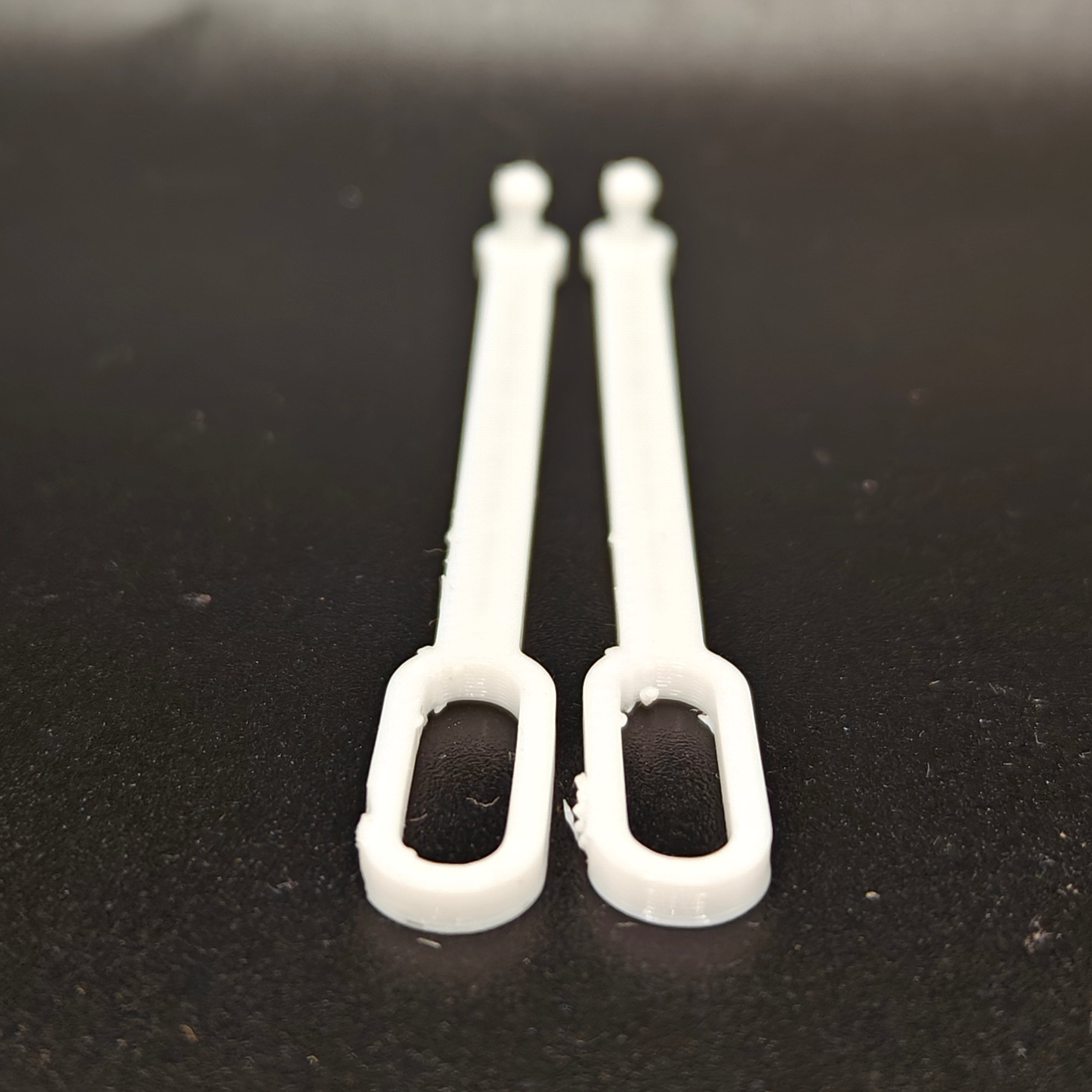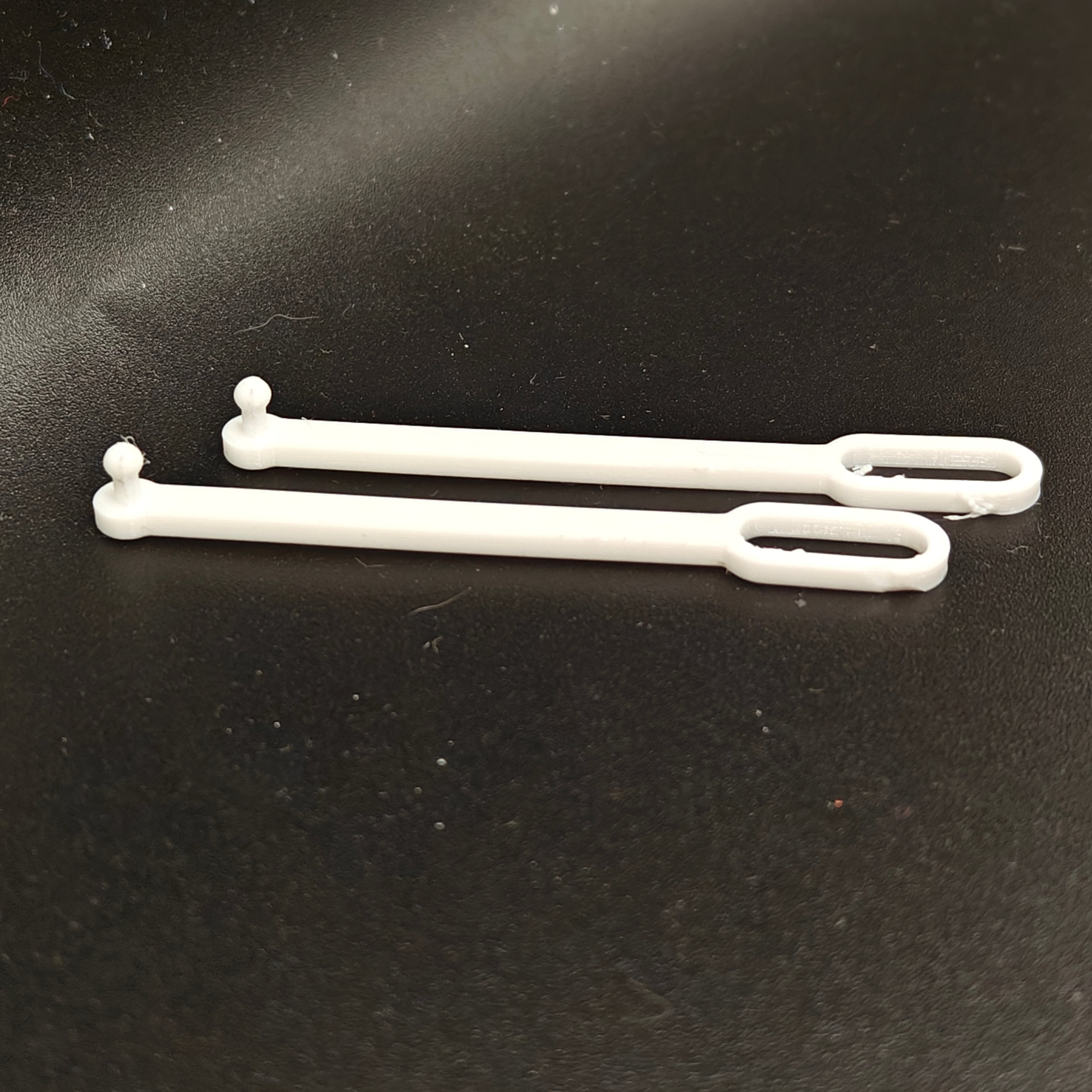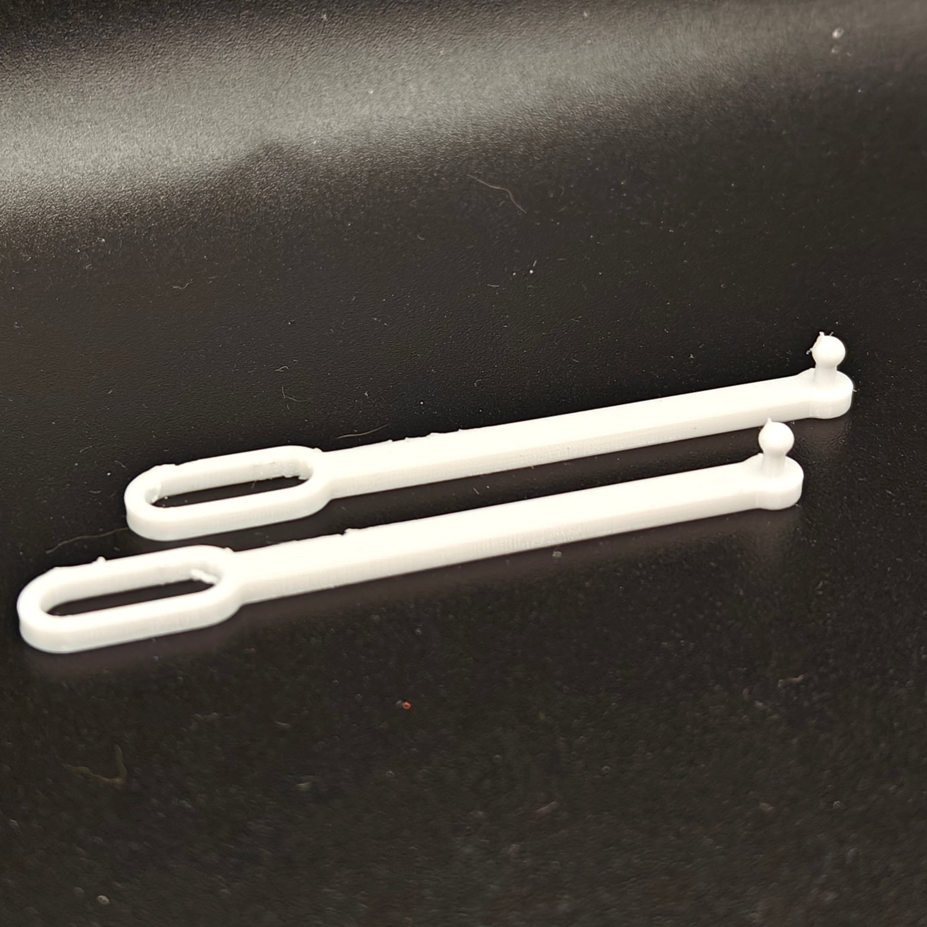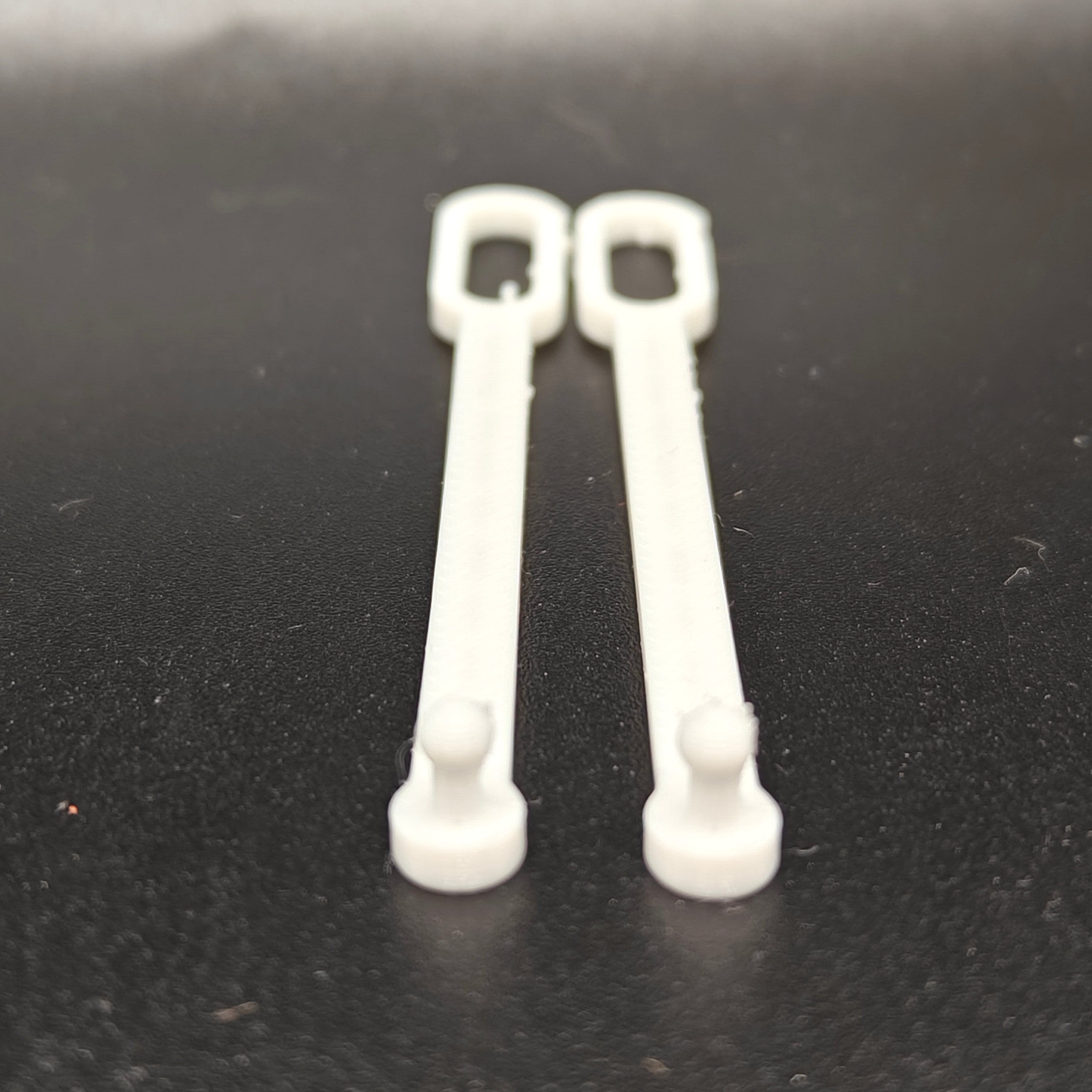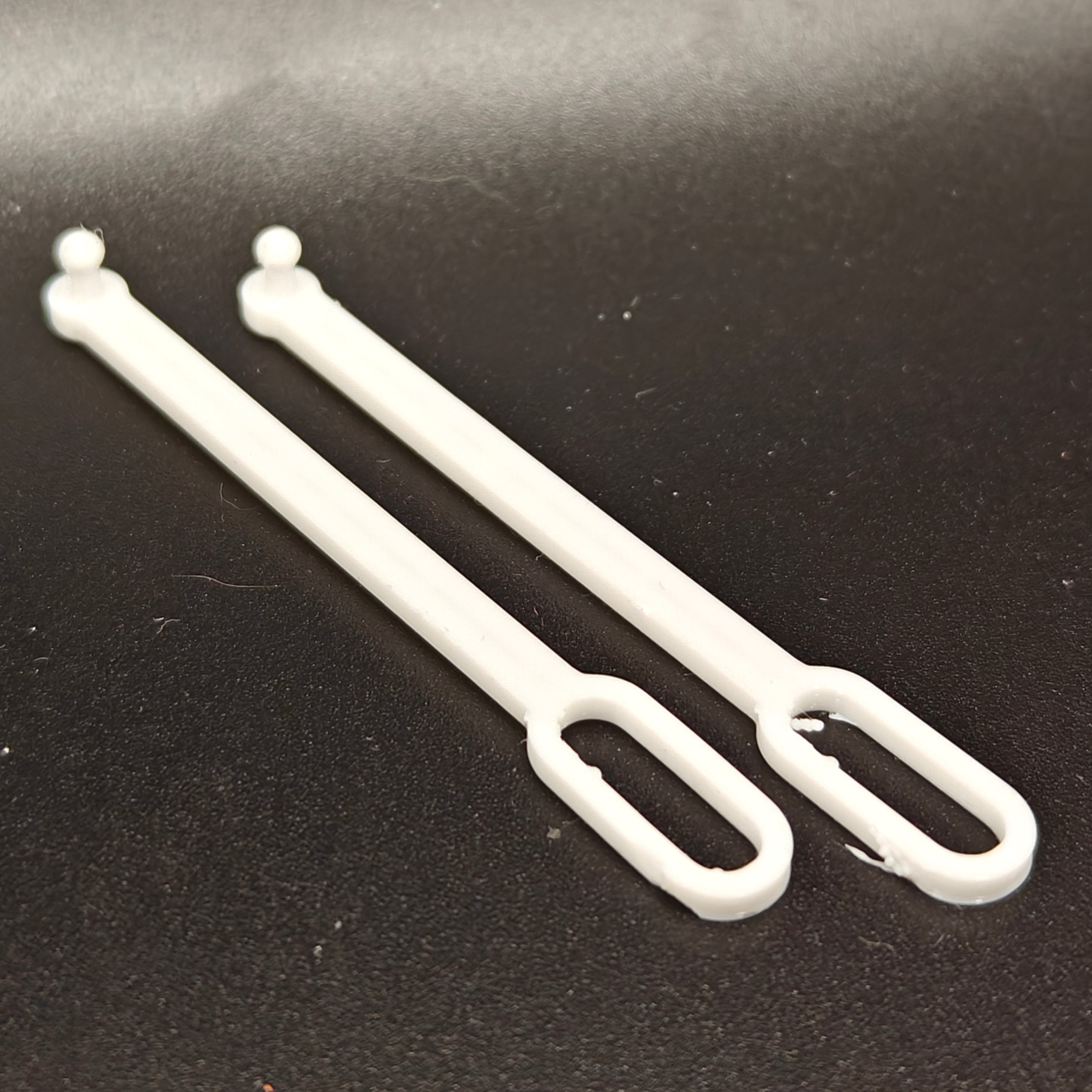 These are 3D printed replacement parts for Thomas & Friends Trackmaster train toys! Specifically, these are side rods for Trackmaster 2 trains which all feature the same length side rods, so these can be used on any Trackmaster 2 train. As there are no official replacements that can be purchased, missing rods could only be scavenged off broken trains, until now!