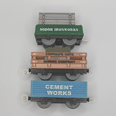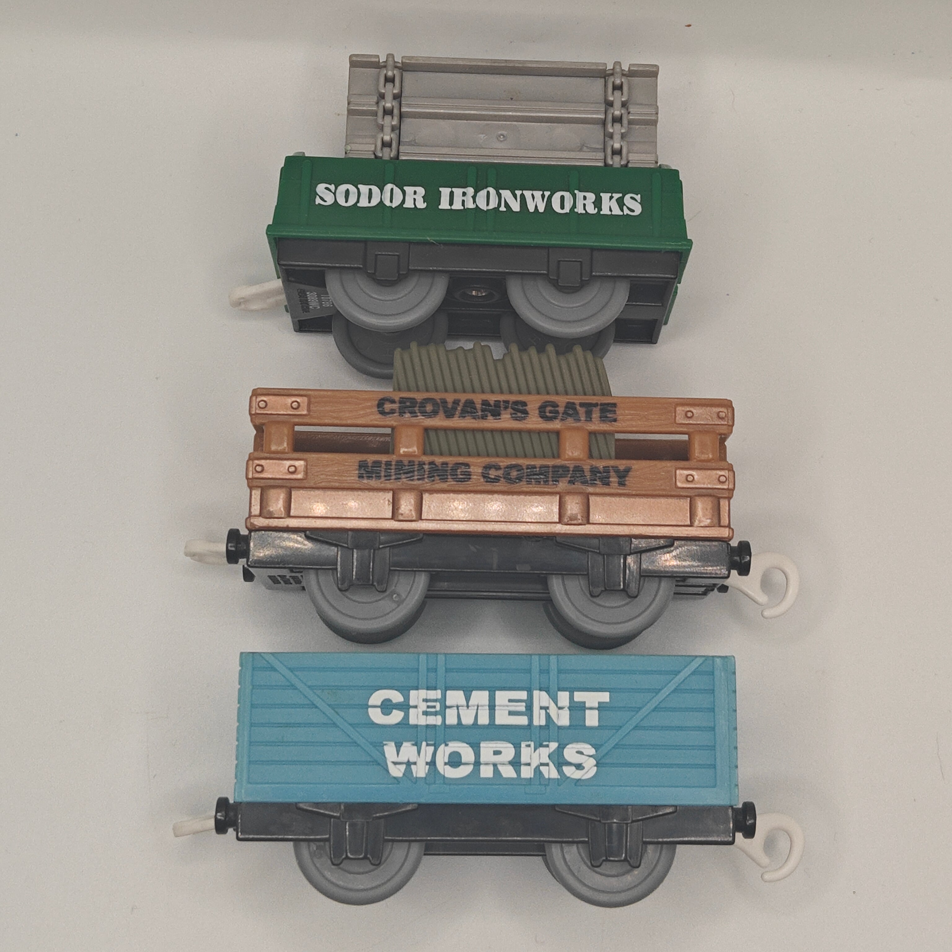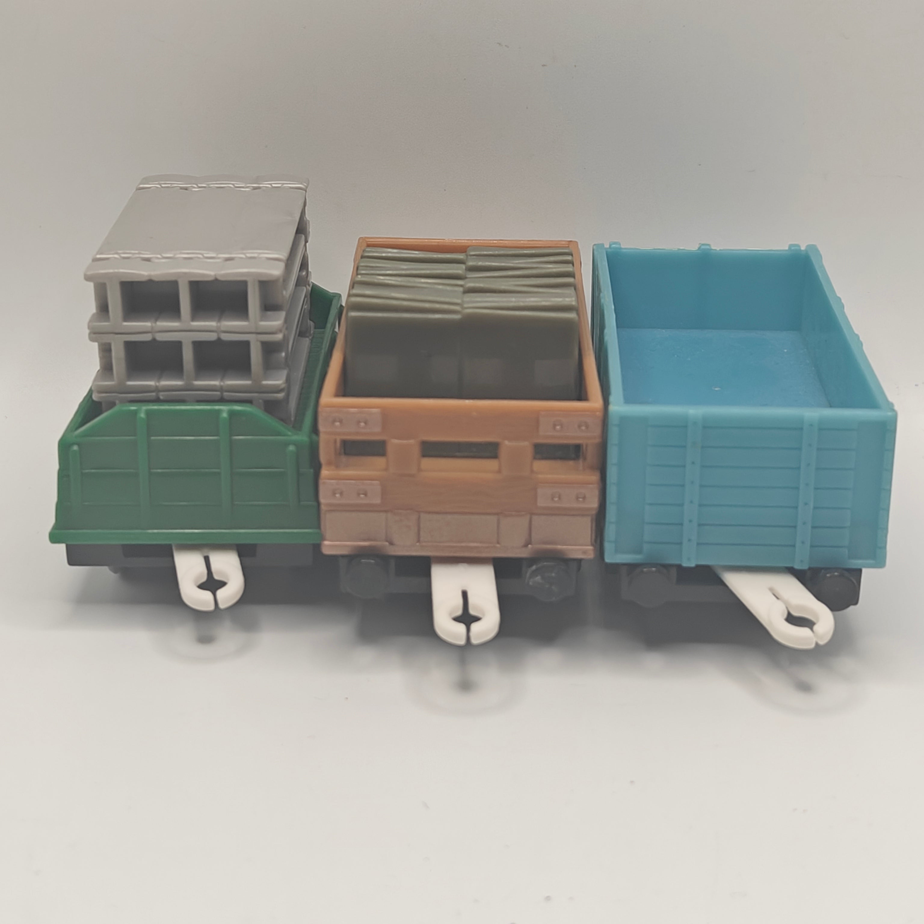 This is a Cargo & Cars Pack, specifically the Sodor Building Co.! This is a three car pack that is missing most of its smaller accessories with the exception of the steel beams, and one set of slate. Please review the photos for detailed indication of this.