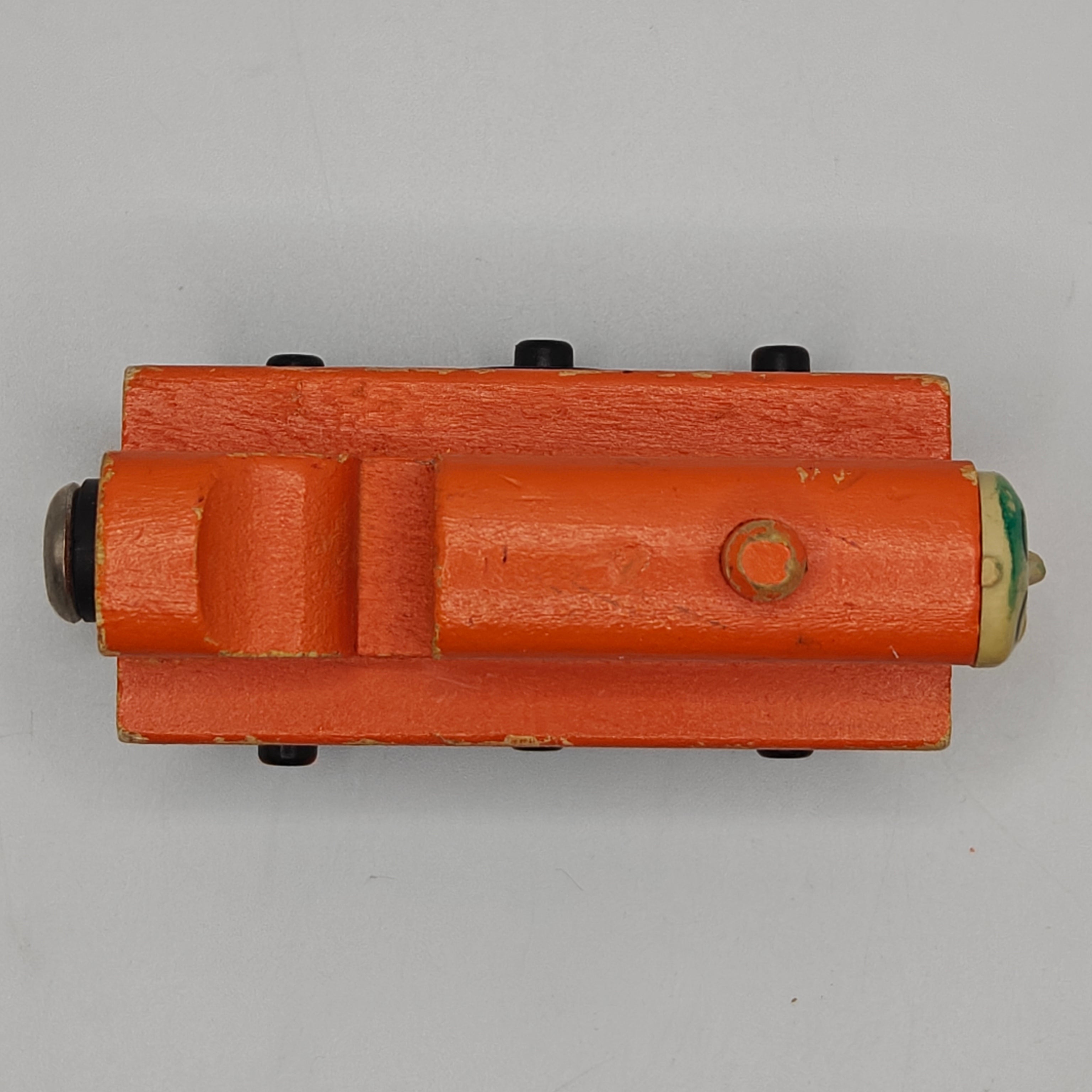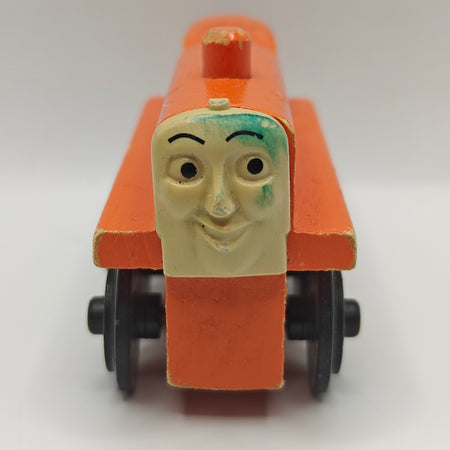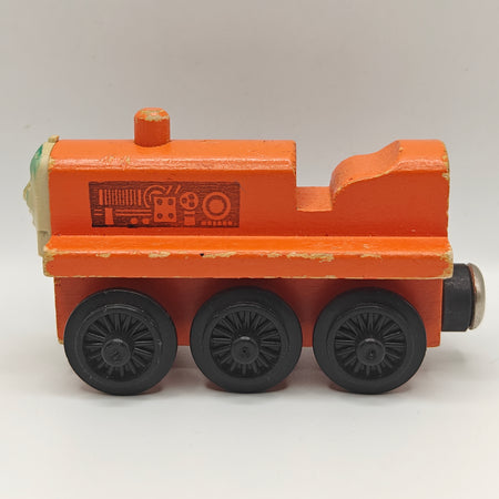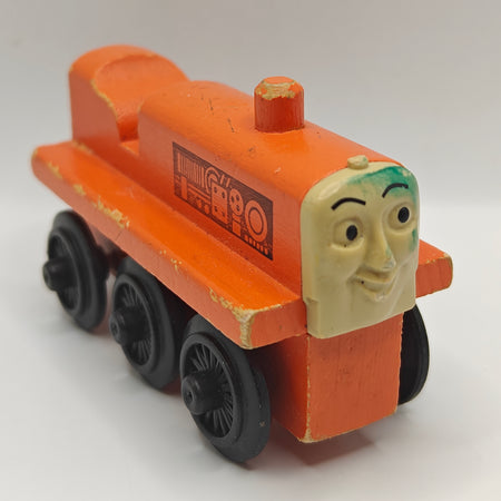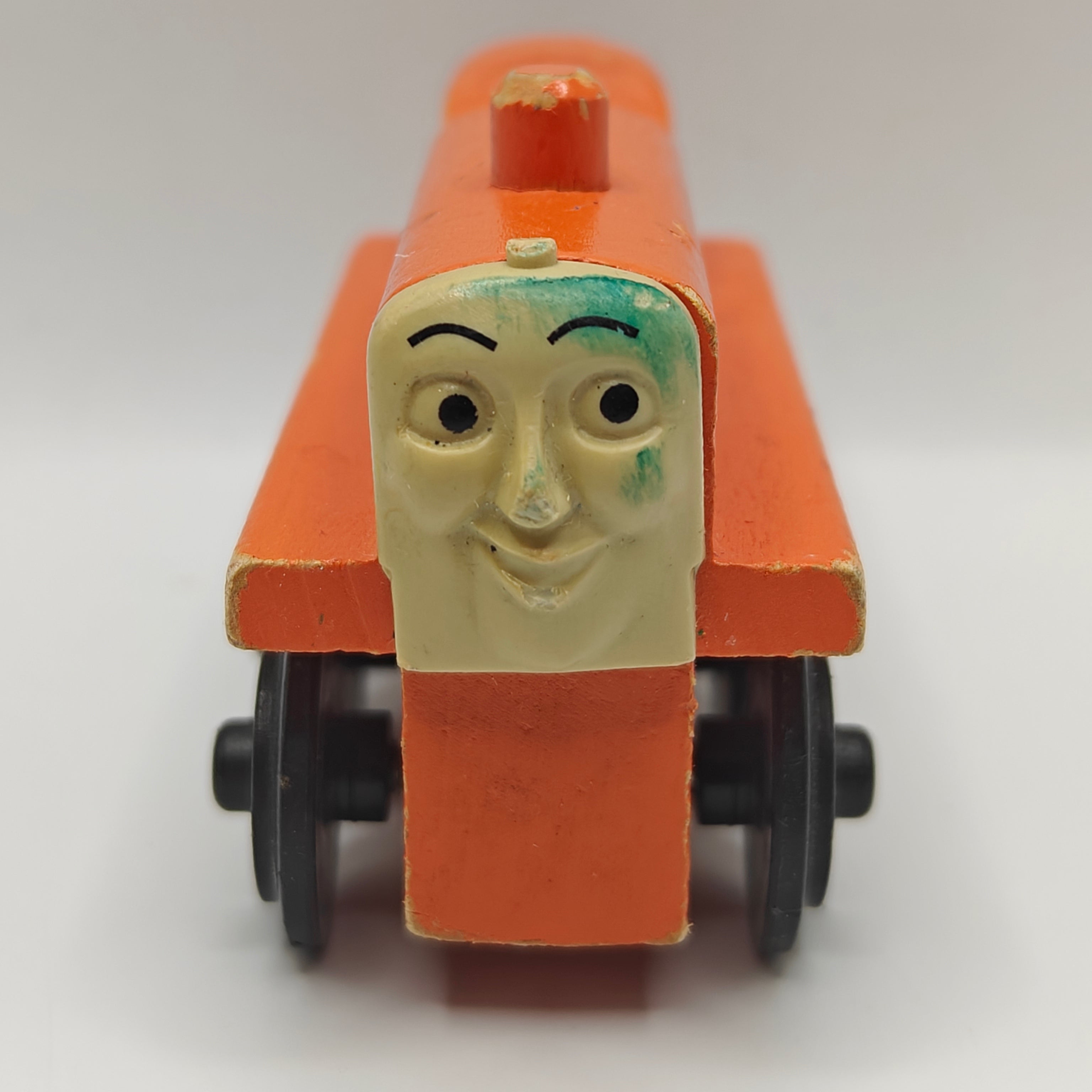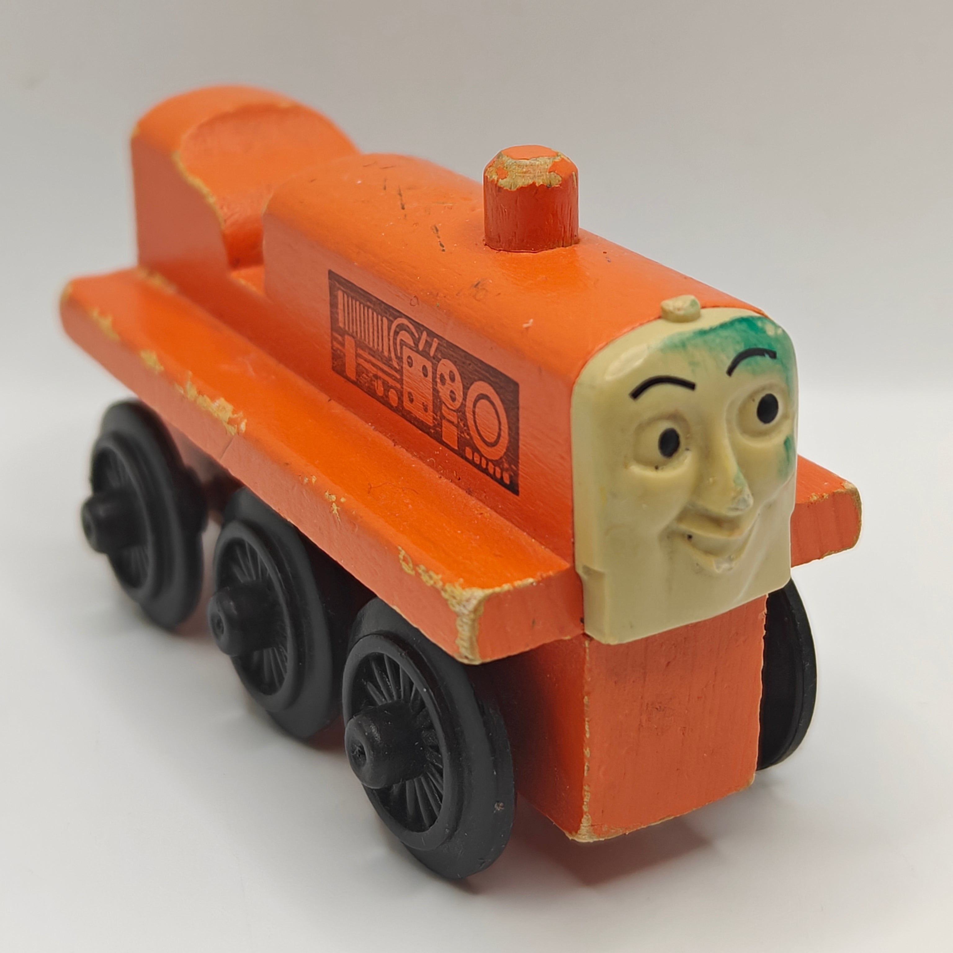 This listing is for specifically the Wooden Railway's Terence from 1993. This is the first model of Terence that featured black wheels and no widows peak, the treads are missing though. It is in good condition overall. Please note this is a wooden train, NOT diecast. This is also compatible with BRIO trains and track! It has been priced fairly based on condition! Please see the photos for an accurate depiction of its condition.