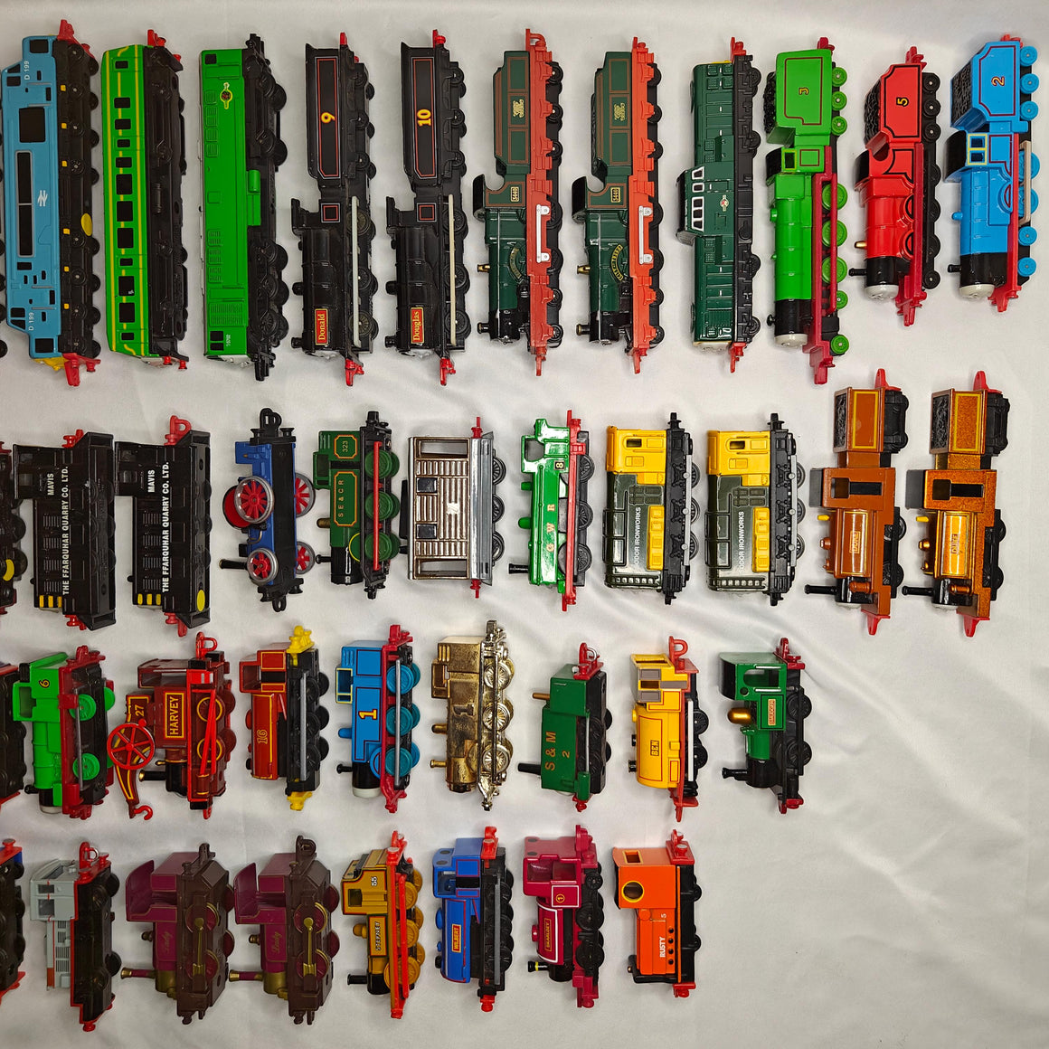 This listing is for the Thomas & Friends ERTL Diecast range. Released in the UK initially in 1985, this line featured 1/64 scale die-cast models and playsets based off of the characters from The Railway Series and its television counterpart. Many characters that were trains, cars, tenders, helicopters and even people were miniaturized and became collectible items as well as toys. Since being discontinued in 2004, the interest in these has only increased, with some characters becoming increasingly hard to find, albeit in good condition.