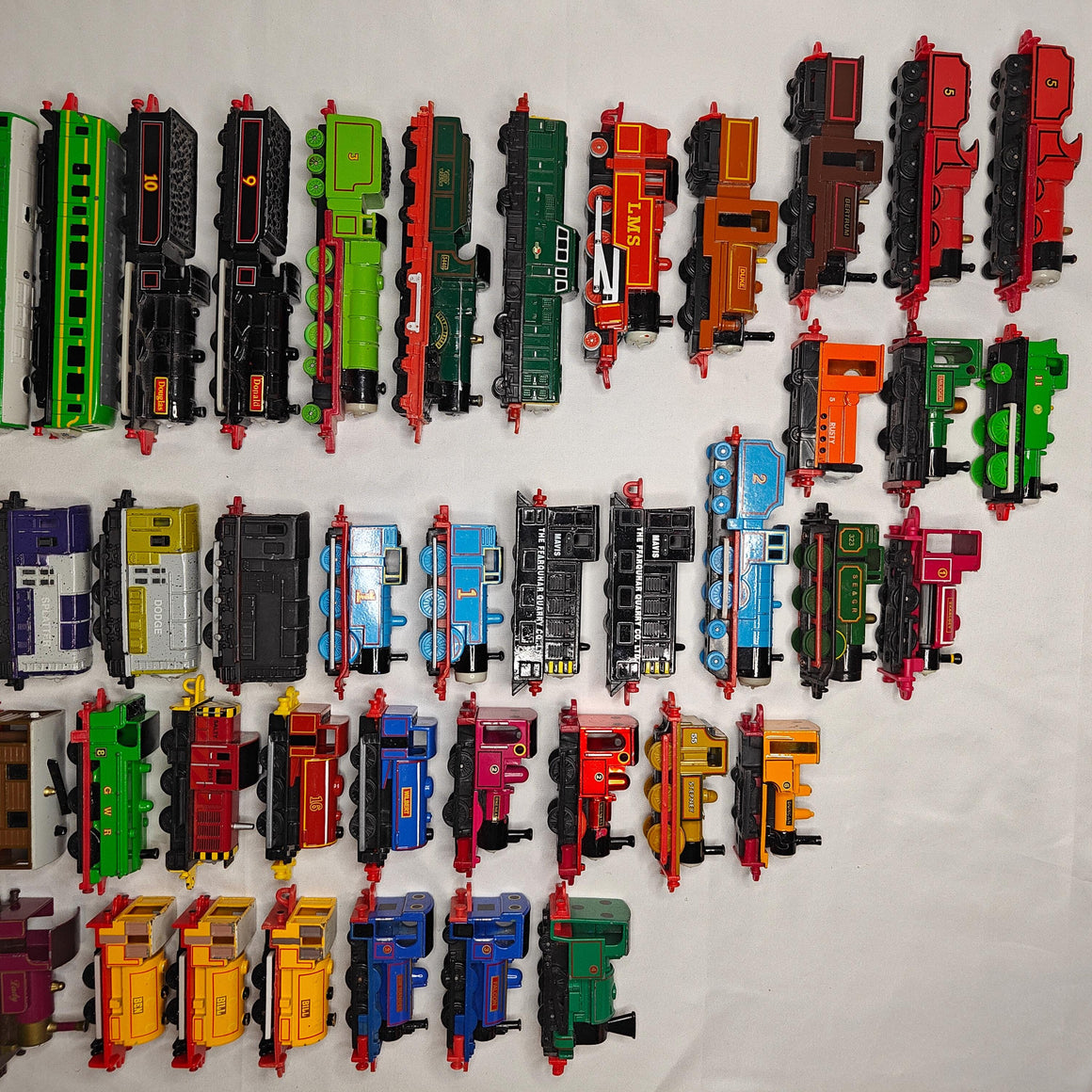 This listing is for the Thomas & Friends ERTL Diecast range. Released in the UK initially in 1985, this line featured 1/64 scale die-cast models and playsets based off of the characters from The Railway Series and its television counterpart. Many characters that were trains, cars, tenders, helicopters and even people were miniaturized and became collectible items as well as toys. Since being discontinued in 2004, the interest in these has only increased, with some characters becoming increasingly hard to find, albeit in good condition.