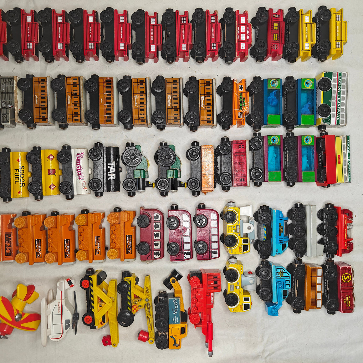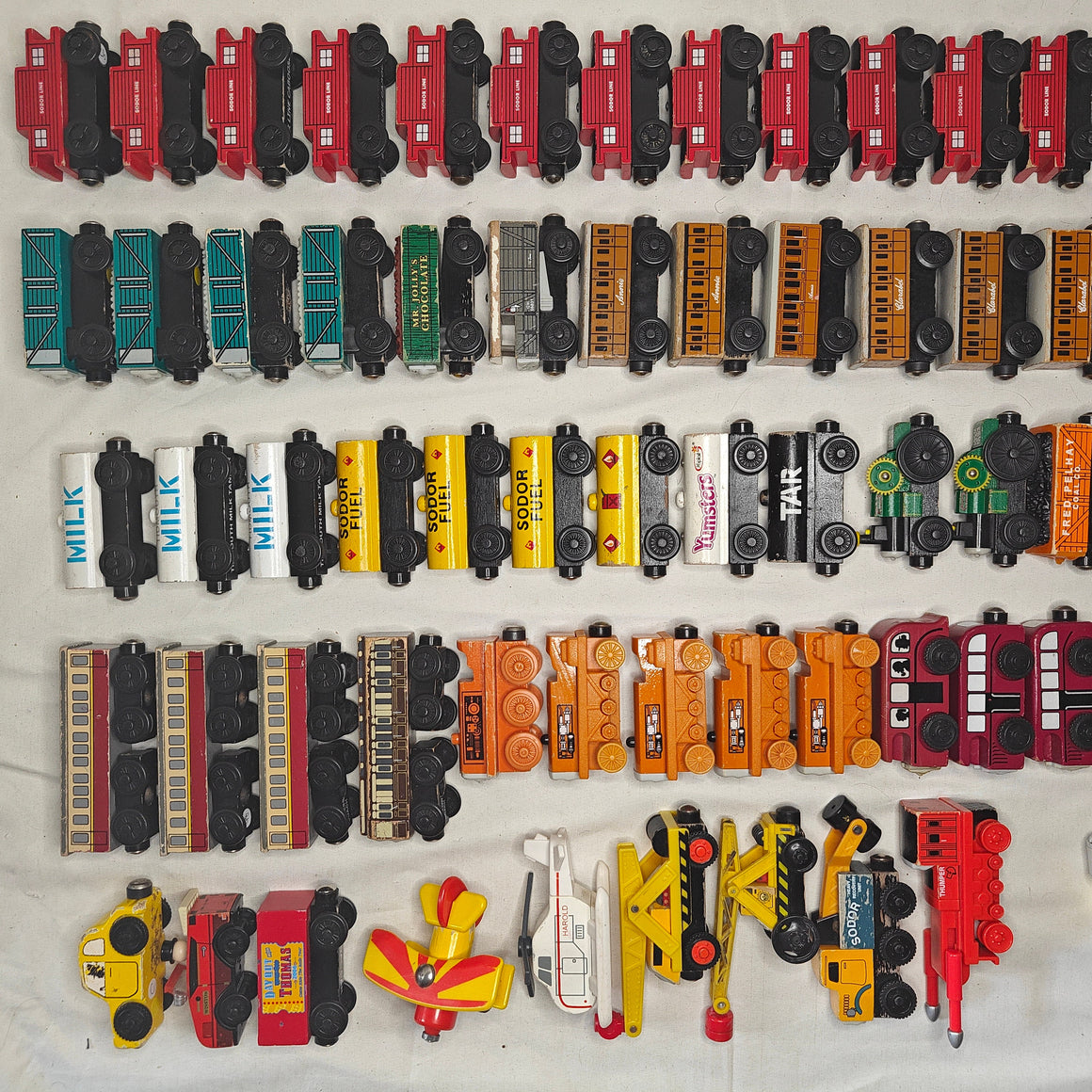 This listing is for specifically wooden Thomas toys that are NOT train engines. This listing will include rolling stock like trucks, passenger coaches, cars, airplanes, bus, and many other unique vehicles the Wooden Thomas line has to offer.