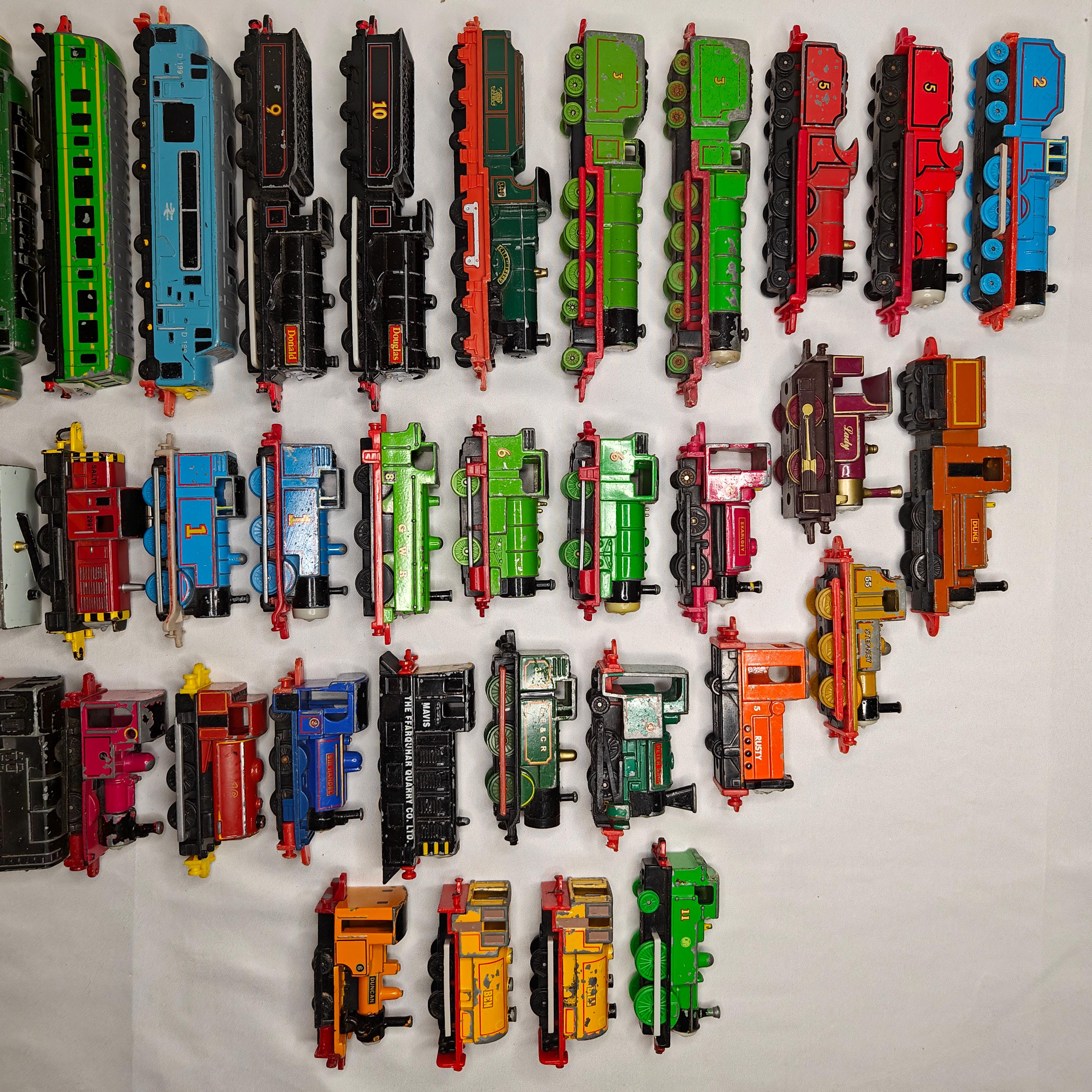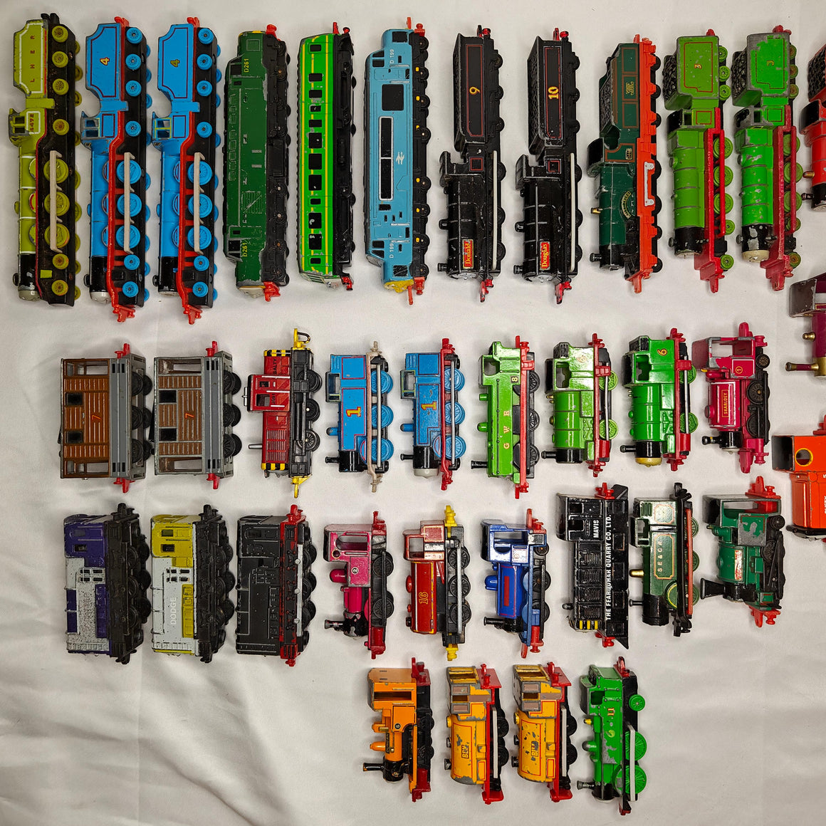 This listing is for the Thomas & Friends ERTL Diecast range. Released in the UK initially in 1985, this line featured 1/64 scale die-cast models and playsets based off of the characters from The Railway Series and its television counterpart. Many characters that were trains, cars, tenders, helicopters and even people were miniaturized and became collectible items as well as toys. Since being discontinued in 2004, the interest in these has only increased, with some characters becoming increasingly hard to find, albeit in good condition.