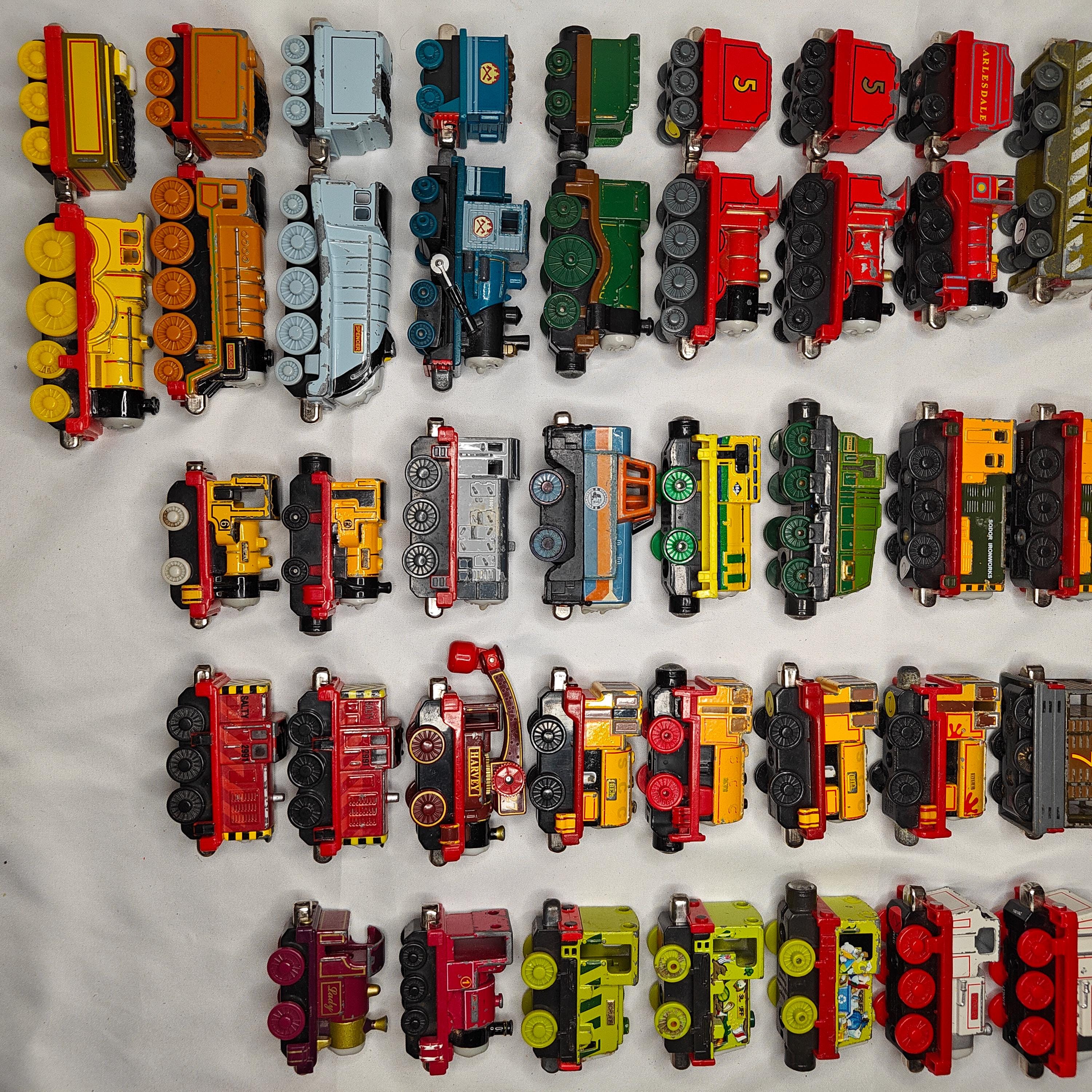 This listing is for the Thomas & Friends Take Along AND Take-n-Play Diecast range. Released in the US initially in 2002, this line featured pocket-sized die-cast models and playsets based off of the characters from Thomas & Friends television series. Many characters that were trains, cars, and tenders were miniaturized and became collectible items as well as toys. In 2009, The original Take Along range was discontinued after Fisher-Price acquired the rights, and rebranded the range to the Thomas Take-n-Play. That line would also then be discontinued in 2016 for another range to take its place. The characters are getting harder to find and increasingly come in worse and worse condition. The goal of this listing is to make the different years, models, versions and even quality more accessible.